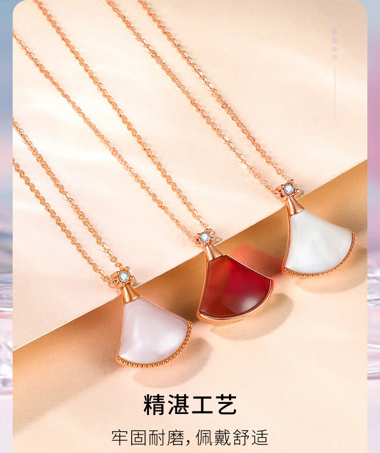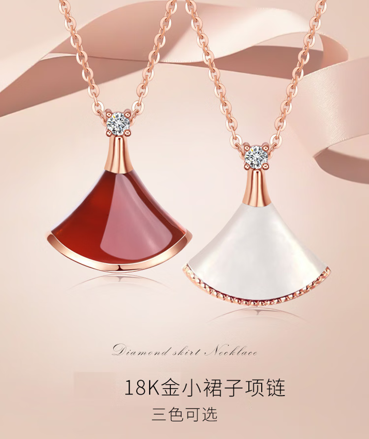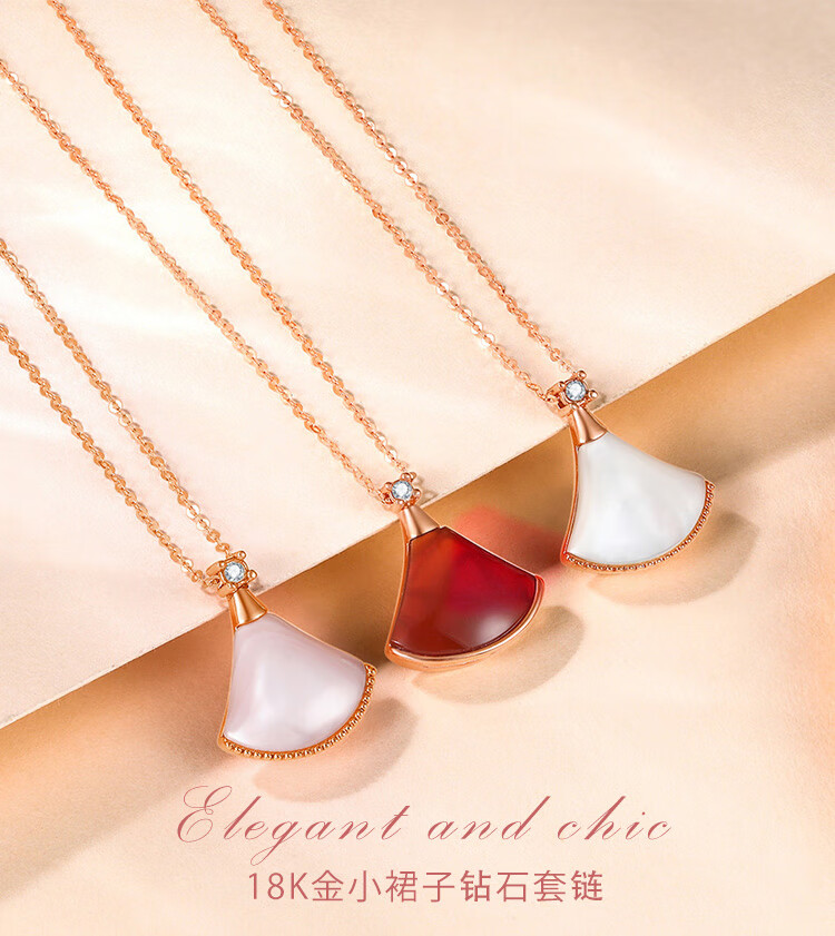 Tiansi 18K gold mini skirt necklace color gold rose gold au750K gold pendant clavicle chain Chinese Valentine's Day gift 18K white mother-of-pearl