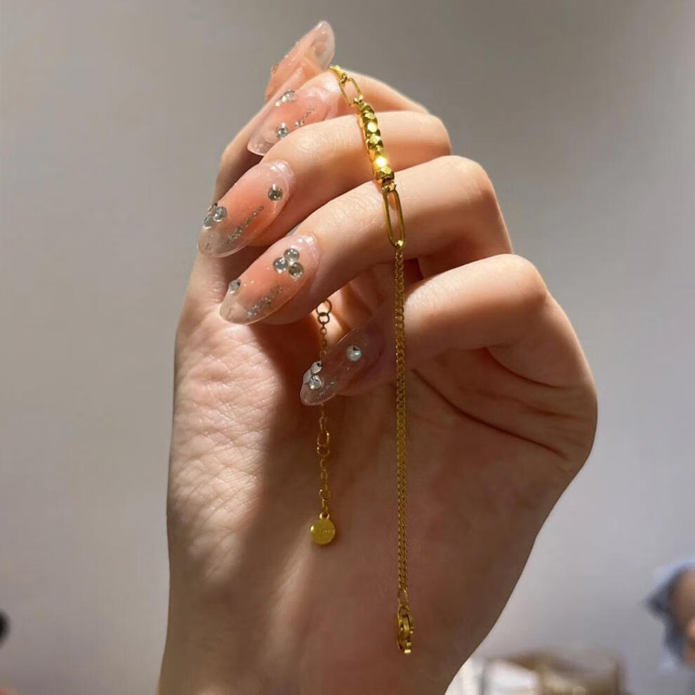 Wenying ING polyhedral small square gold bracelet women's bungee broken gold 18k gold light luxury niche sense ins bungee