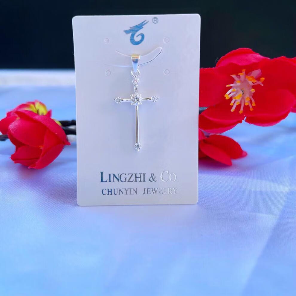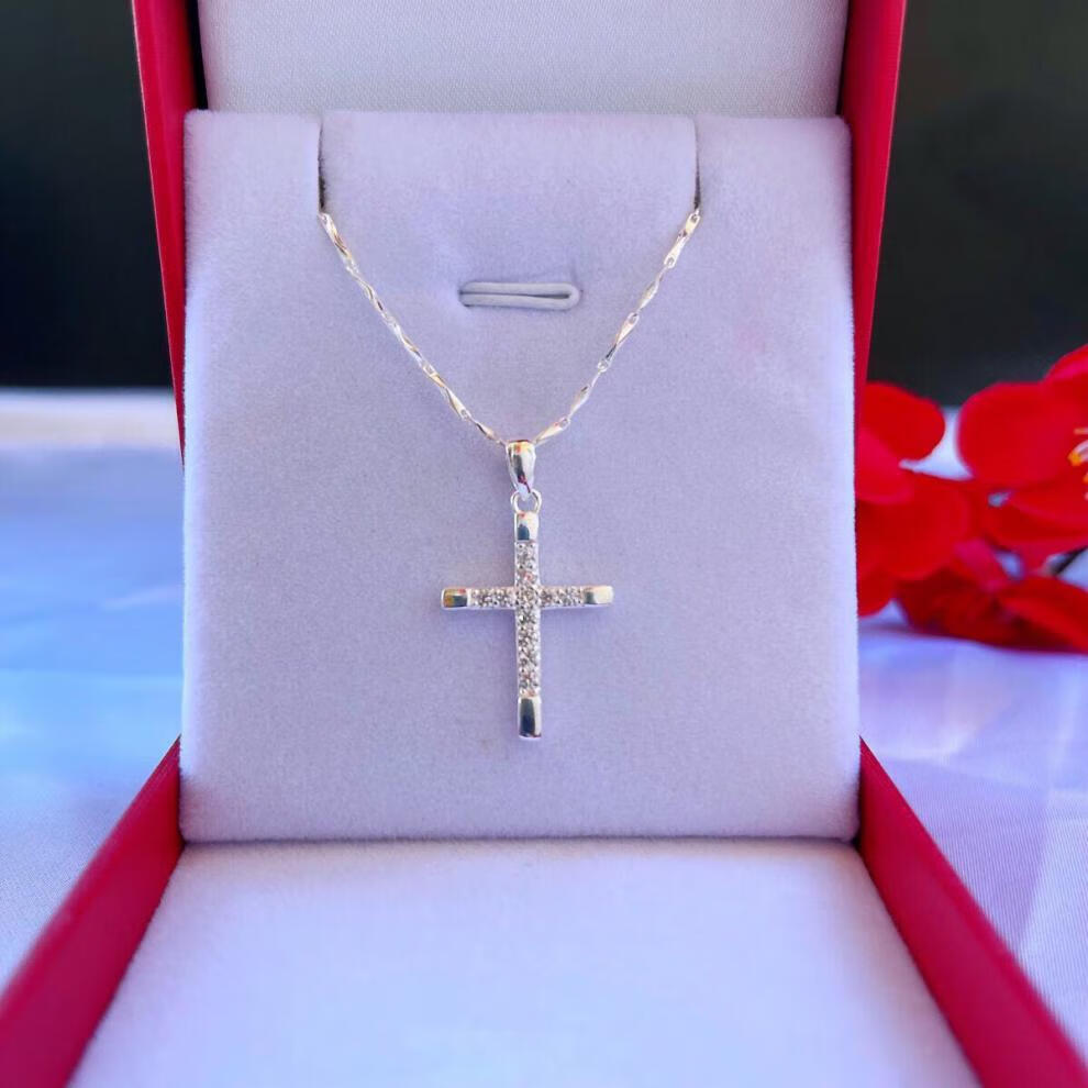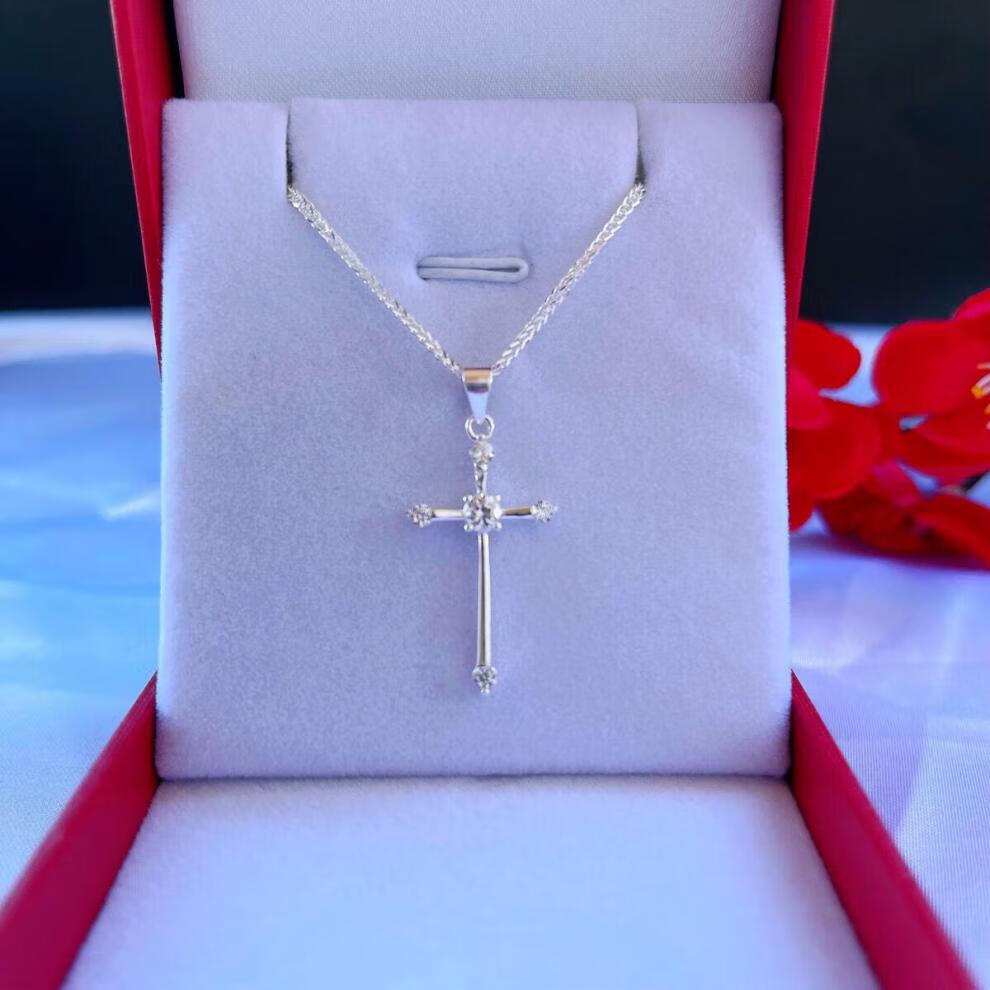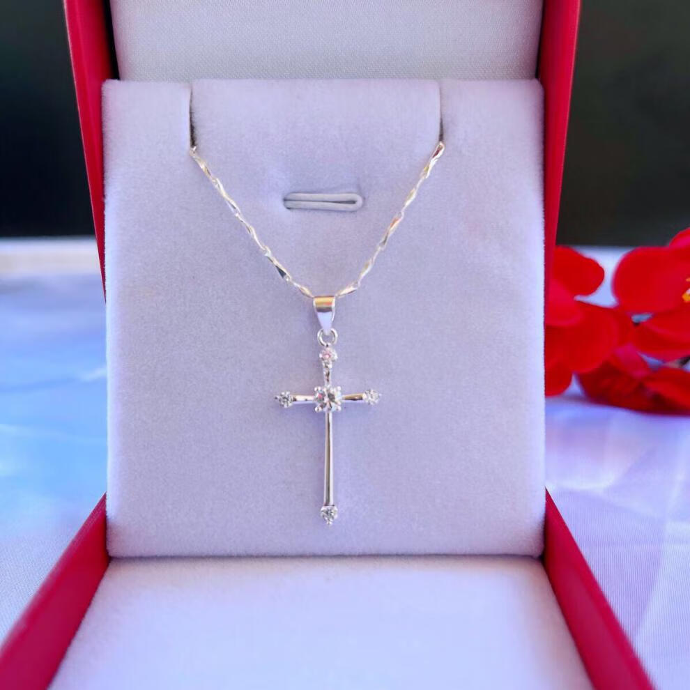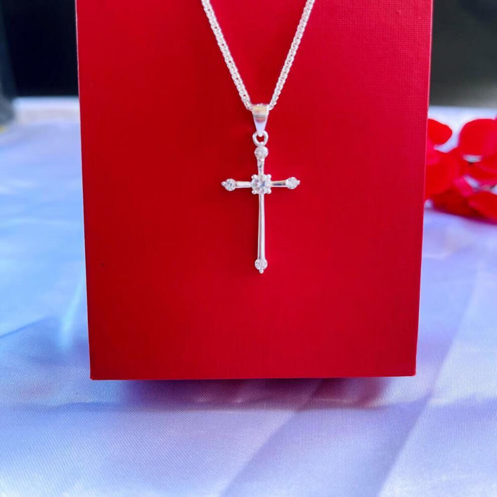 Wenying 999 sterling silver necklace women's clavicle chain new cross pure silver jewelry pendant Valentine's Day gift for girlfriend Cross pendant + new chain 999 pure silver (1)