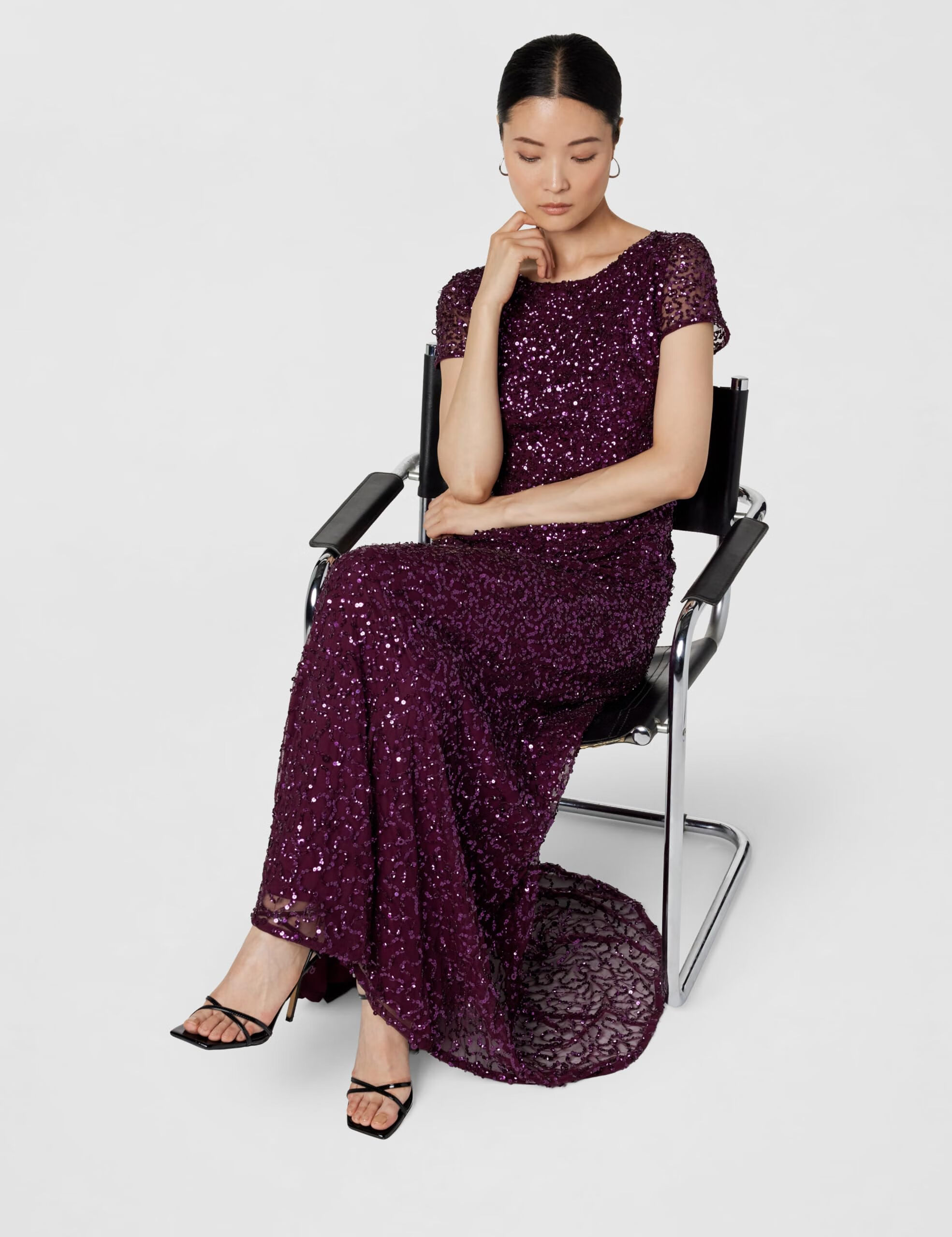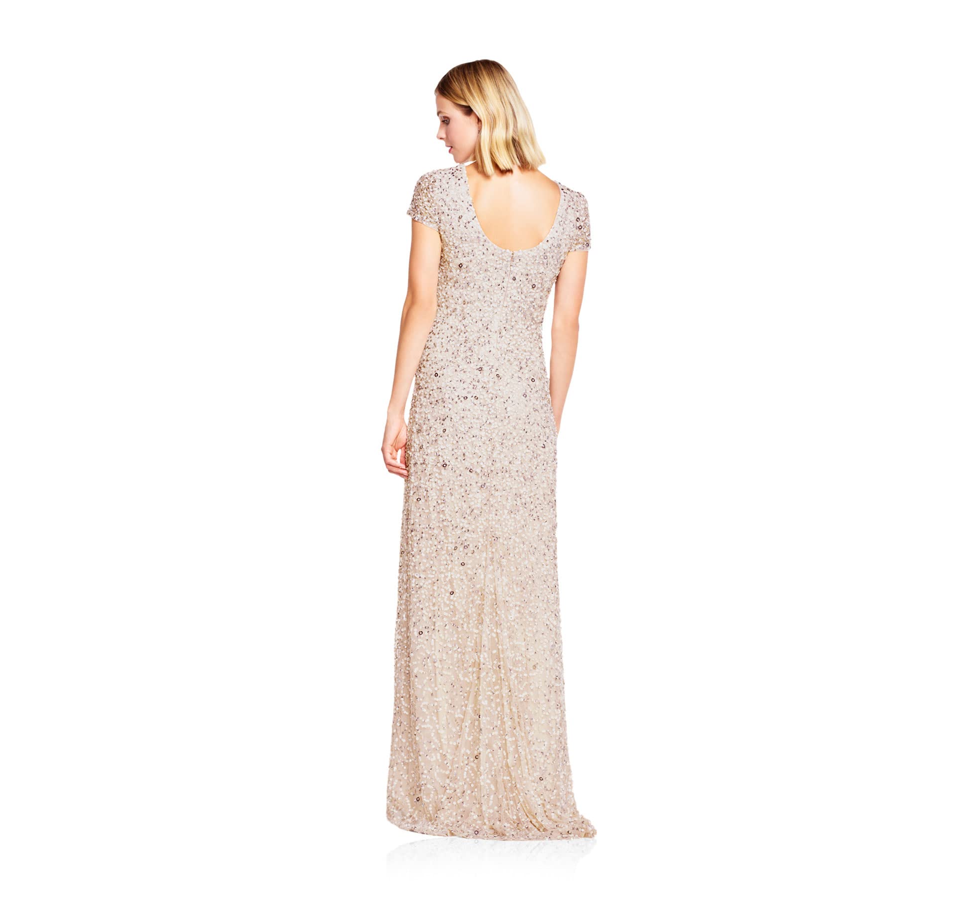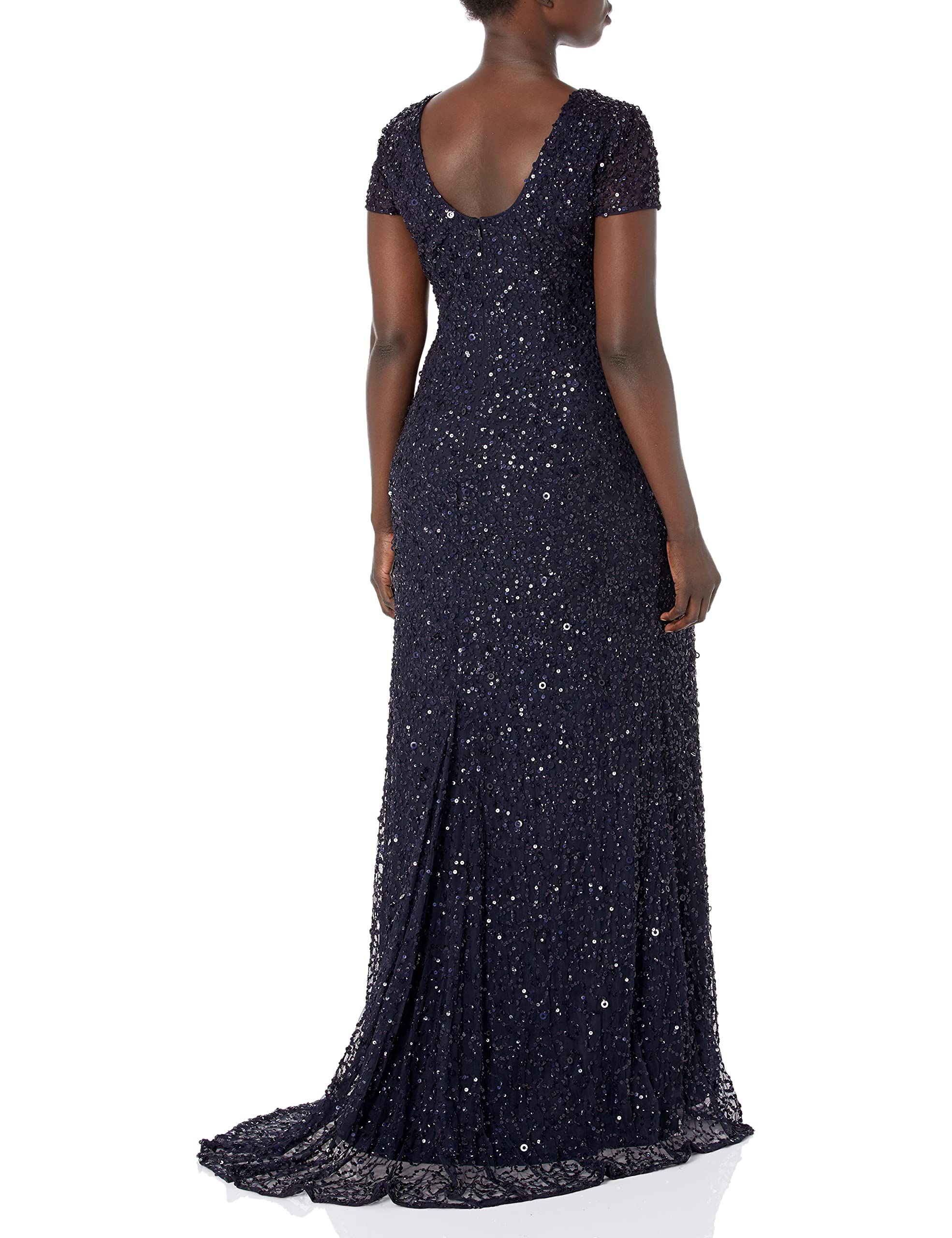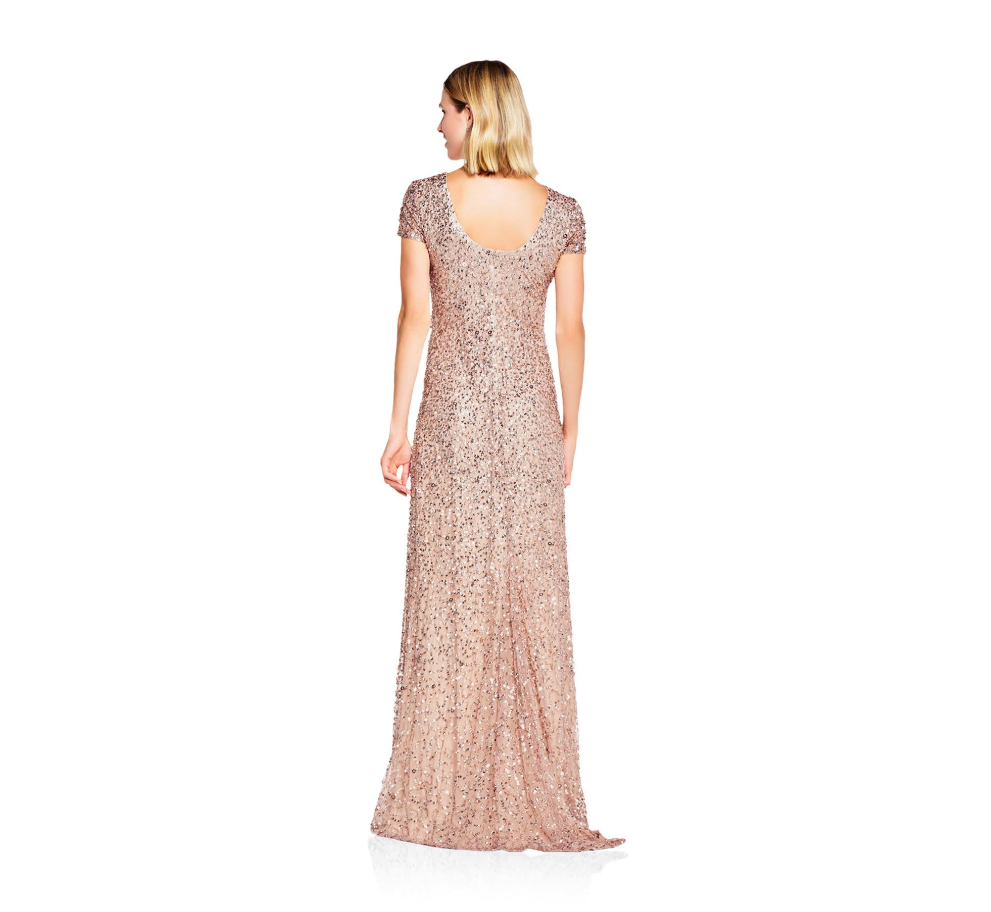 Adrianna Papell Women's Short Sleeve Full Body Sequin Gown Nile 12
