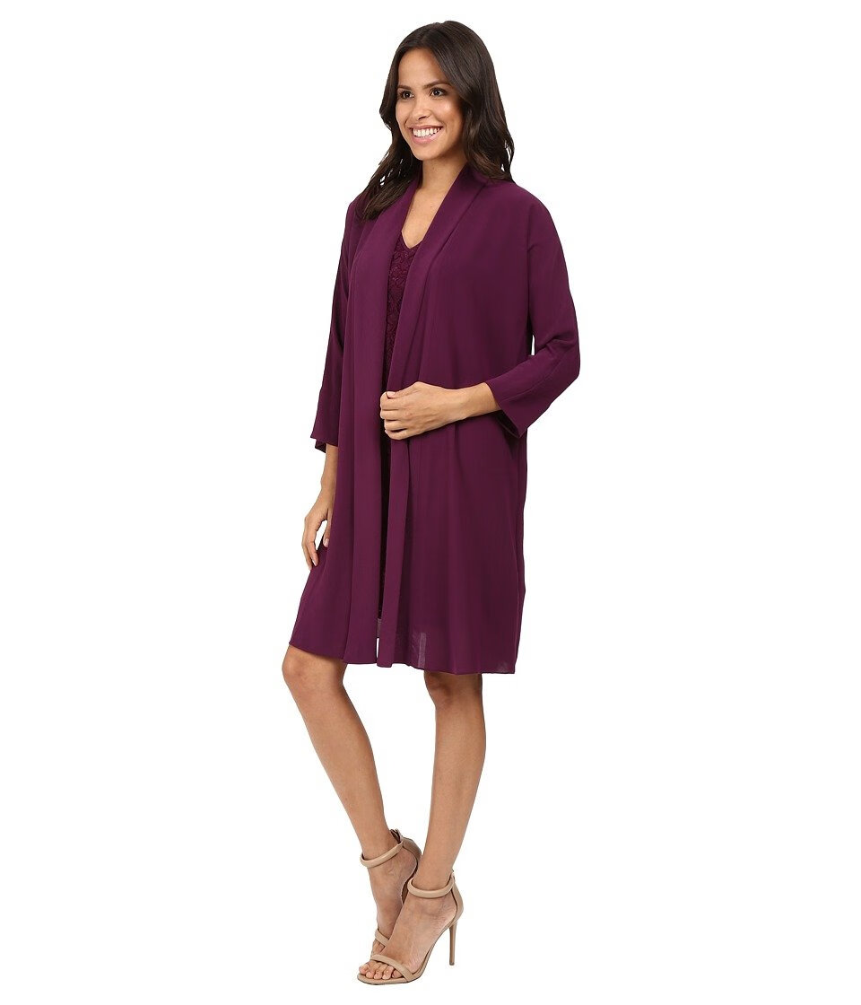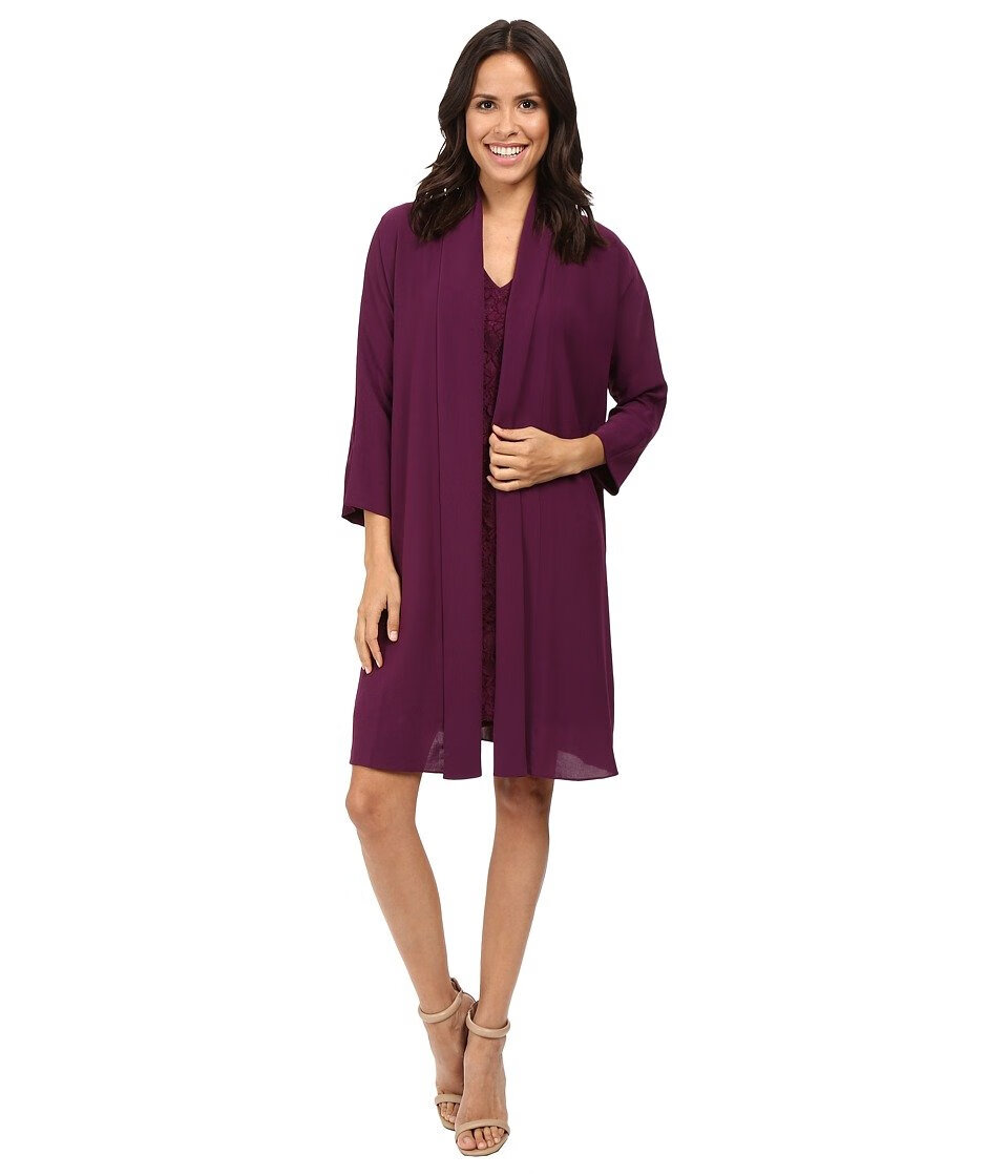 Adrianna Papell Women's Draped Jacket Lace Dress Winter Blackberry 10