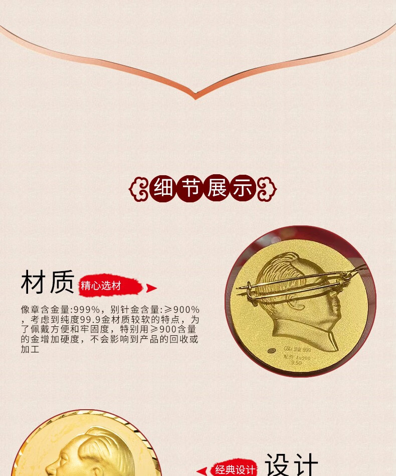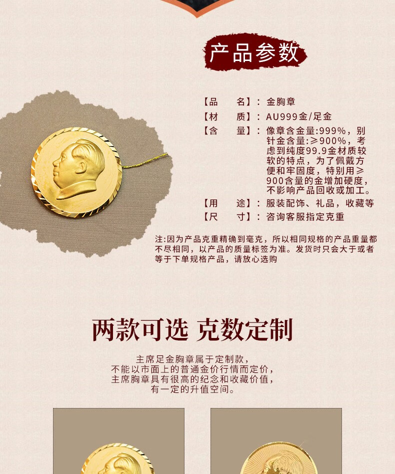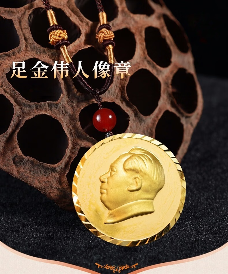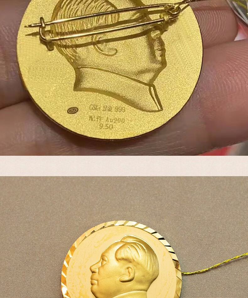 Yuan nationality Mao Zedong gold medal badge for men and women wearing badges pure gold accessories as gifts for customers, friends and elders, about 2.5 grams, diameter about 1.7CM