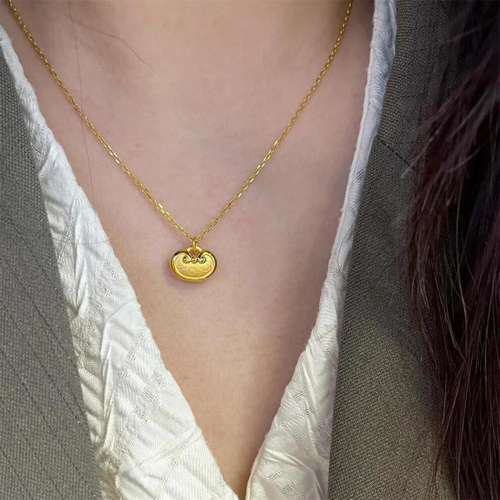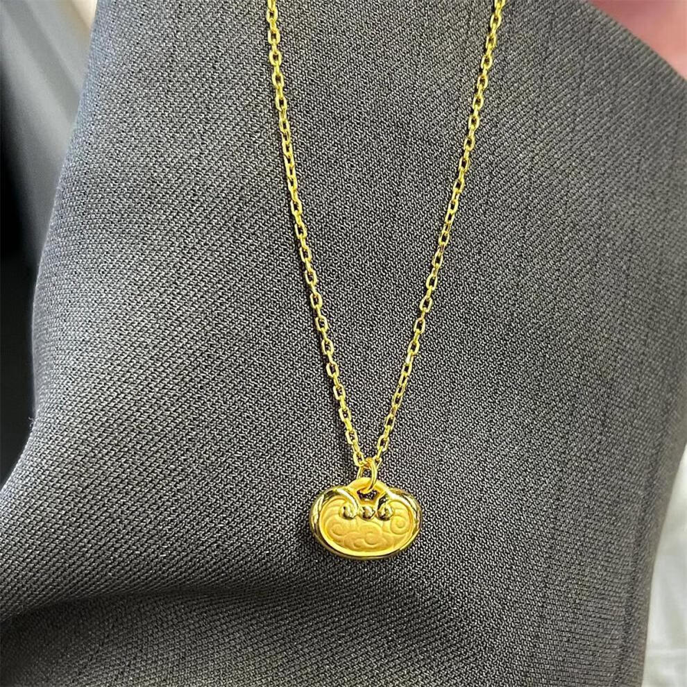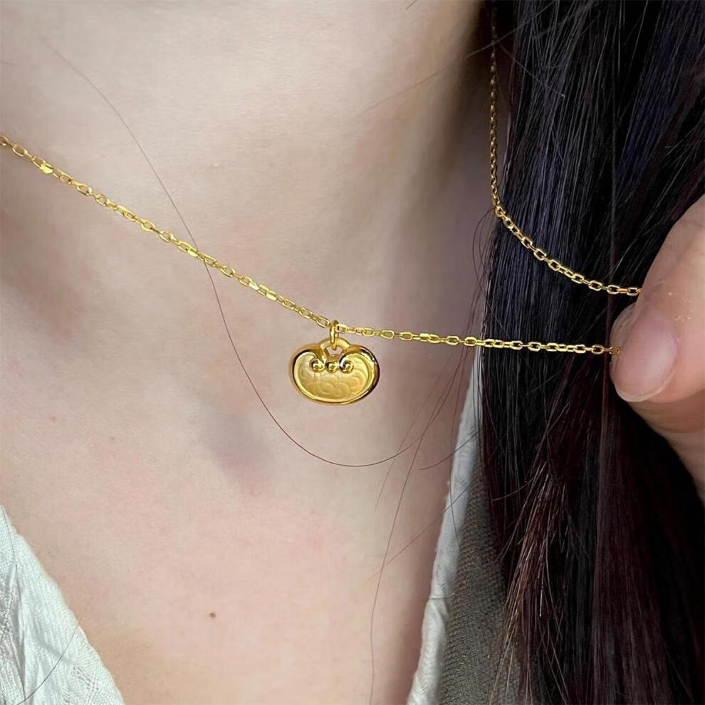 Yuan ethnic classical style 18k gold small Yuanbao Xiangyun necklace for women, small, cute and exquisite new style simple gold clavicle chain
