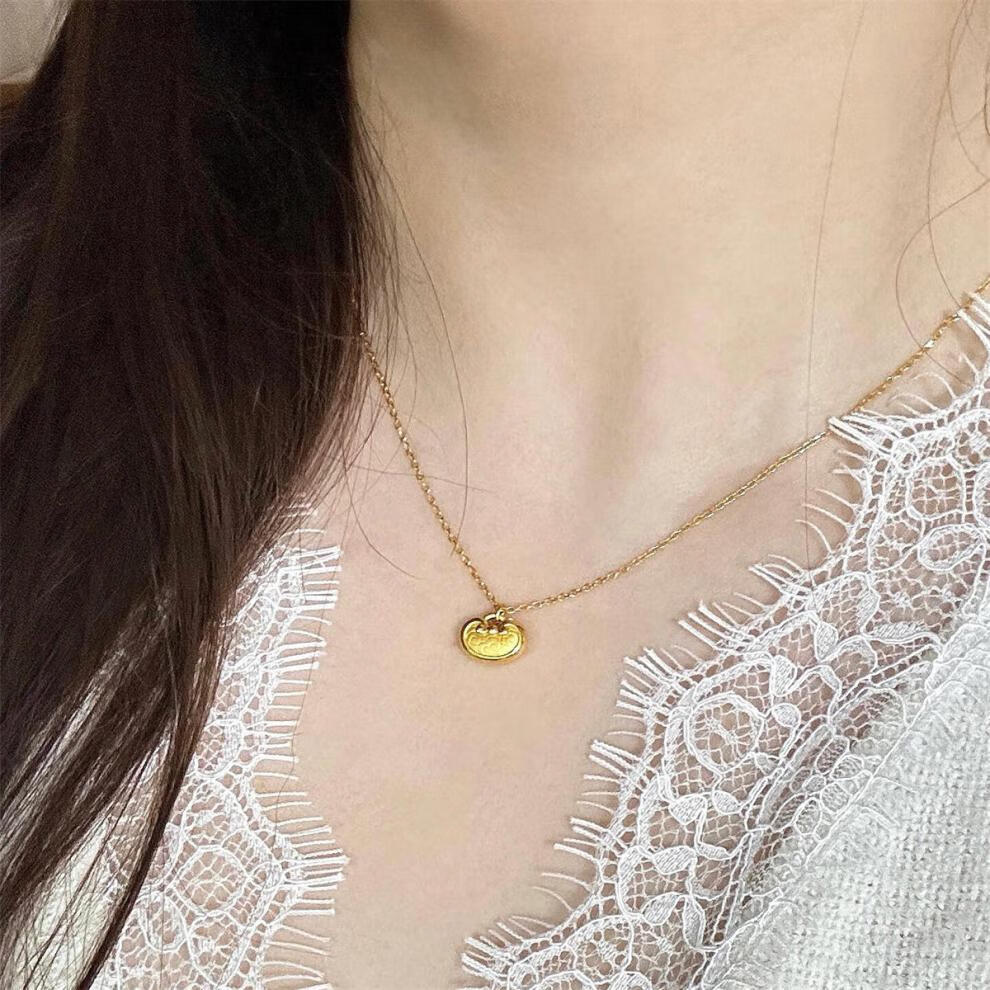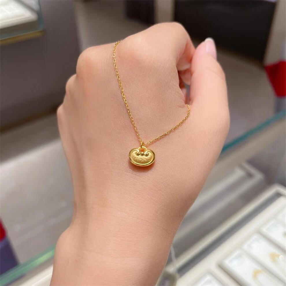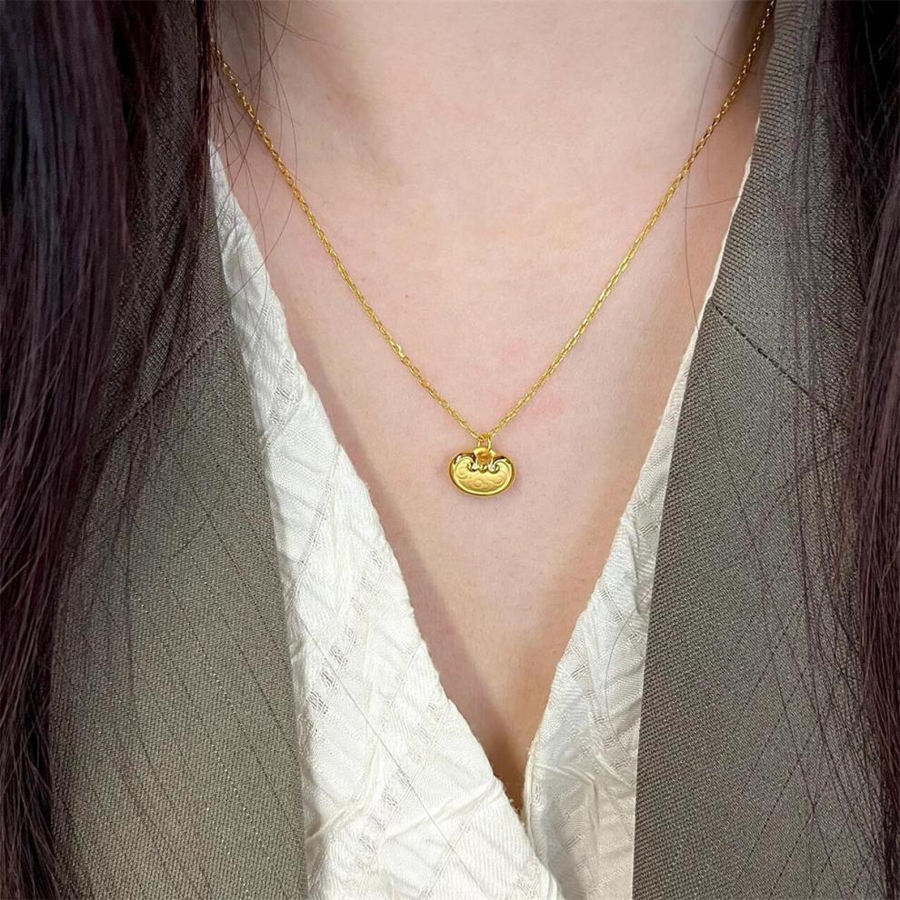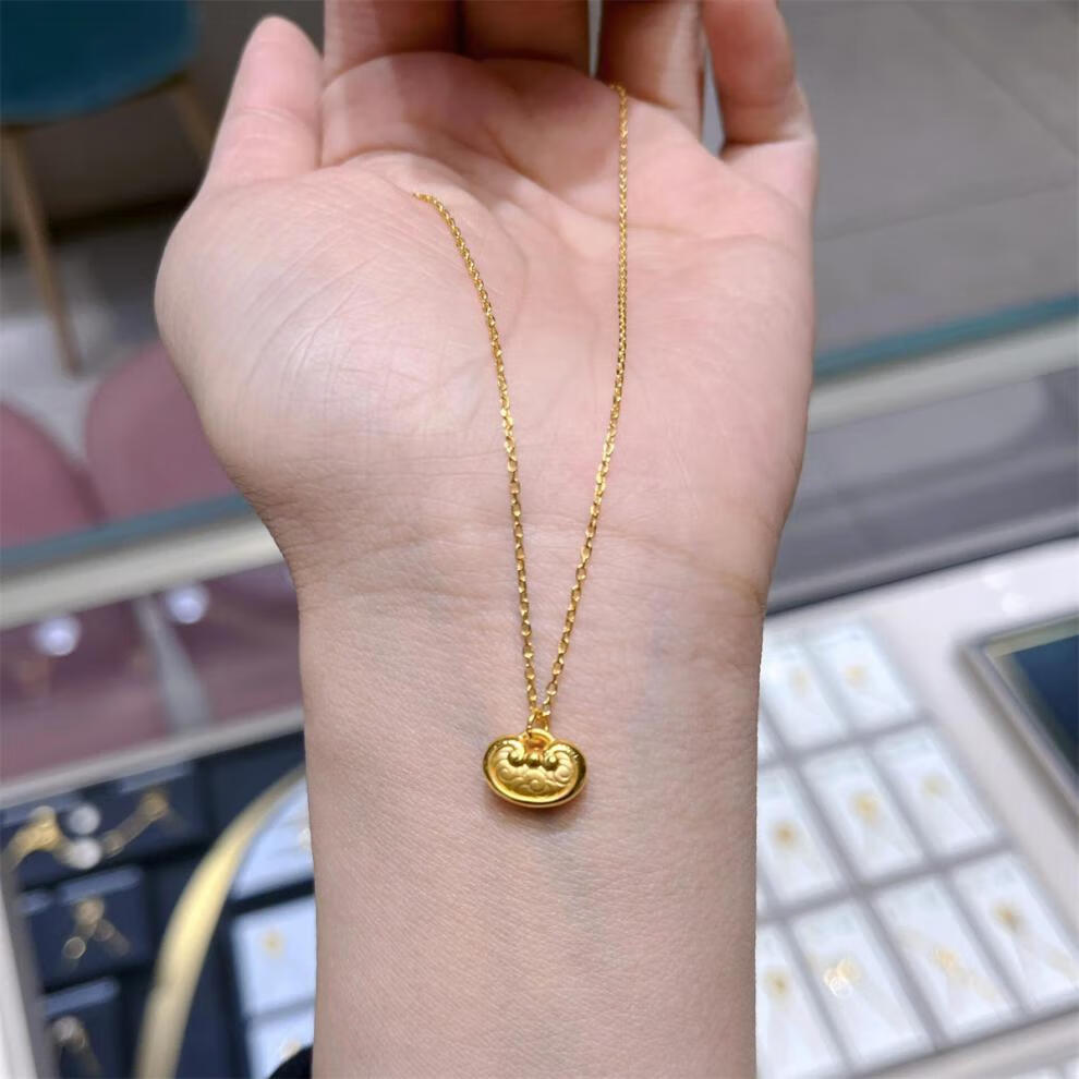 Yuan ethnic classical style 18k gold small Yuanbao Xiangyun necklace for women, small, cute and exquisite new style simple gold clavicle chain