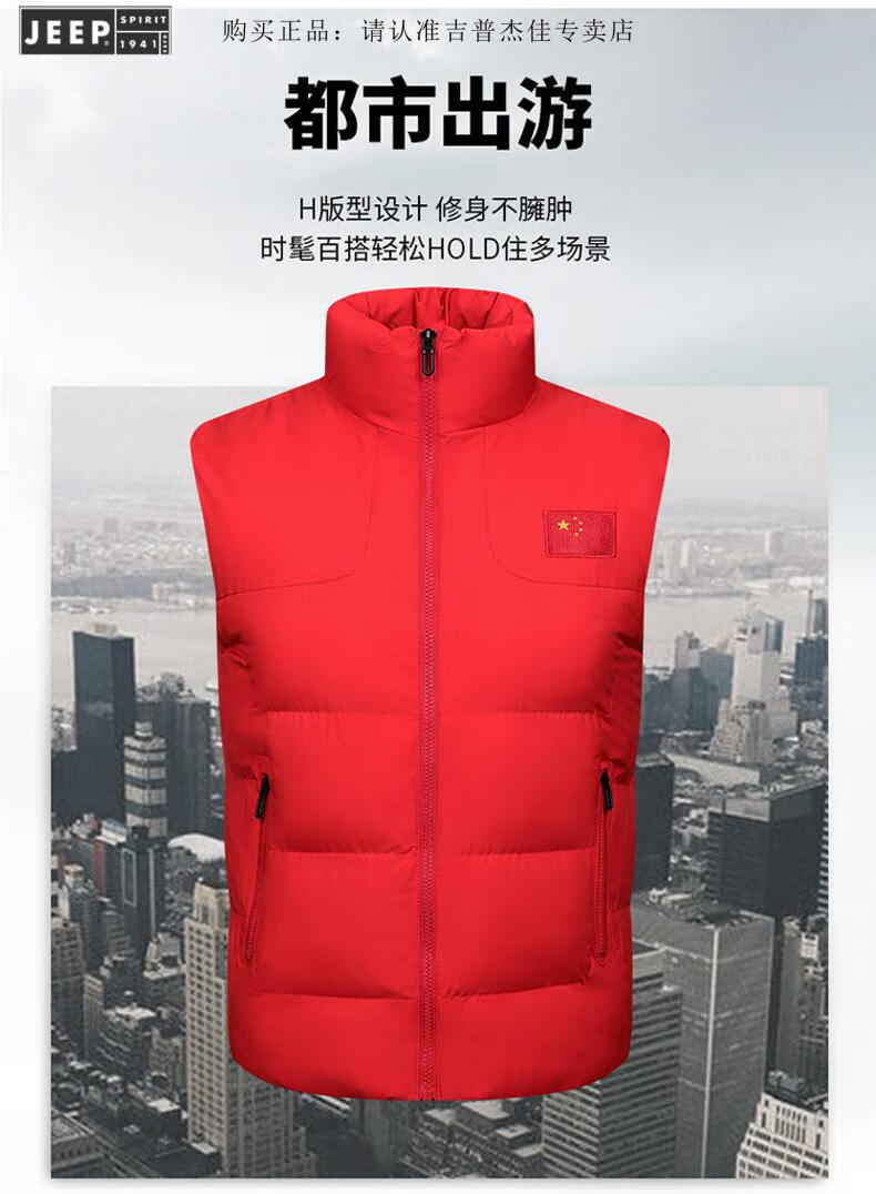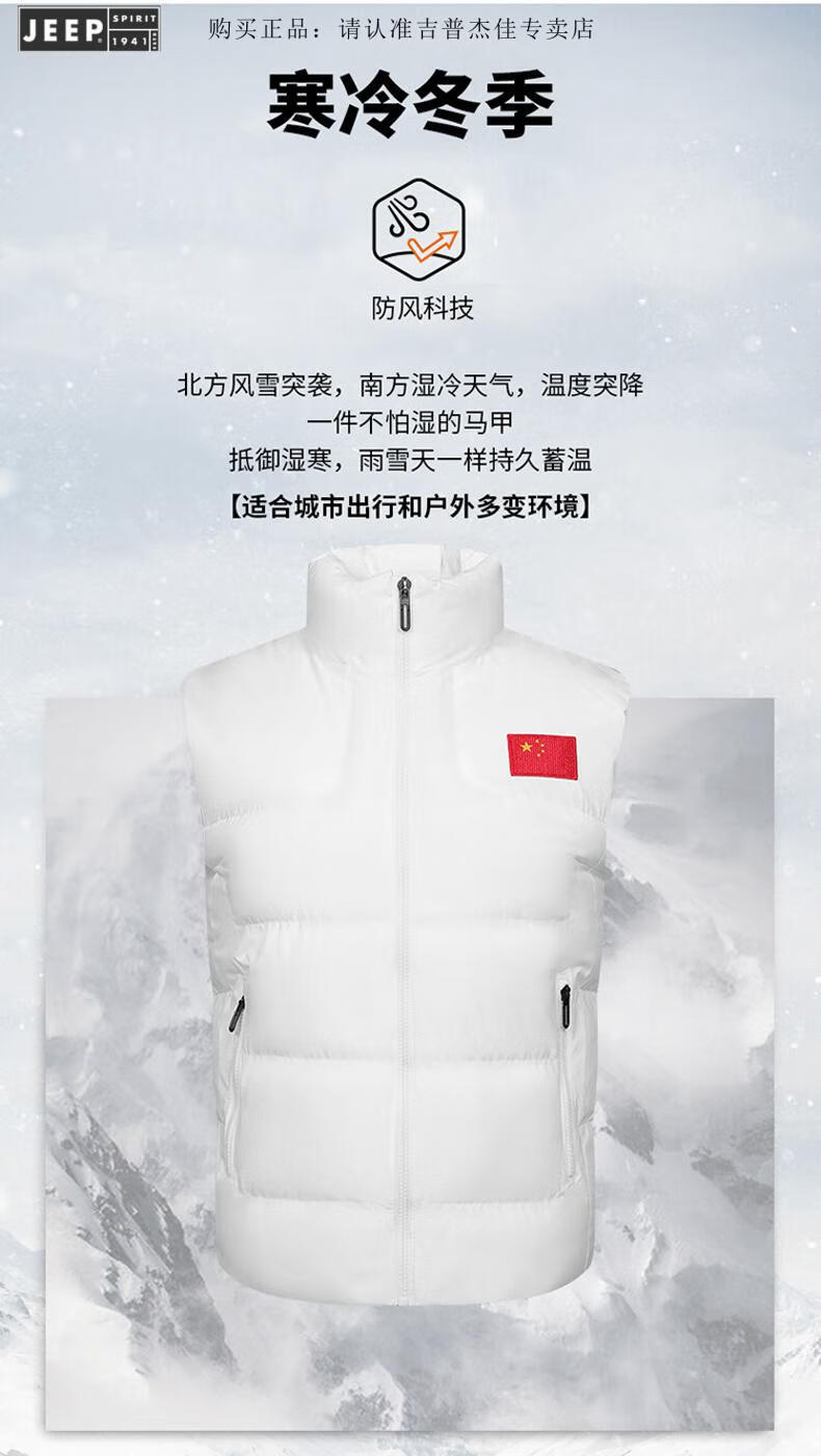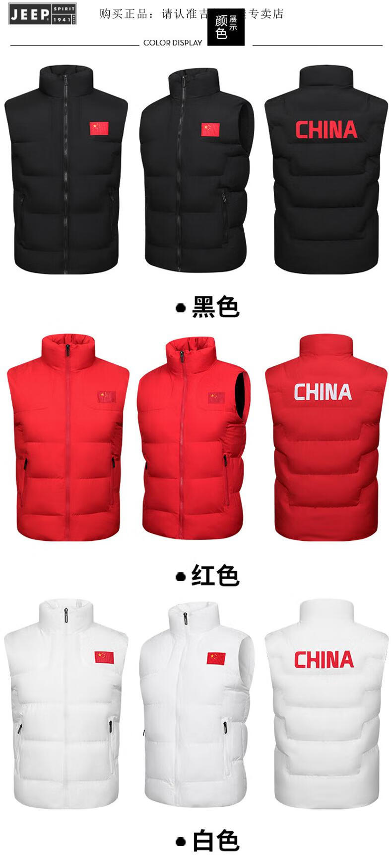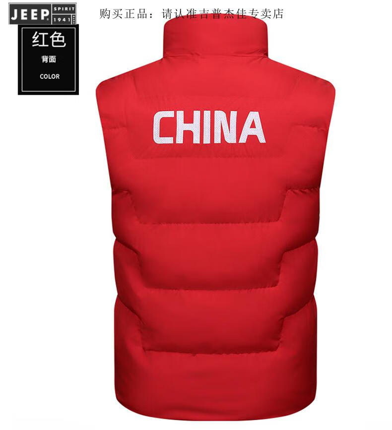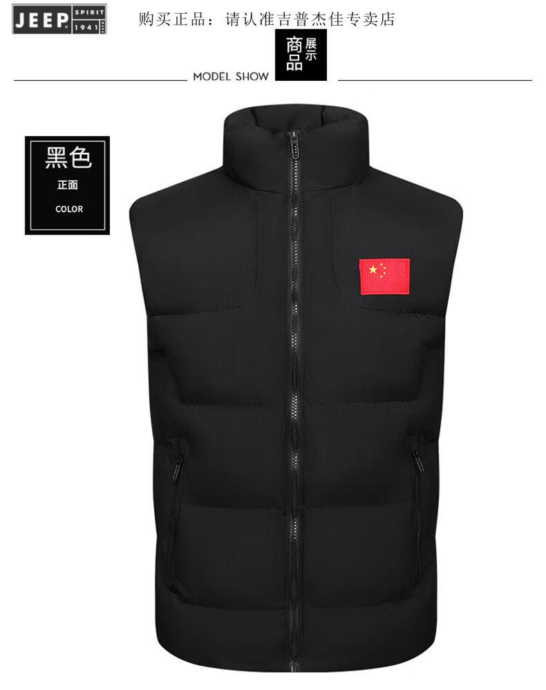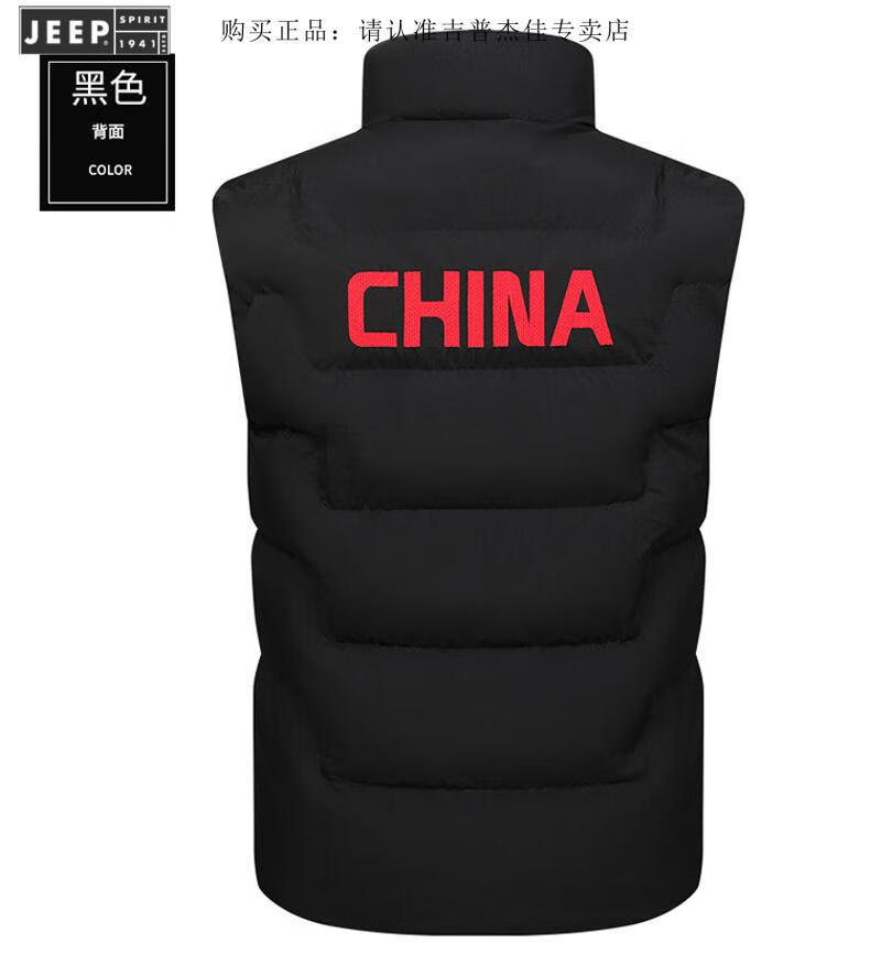 JEEP SPIRIT Flag Vest Men's Autumn and Winter China National Team Down Cotton Warm Vest School Sports Games Vest Sportswear Vest E302-8055 Black XL