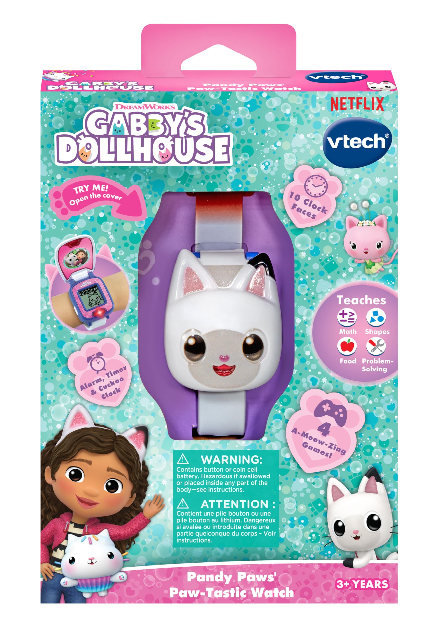 Vtech children's smart watch Gabby's Dollhouse Panda Claw theme 10 types of digital dial stopwatch alarm clock 4 educational games Mathematical shape recognition 3 years old +