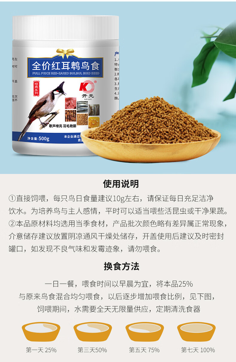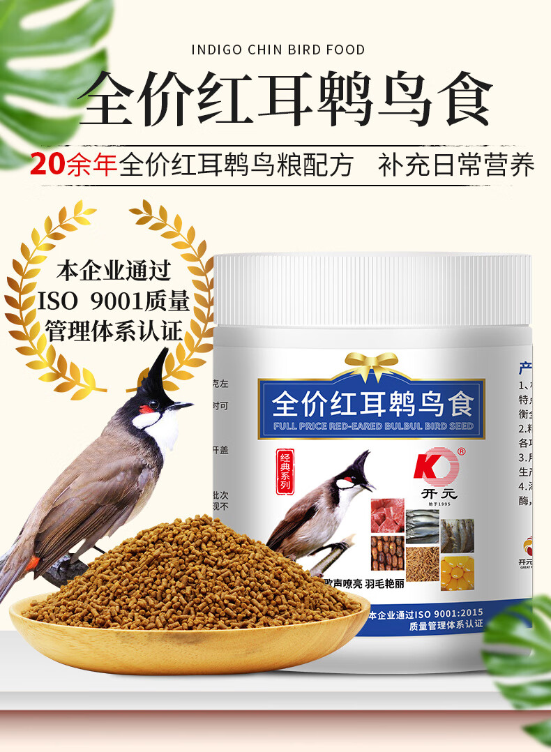 Kaiyuan (KO) full price red-eared bulbul bird food bulbul bird food red-butt white-headed bird feed probiotic nutrition barrel 500g full price red-eared bulbul bird food 500g