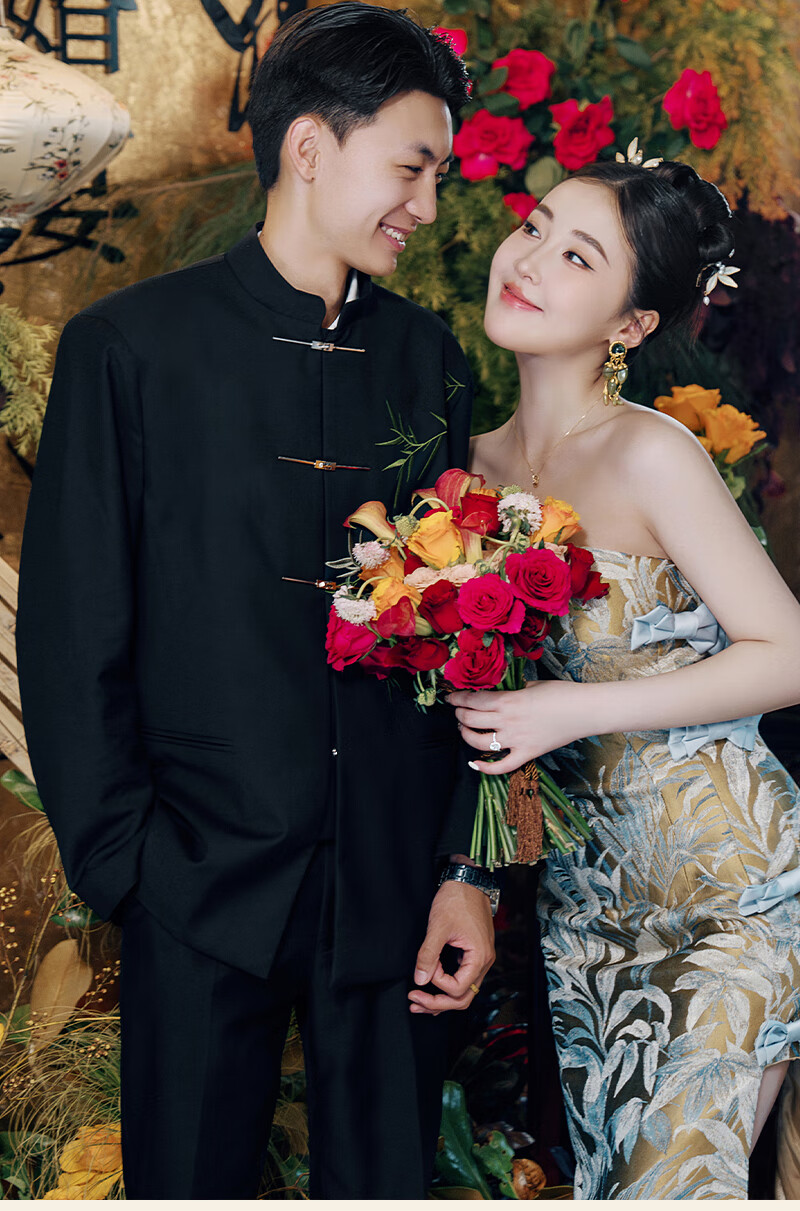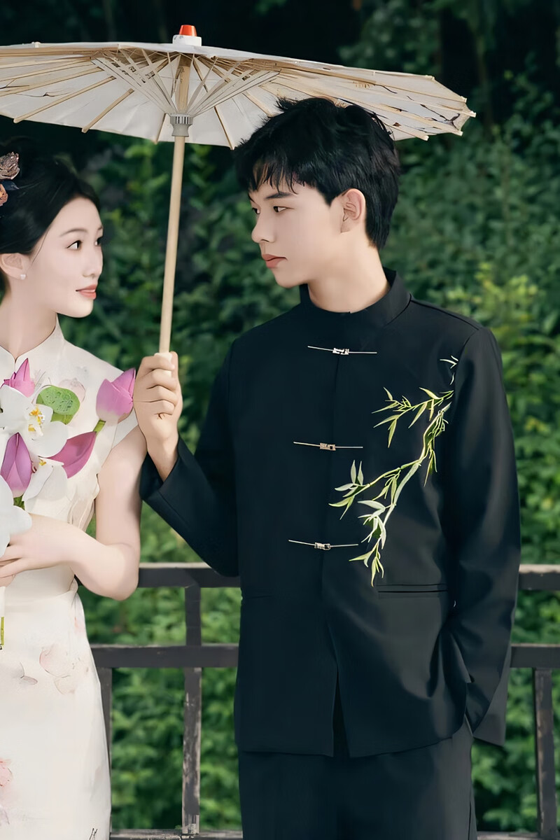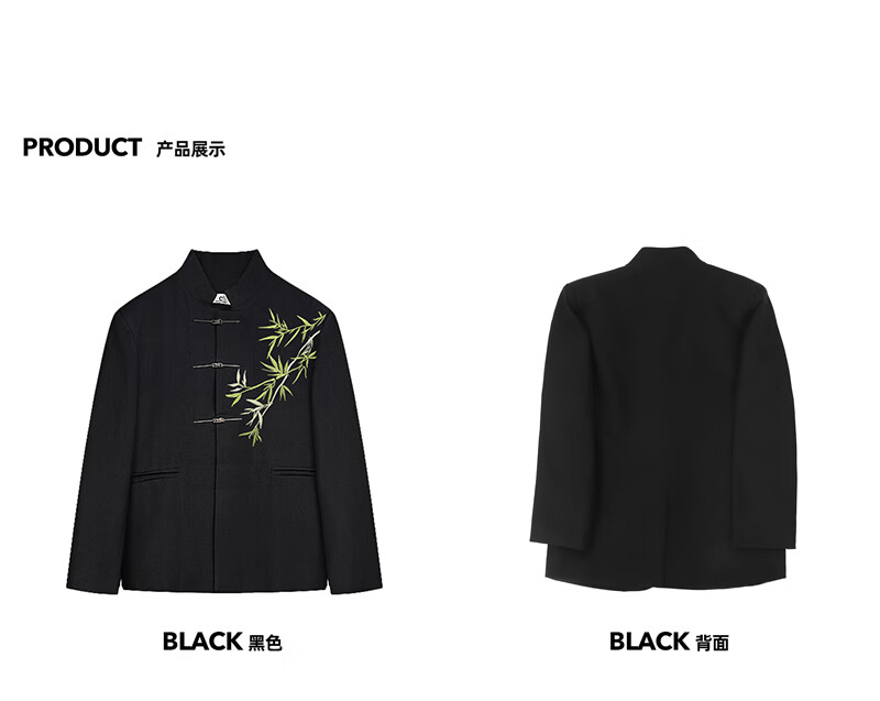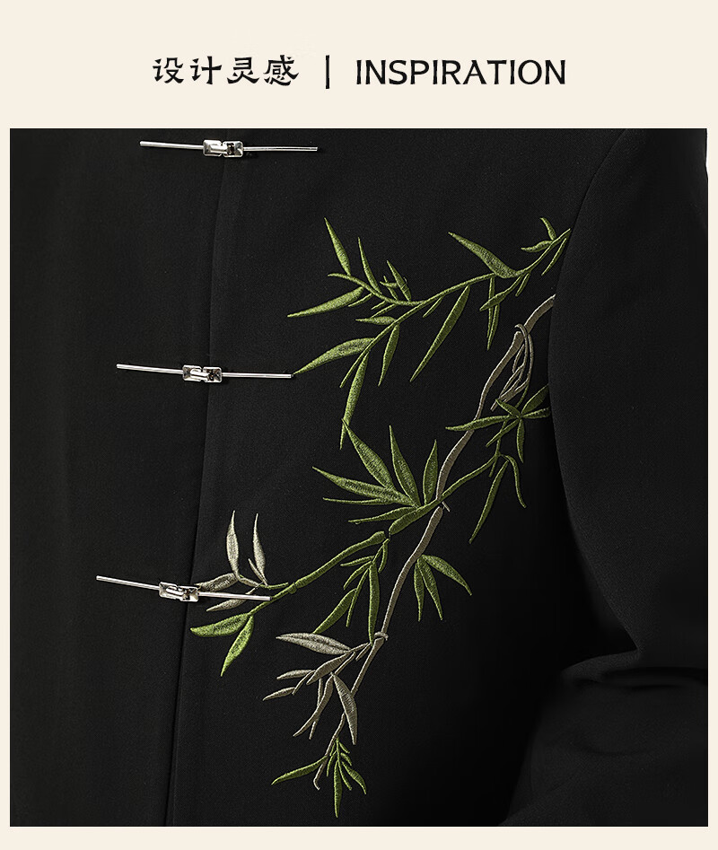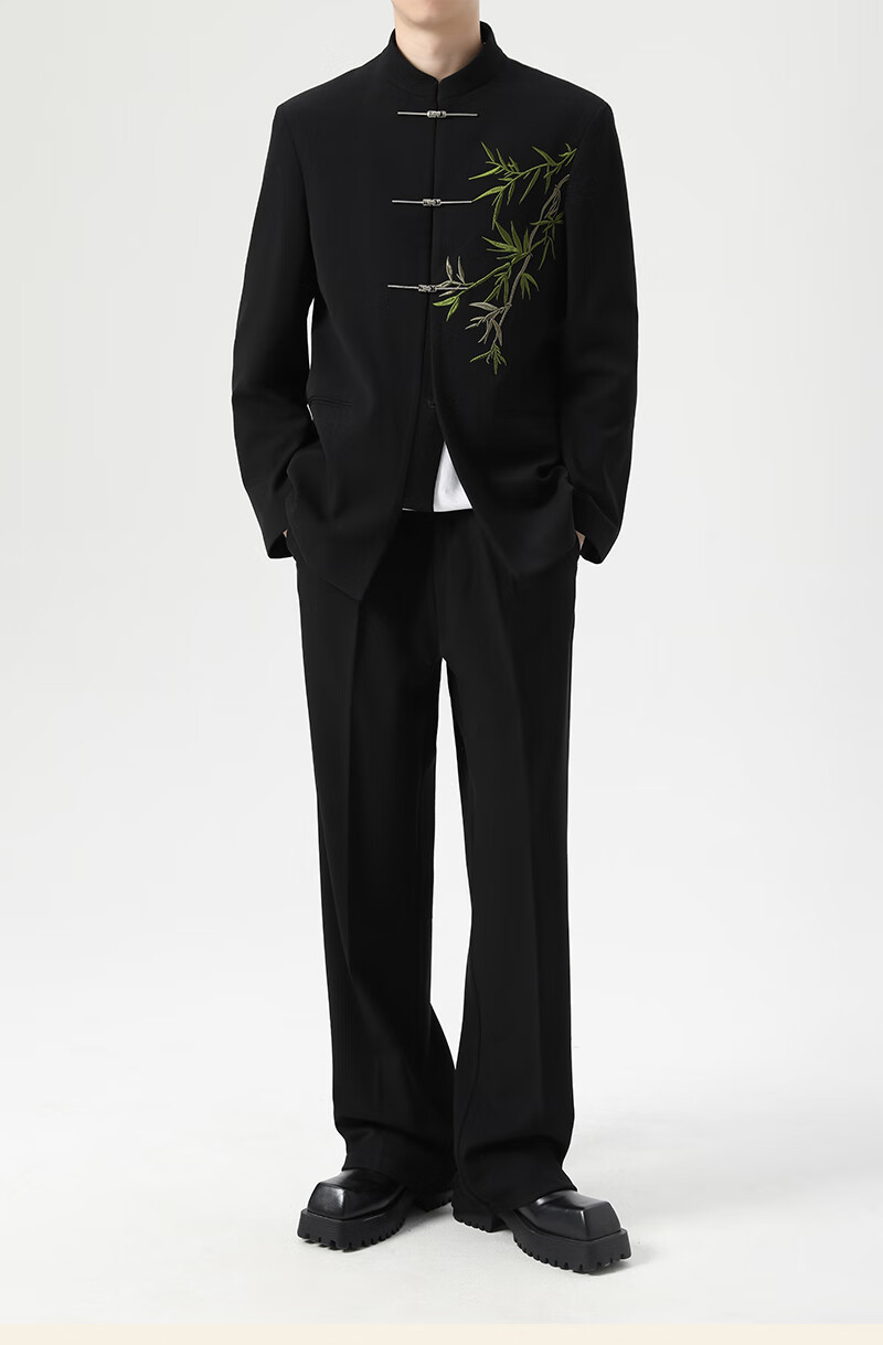ROMON New Chinese tunic suit, engagement groom suit, men's wedding wedding high-end coat, national style embroidered suit suit, black jacket + pants XL