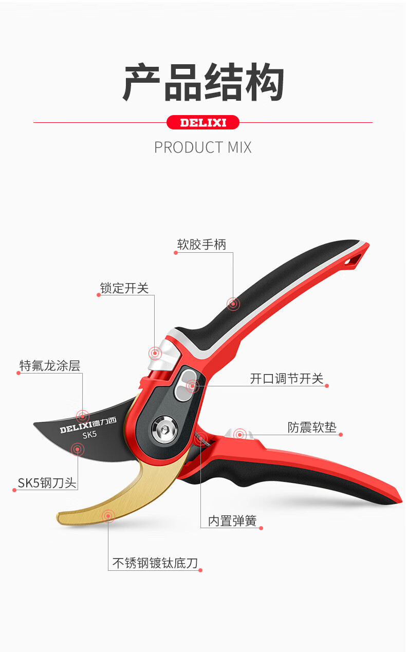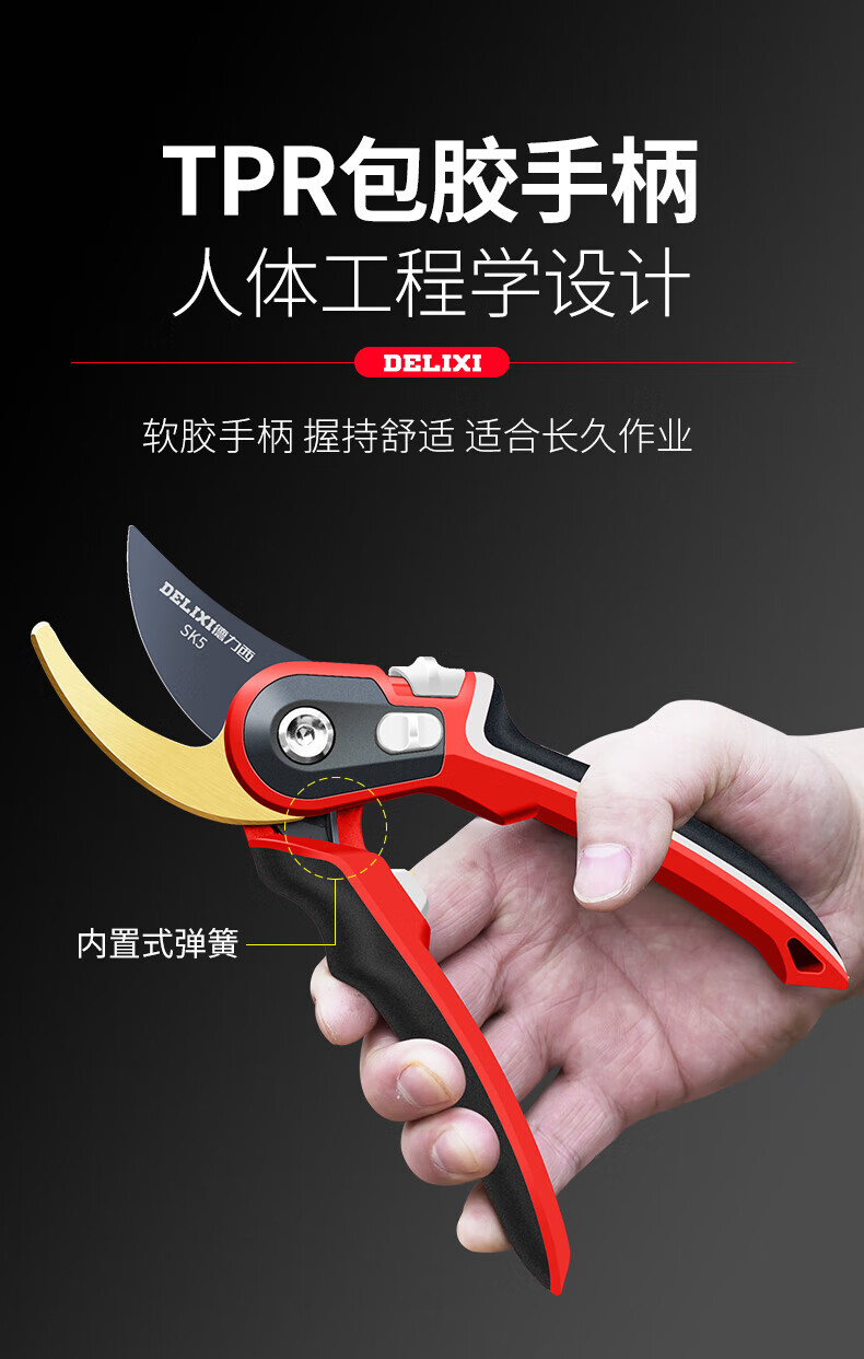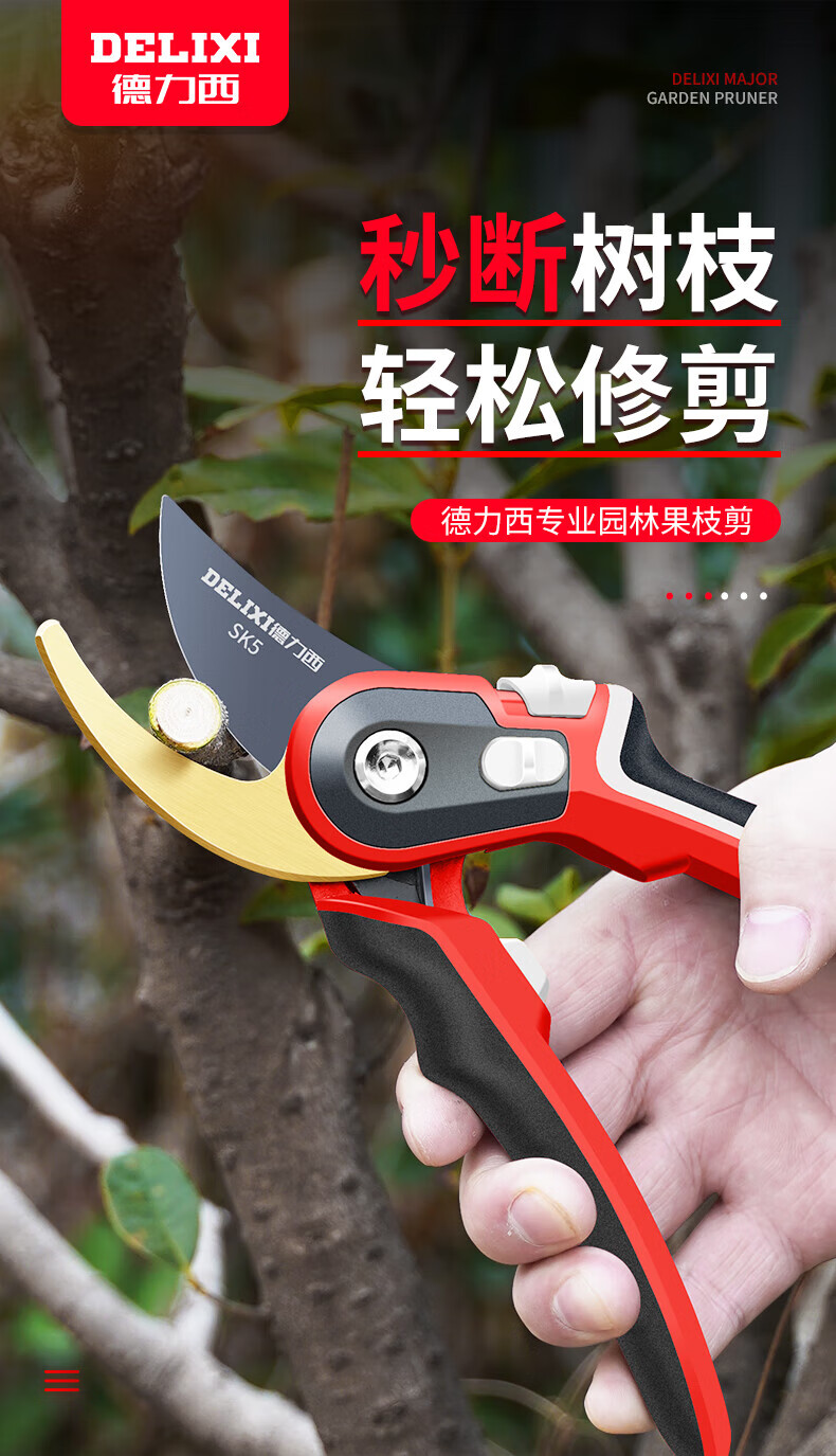 Delixi gardening scissors, labor-saving pruning shears, fruit tree pruning, garden branch pruning, flower shears, special scissors for branch cutting, Golden God of War, imported SK5 steel + free lanyard