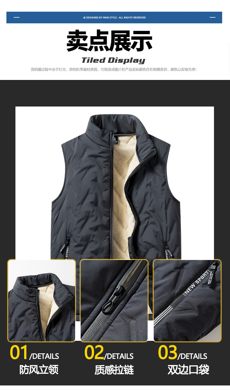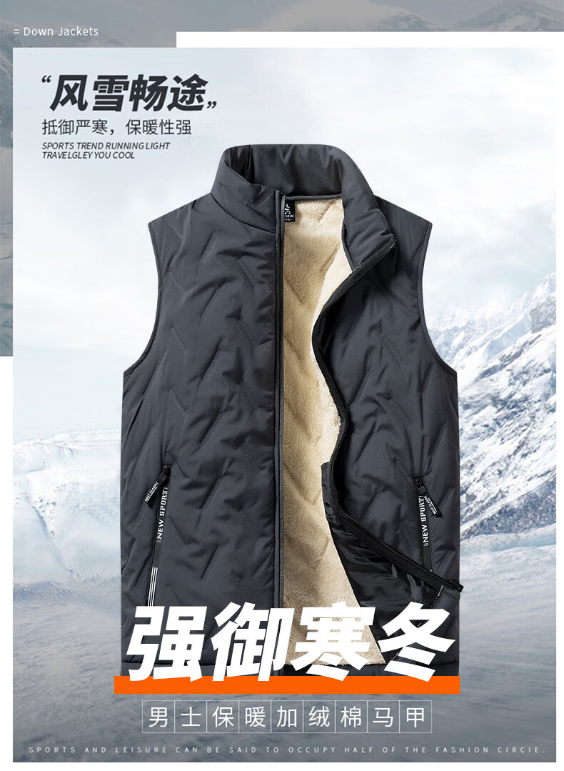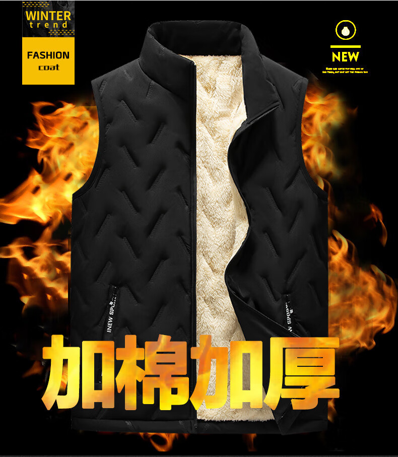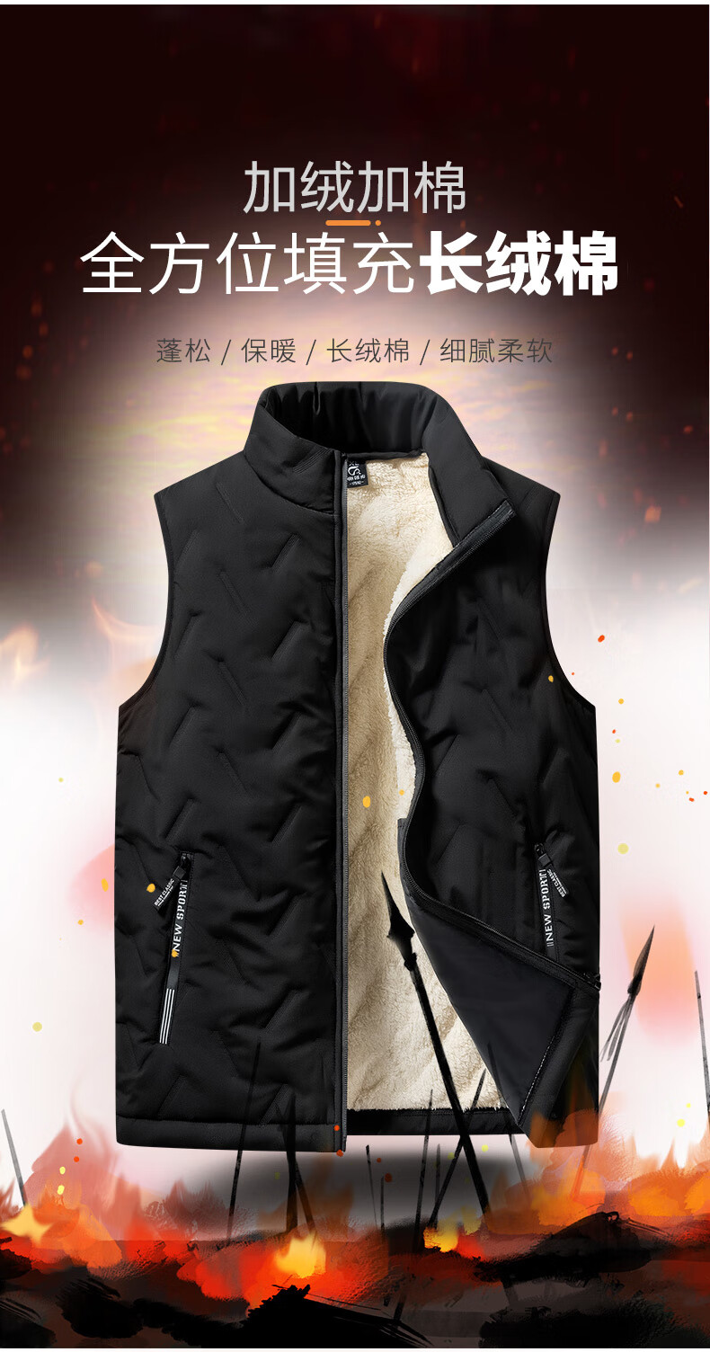 Lomon cotton vest men's autumn and winter new style plus velvet thickened dad winter clothing men's loose vest feather warm fleece jacket men's MJ696 black 2XL about 125-140Jin Jin equals 0.5 kg