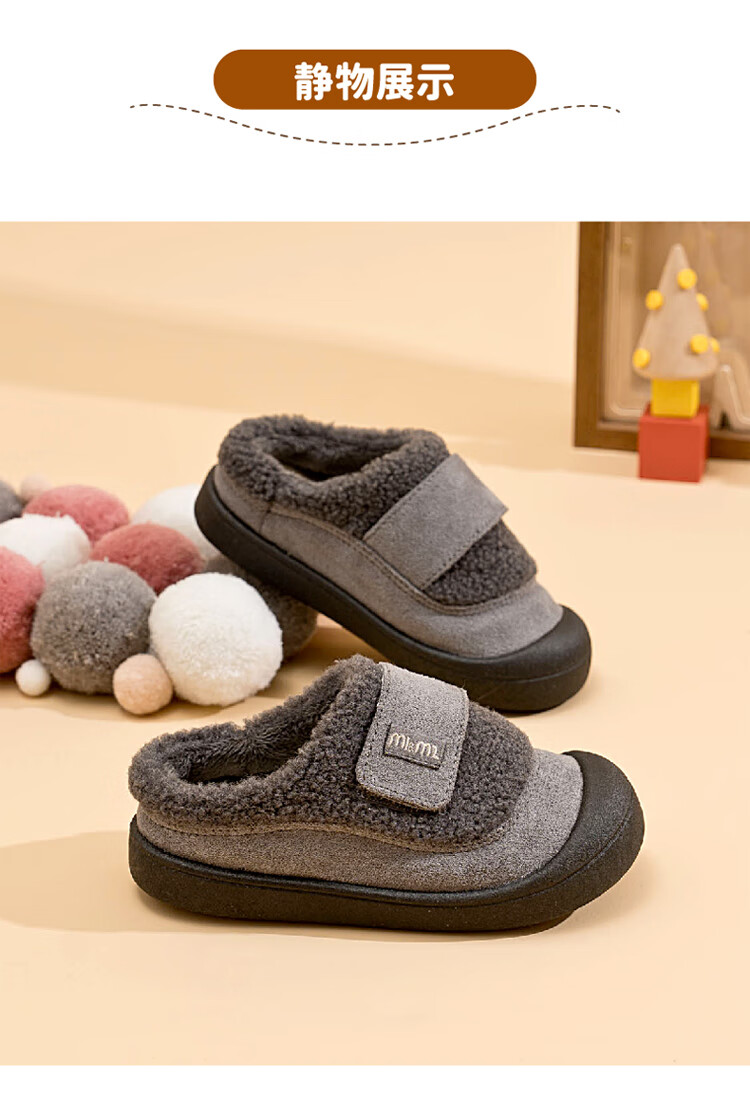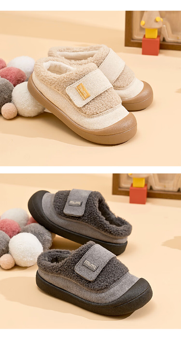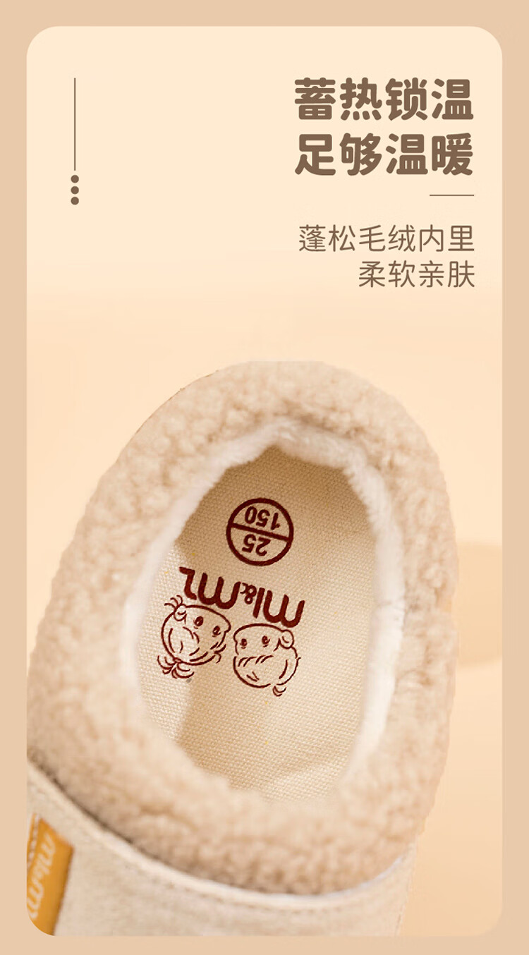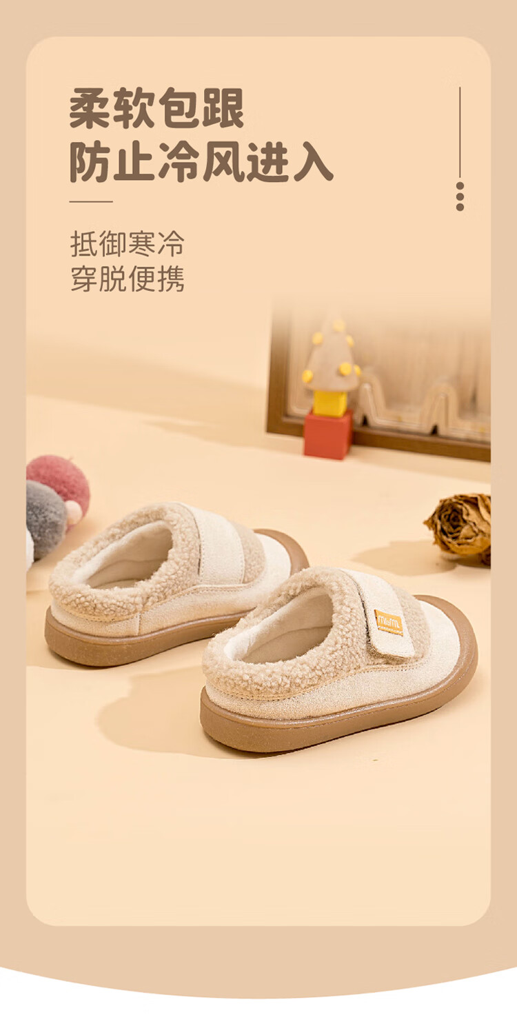 M1&M2 Spanish children's shoes, children's velvet slippers, new winter style, cute imitation wool velvet lining, half pack warm and comfortable cotton shoes, Khaki 27, suitable for feet 16~16.5cm long