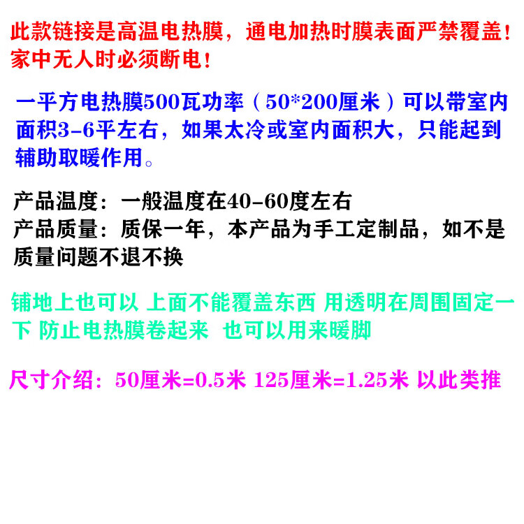 FHJQB customized home graphene high temperature electric heating film wall heating graphene heating sheet white floor heating electric heating plate black and white 50*200 cm 500 watts