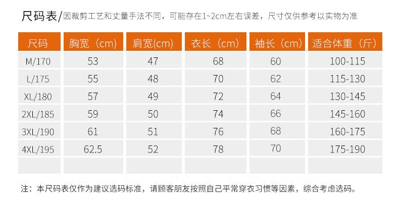 China (cm) 165 / 88-90 170 / 96-98 175 / 108-110 180 / 118-122 185 / 126-130