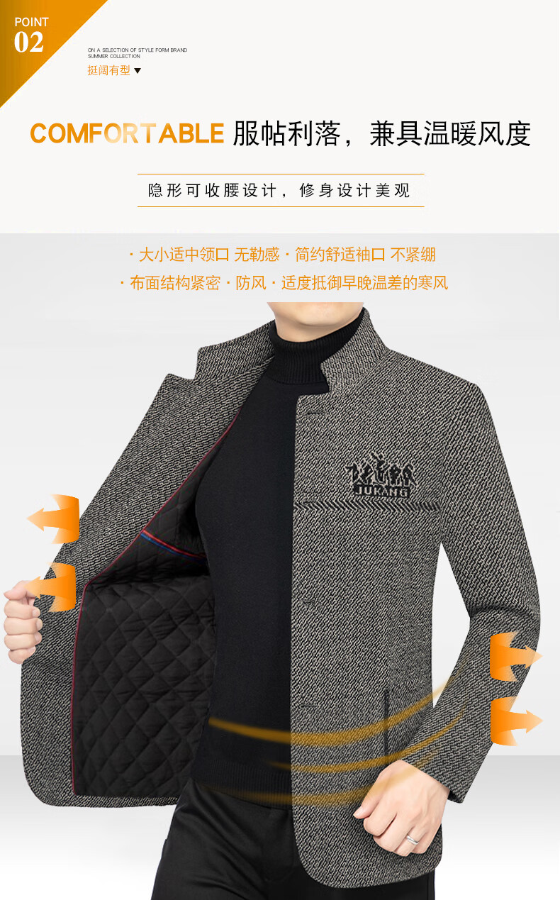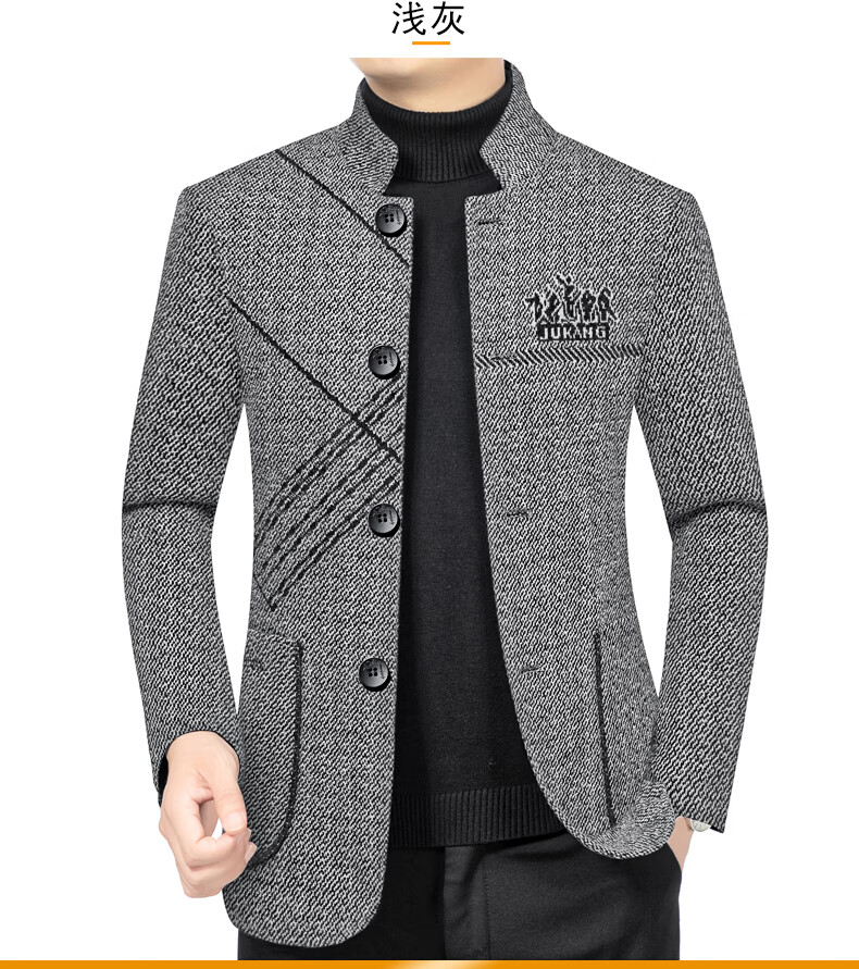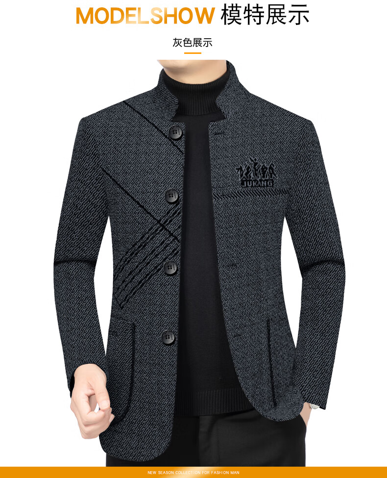 Hengyuanxiang high-end woolen jacket for men 2025 autumn and winter new stand-up collar woolen jacket business casual tunic top dark gray 2429D cotton + thick high-end woolen XL 180 (135-155Jin Jin equals 0.5kg)