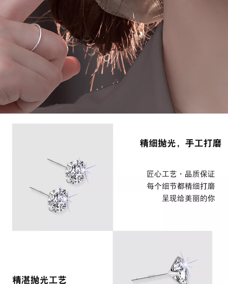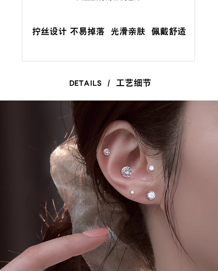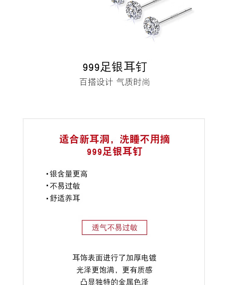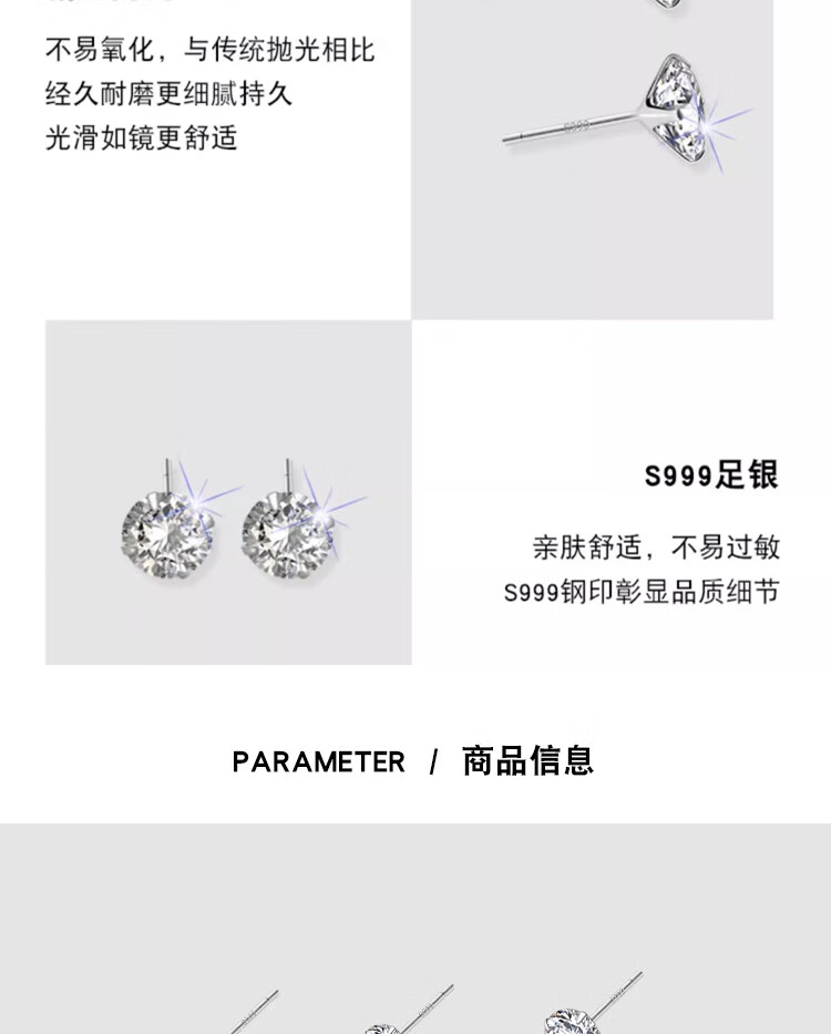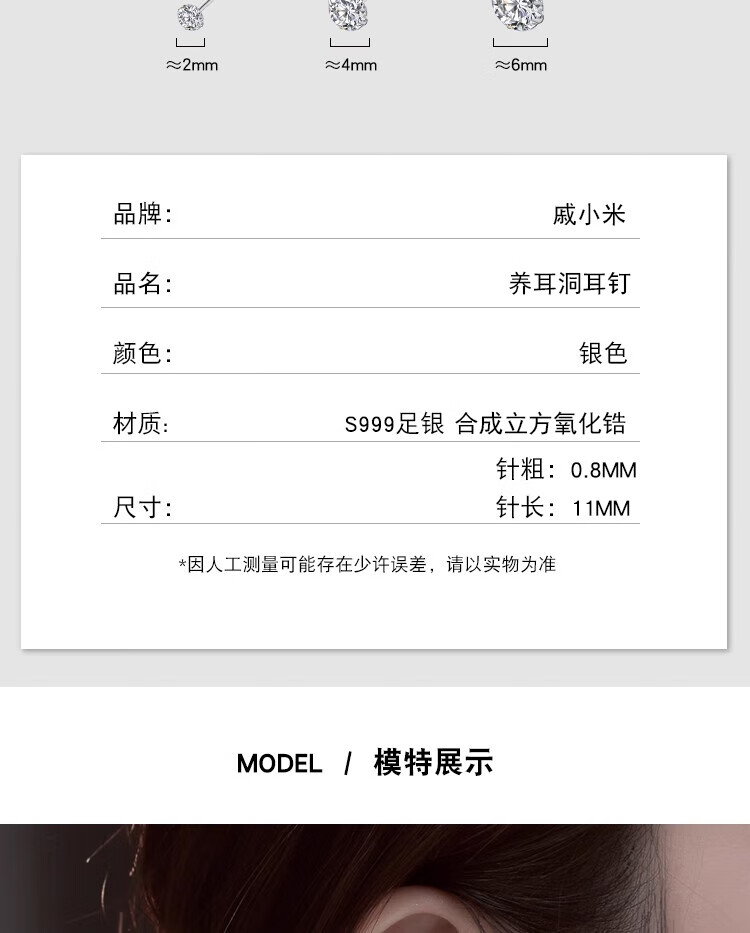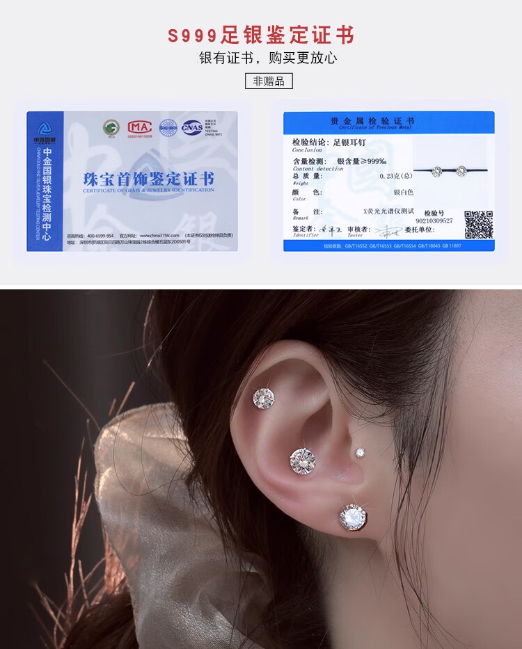 Qi Xiaomi Pure S999 Pure Silver Ear Hole Earrings for Women 2024 New Women's Ear Bone Nails High-Quality Ear Sticks Temperament Silver Earrings 2mm Earrings Pair 999 Silver