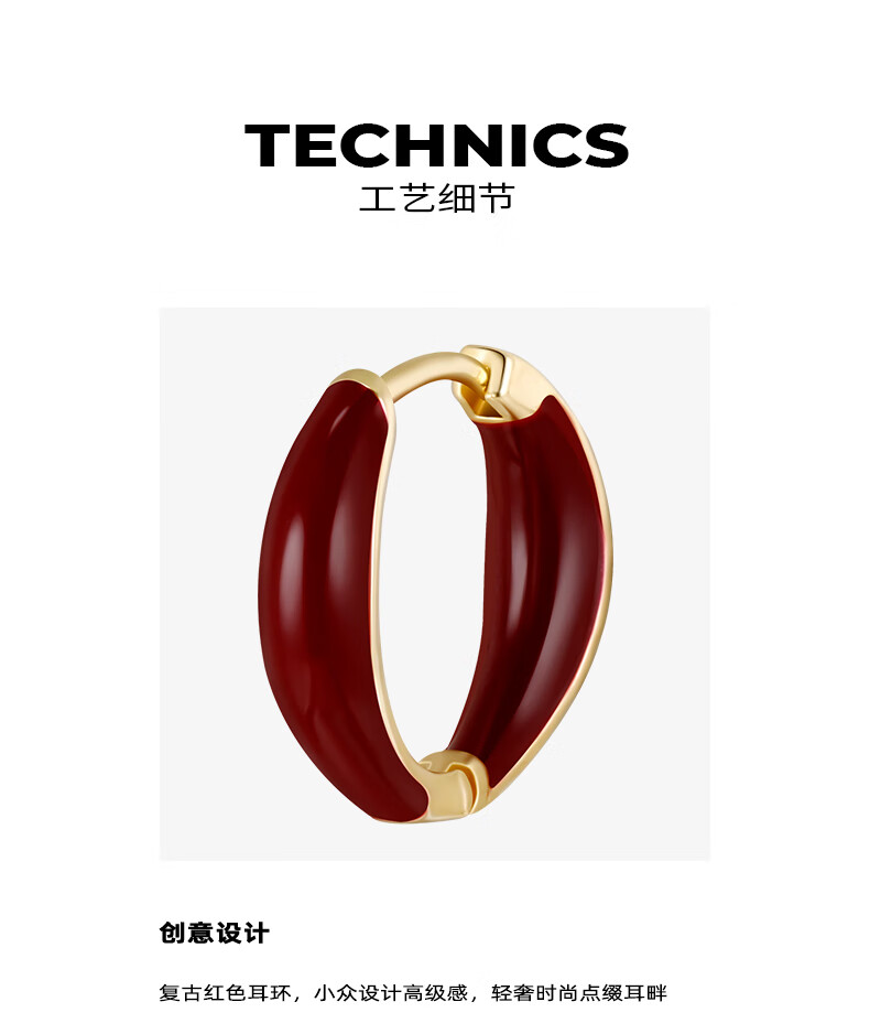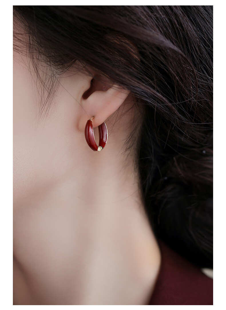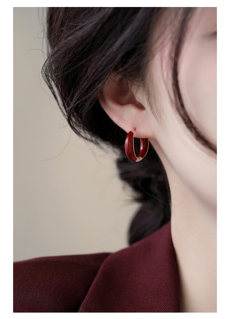 DAISY DREAM retro red earrings women's niche fashion temperament earrings earrings 2025 new high-end Hong Kong style earrings retro red earrings