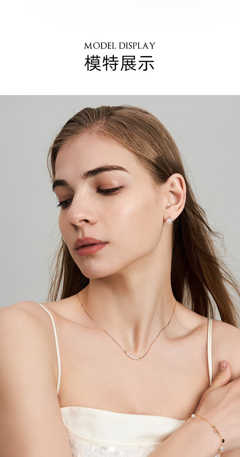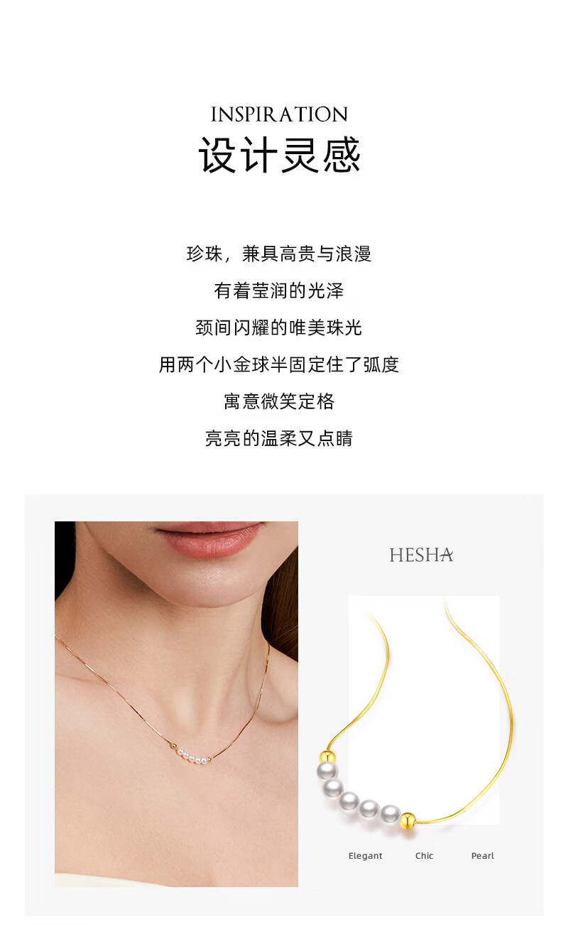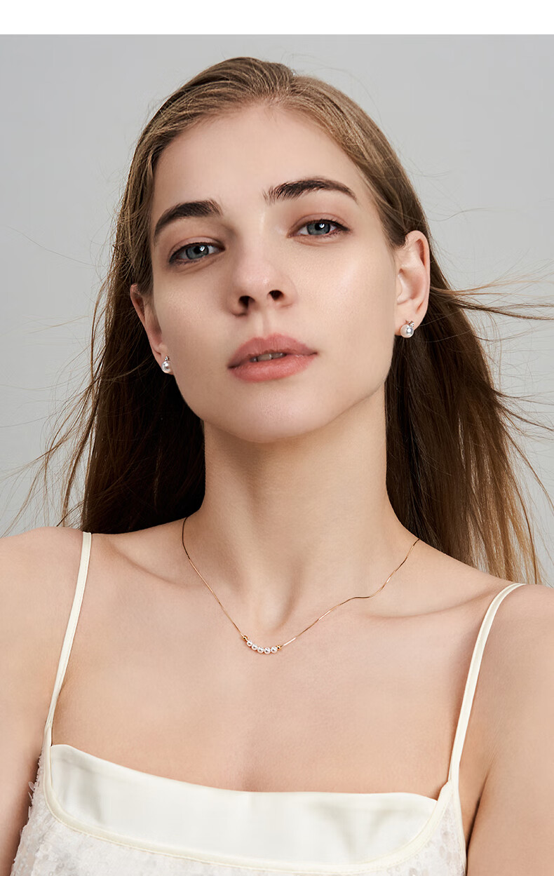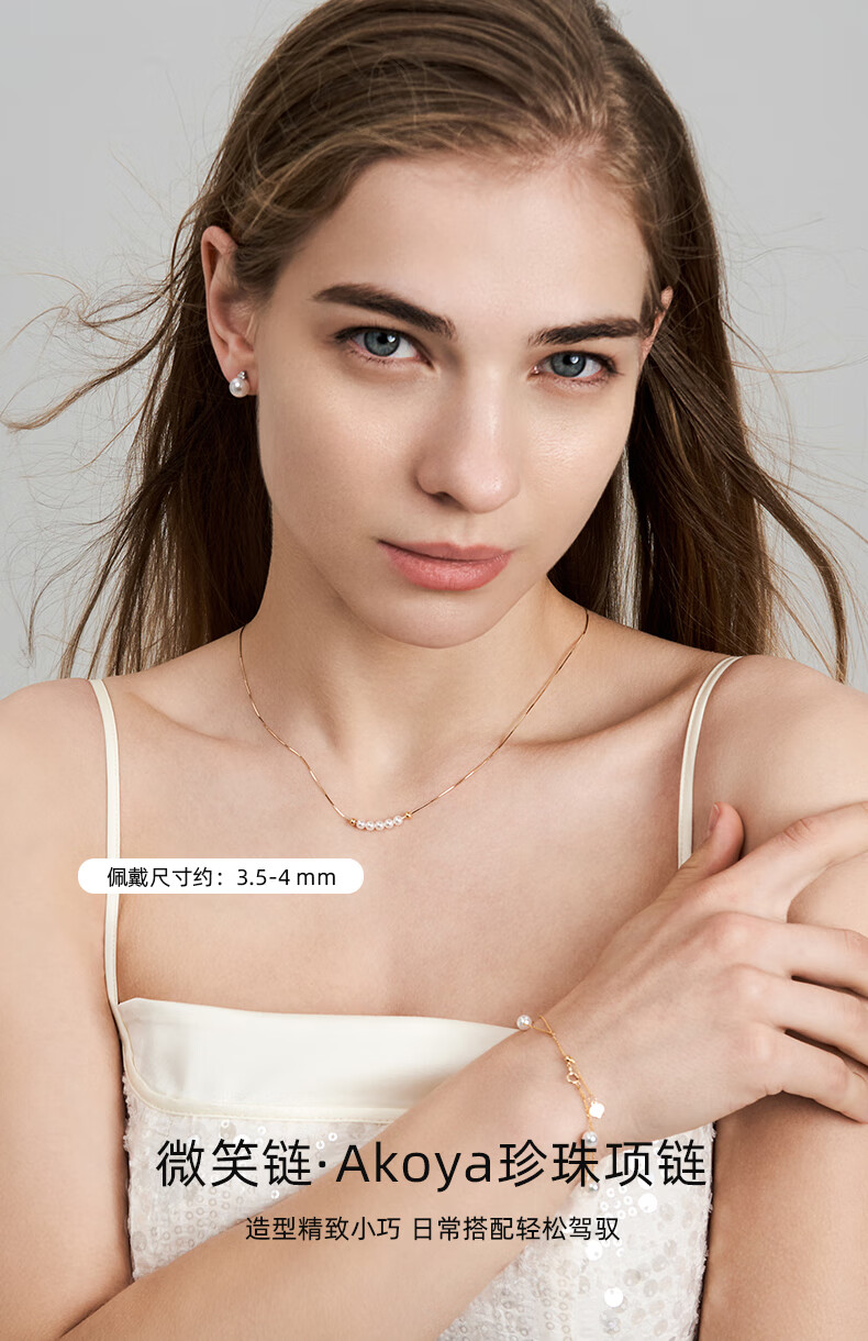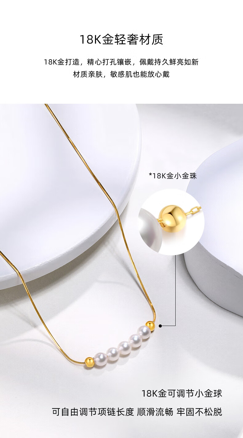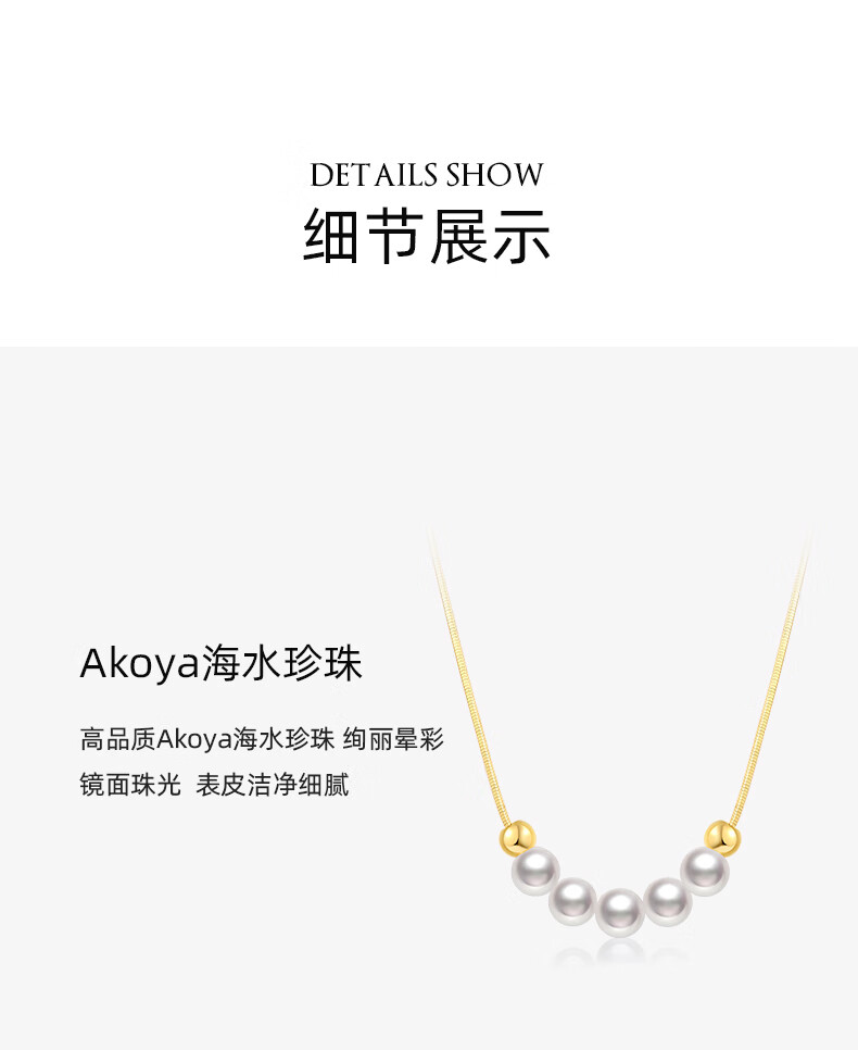Yuanzu Fineline Series High-brightness Akoya Seawater Pearl Necklace 18K Gold Jewelry Smile Necklace Snake Bone Chain Style