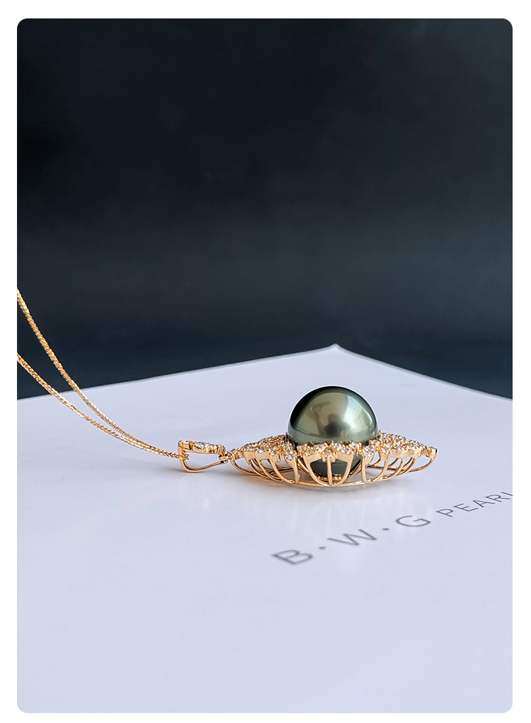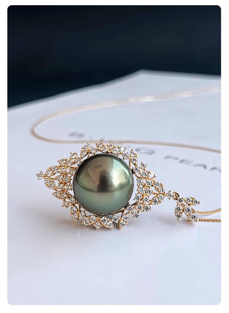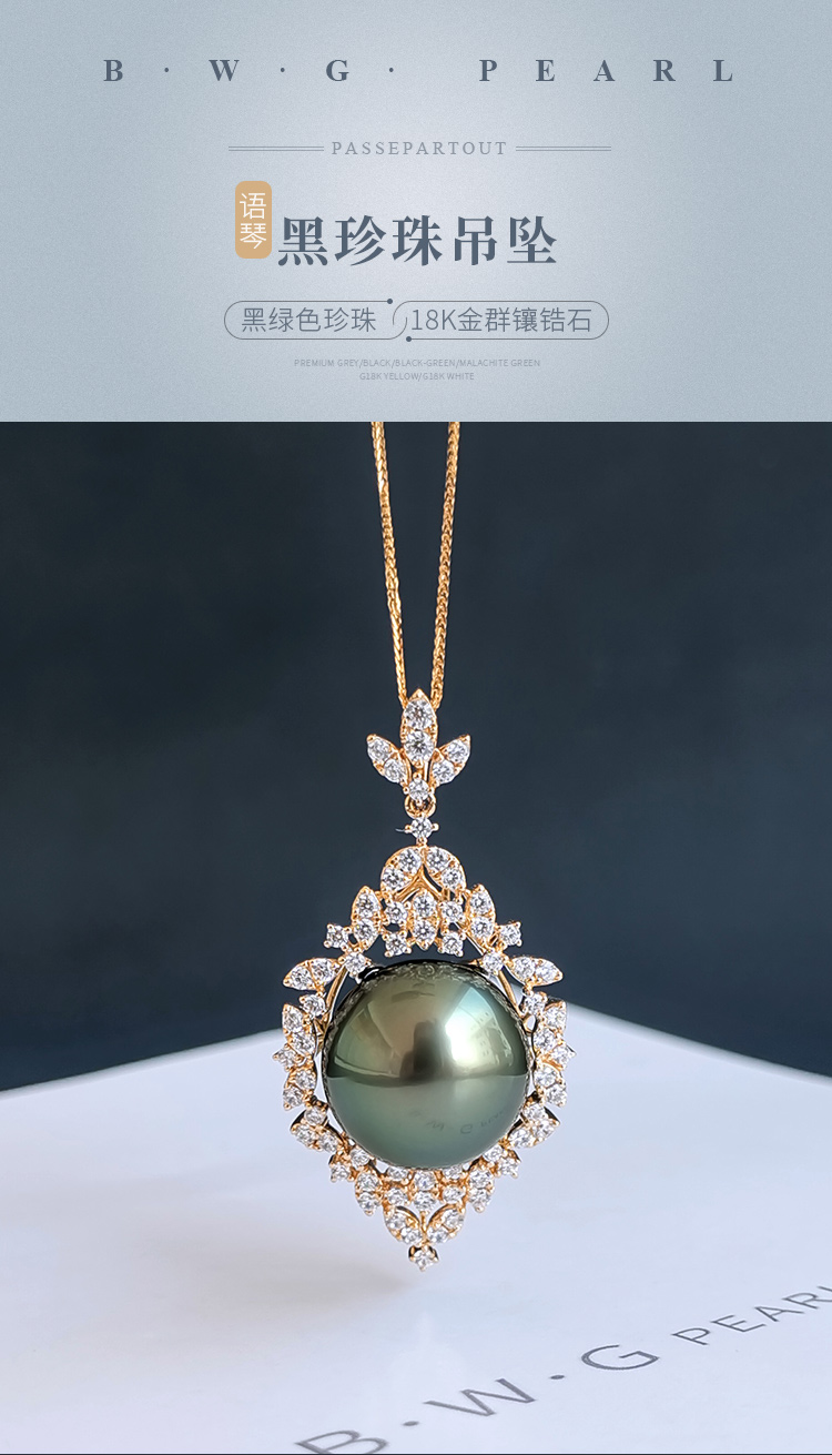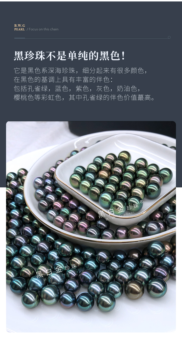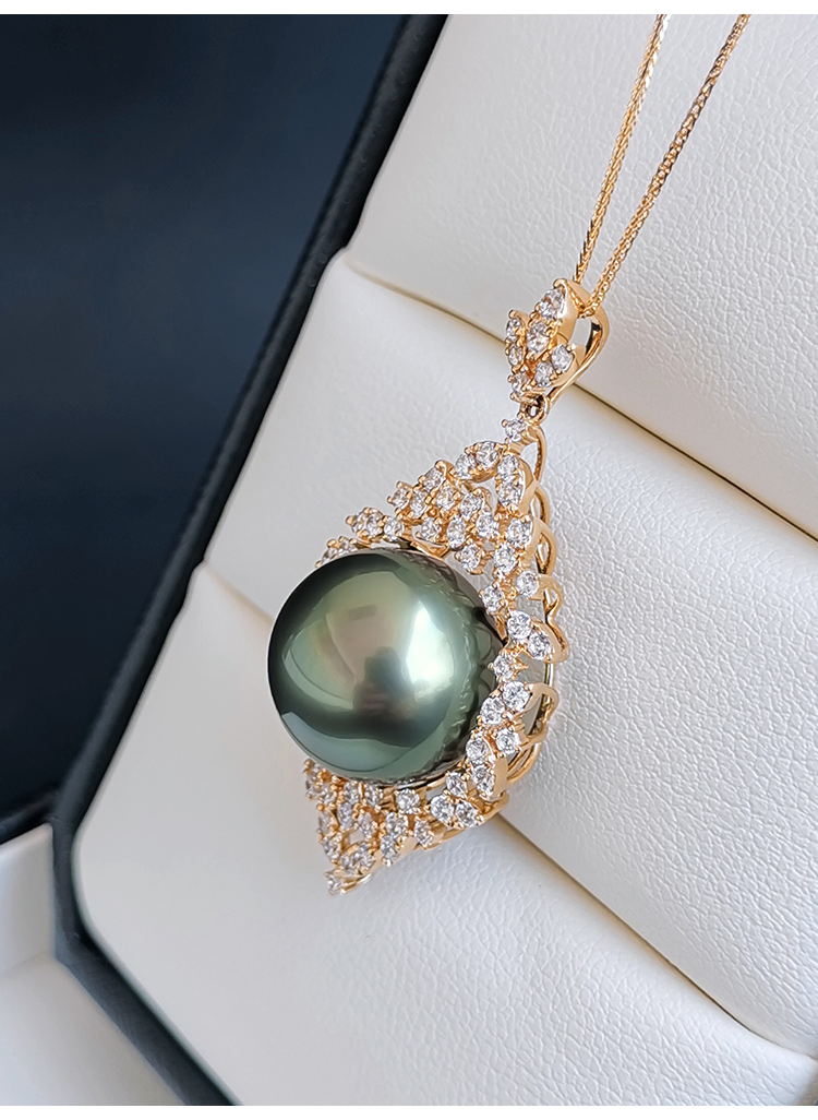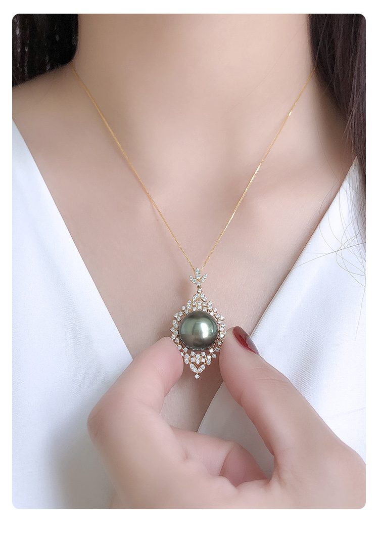 Yuan ethnic black and white gold pearls Tahitian black pearl pendant peacock green female 18k gold seawater pearl necklace jewelry for girls