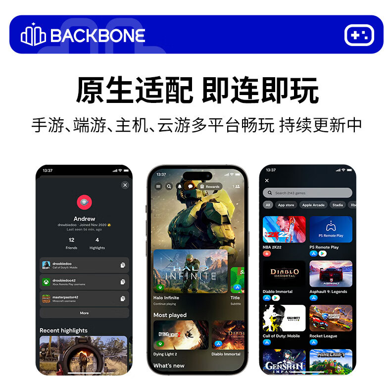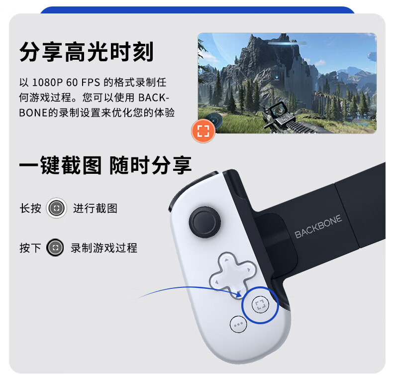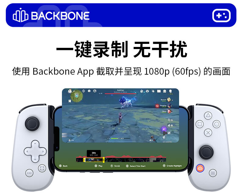 BACKBONE official flagship Backbone One game controller second generation, suitable for Apple 15/16 Android mobile phone game controller, iOS system, Android system, Lightning interface, suitable for iPhone