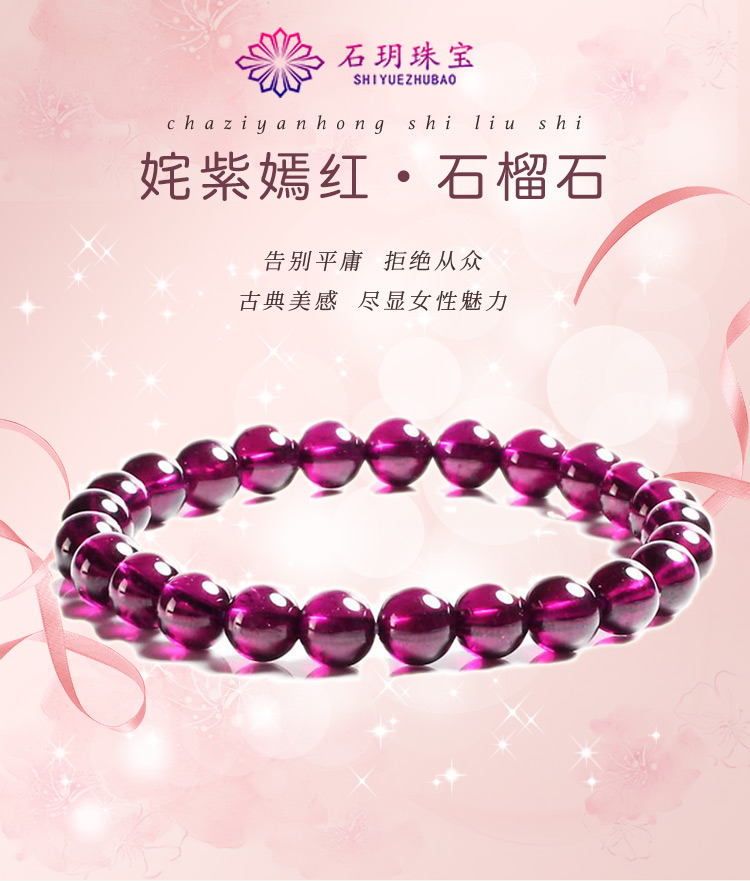 Yuanzu 6-7mm Purple Tooth Black Garnet Bracelet Boutique Bracelet for Men and Women, Crystal Agate, Personalized and Versatile