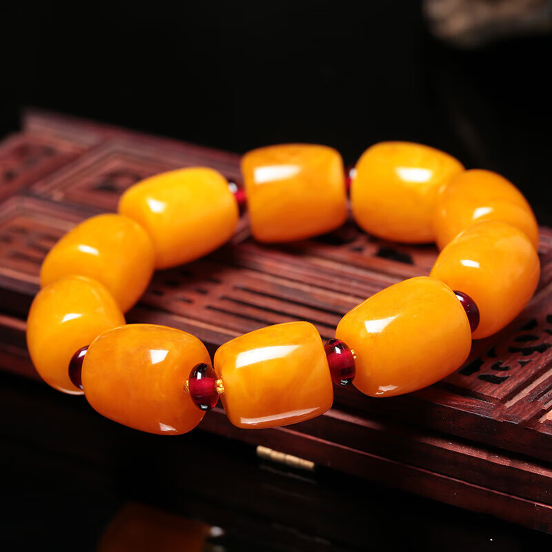 Tiansi Natural Baltic Sea Old Beeswax Bracelet Men's Unoptimized Raw Stone Amber Bracelet Chicken Oil Yellow No Baked Color Collection of Old Beeswax (Men's Bucket Beads Nine Beads)