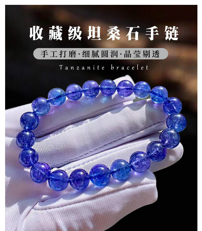 Canbei Natural Faceted Tanzanite Bracelet Women's Tanzanite Sapphire Bracelet Plate Bead Necklace Blue Plate Beads Round Jewelry Stone Tasan 9mm Bracelet with Certificate