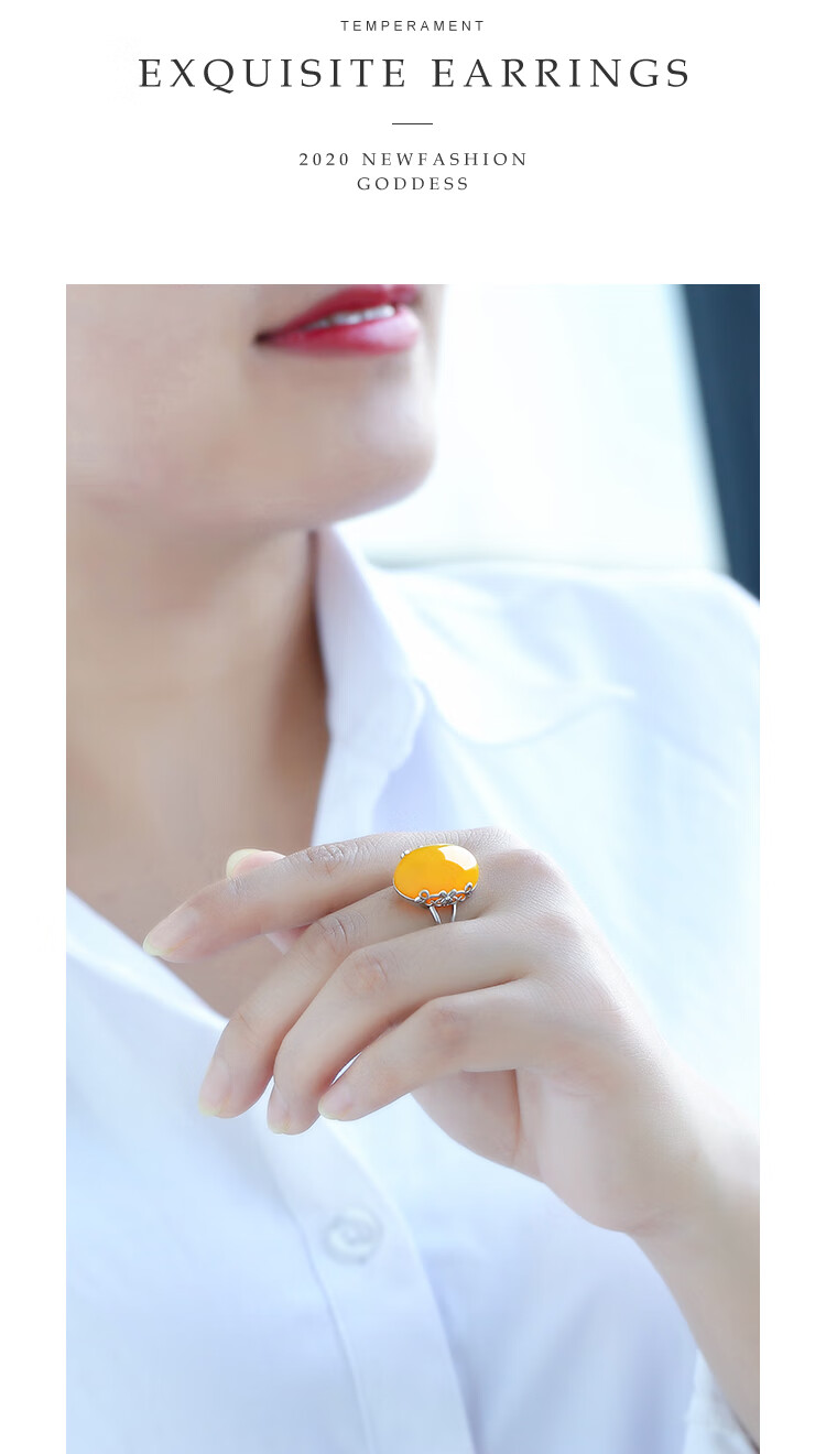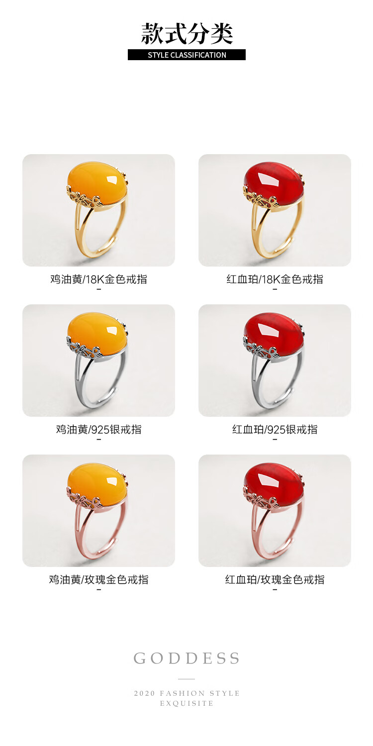 Fire clam beeswax ring chicken fat yellow old honey 925 silver plated 18K gold wine red blood amber amber ring natural chicken fat yellow + gold ring setting