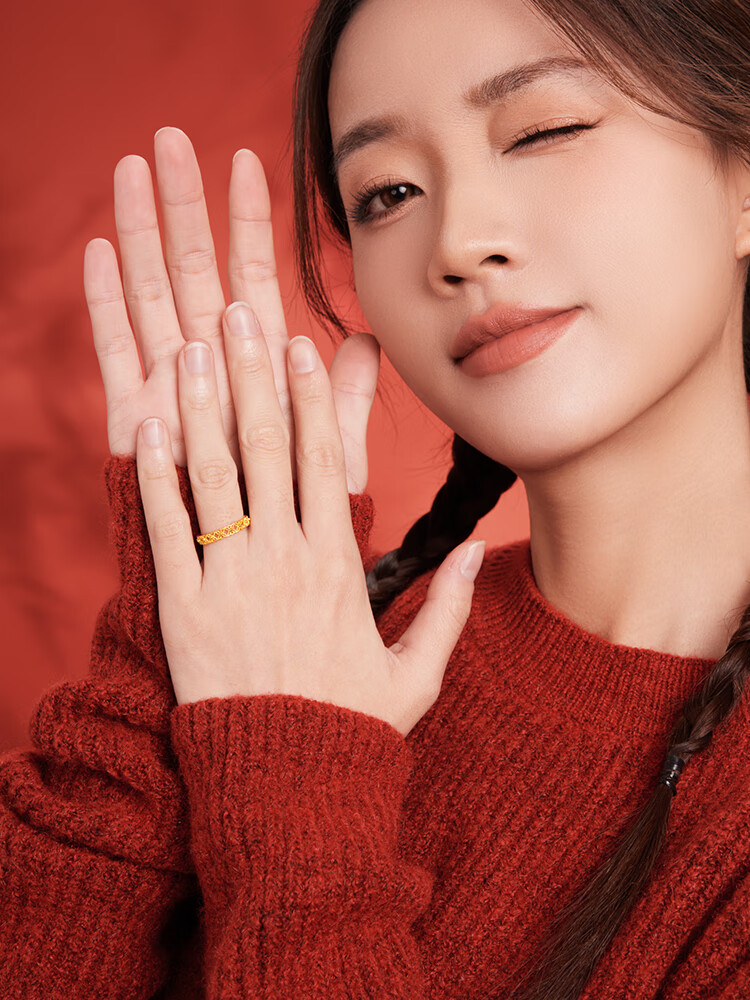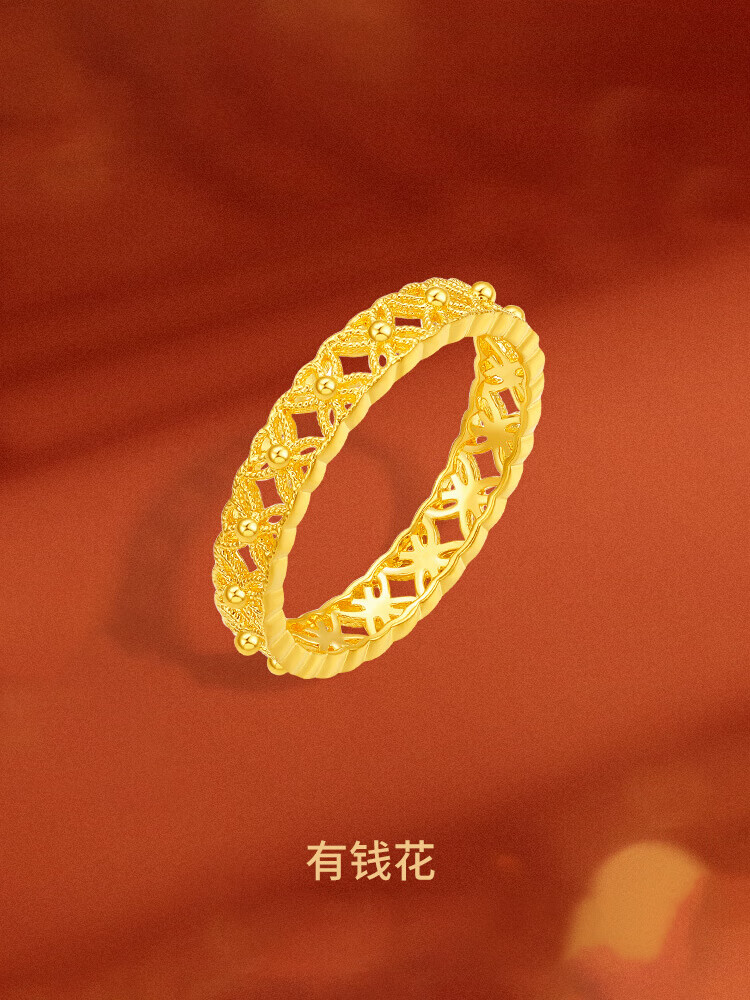 Fire shell gold color money flower copper money pattern lace ring women's money coin bracelet 18K gold plated ring as a gift for your girlfriend