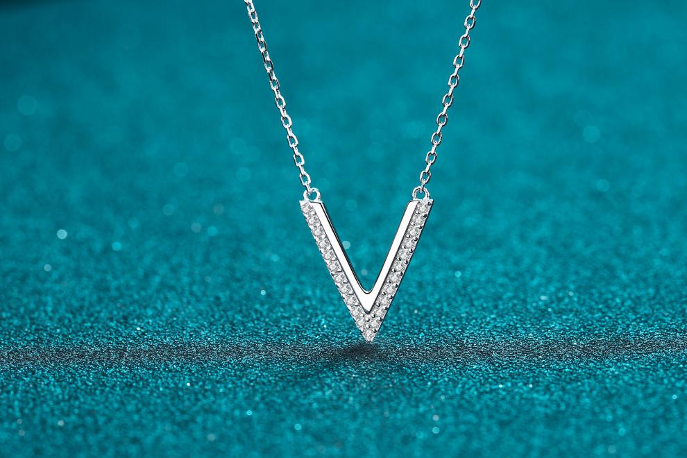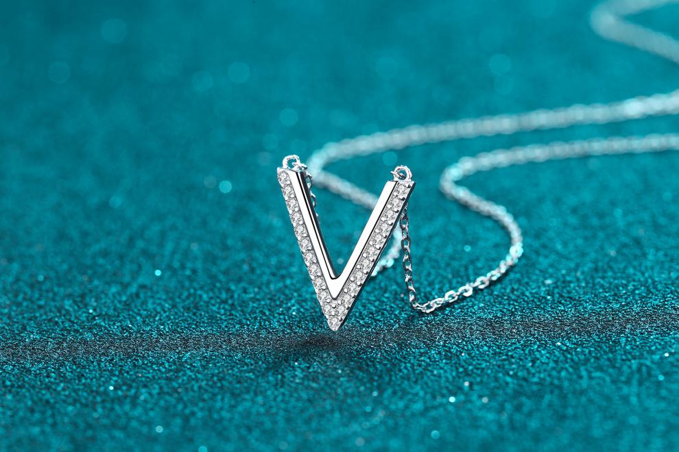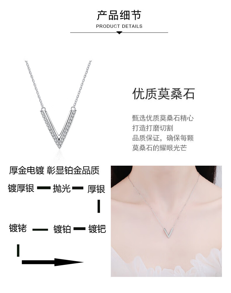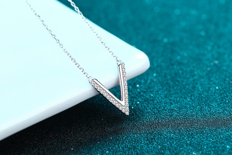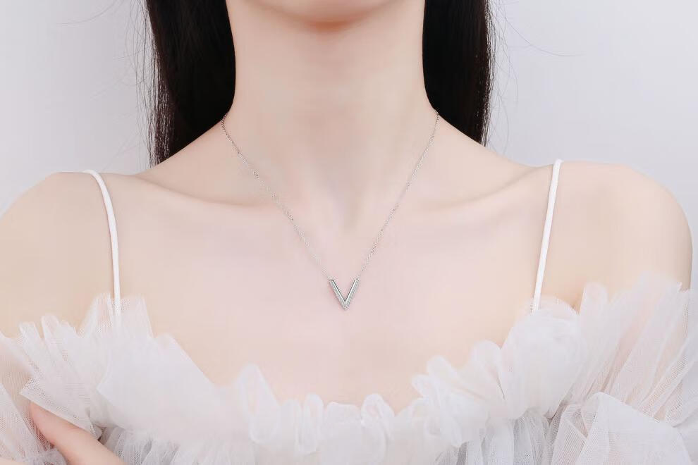 Huobei PT950 platinum pendant for women, sterling silver V-shaped moissanite micro-set necklace, versatile, birthday gift for wife and girlfriend 19