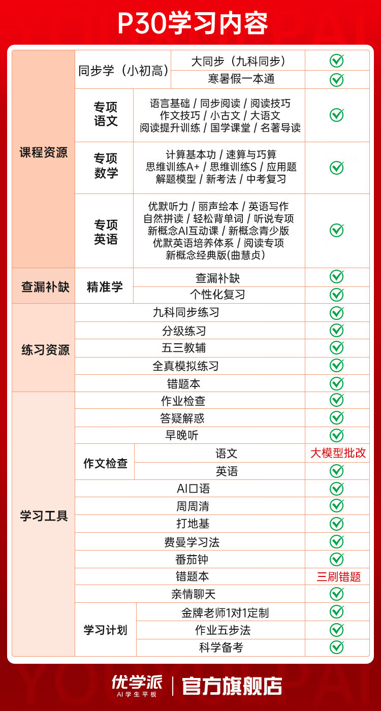 Youxuepai learning machine P30 8G+256G student tablet computer, primary school, junior high school and high school synchronization, English point reading machine, eye protection tutoring machine, primary school tablet learning machine, early education machine P30 with pen version 8G+8G+256G