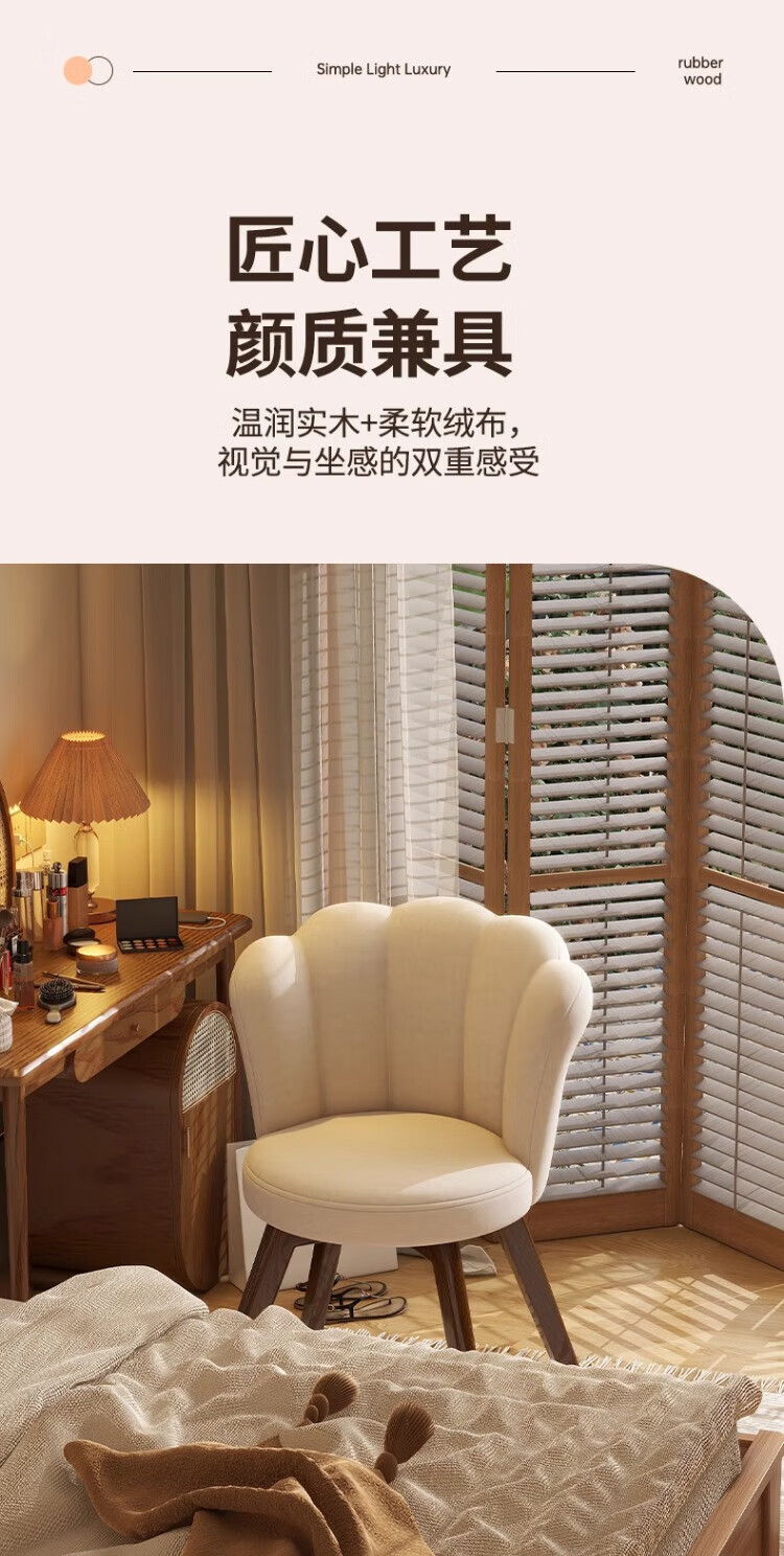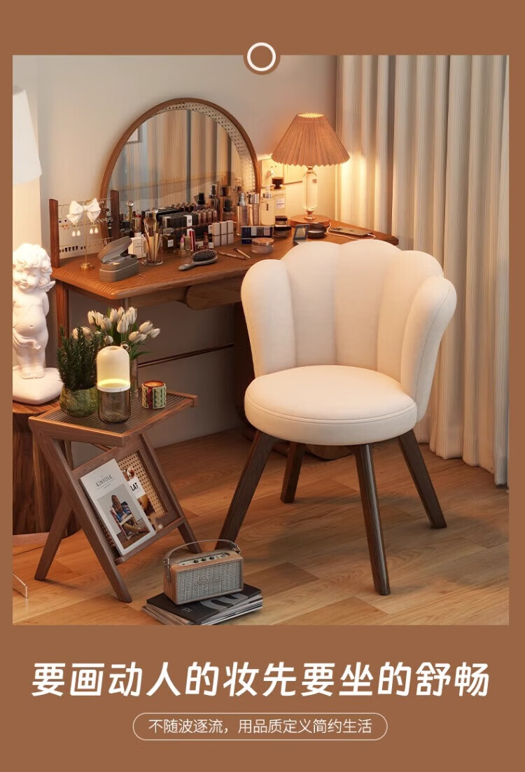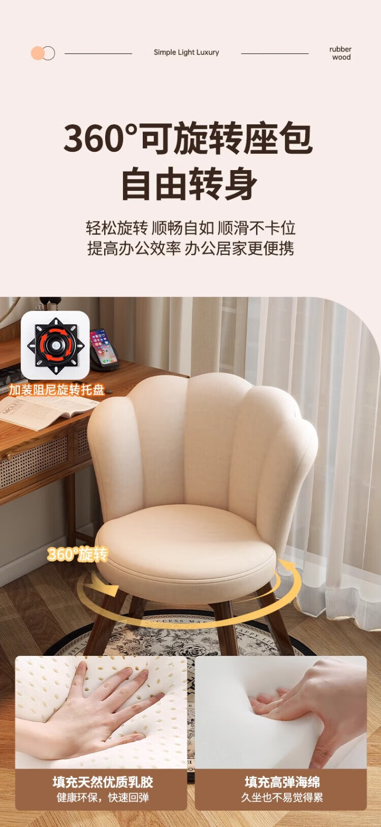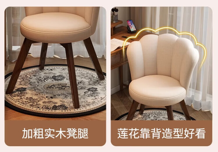 Manshanzhong antique style dressing chair solid wood rotatable makeup chair girls bedroom dressing table back chair retro stool light luxury simple white - latex style - velvet