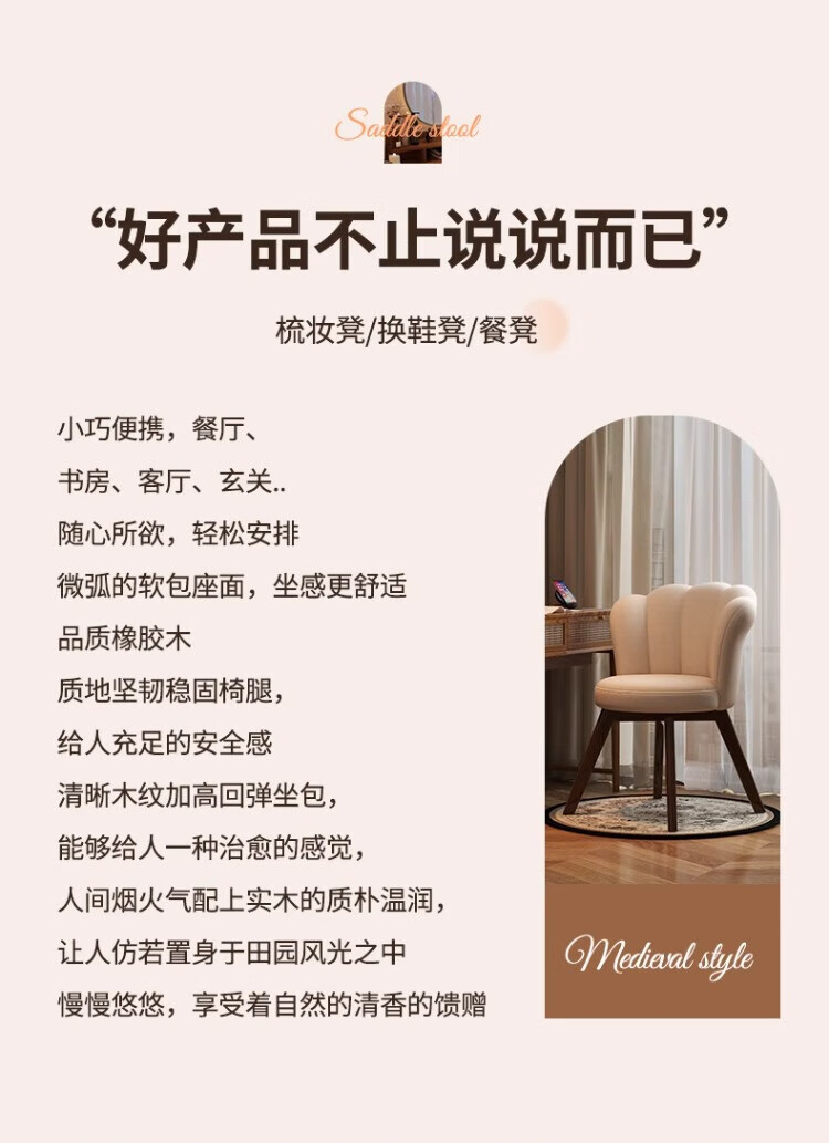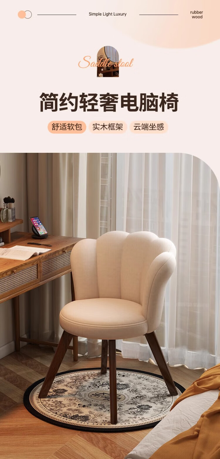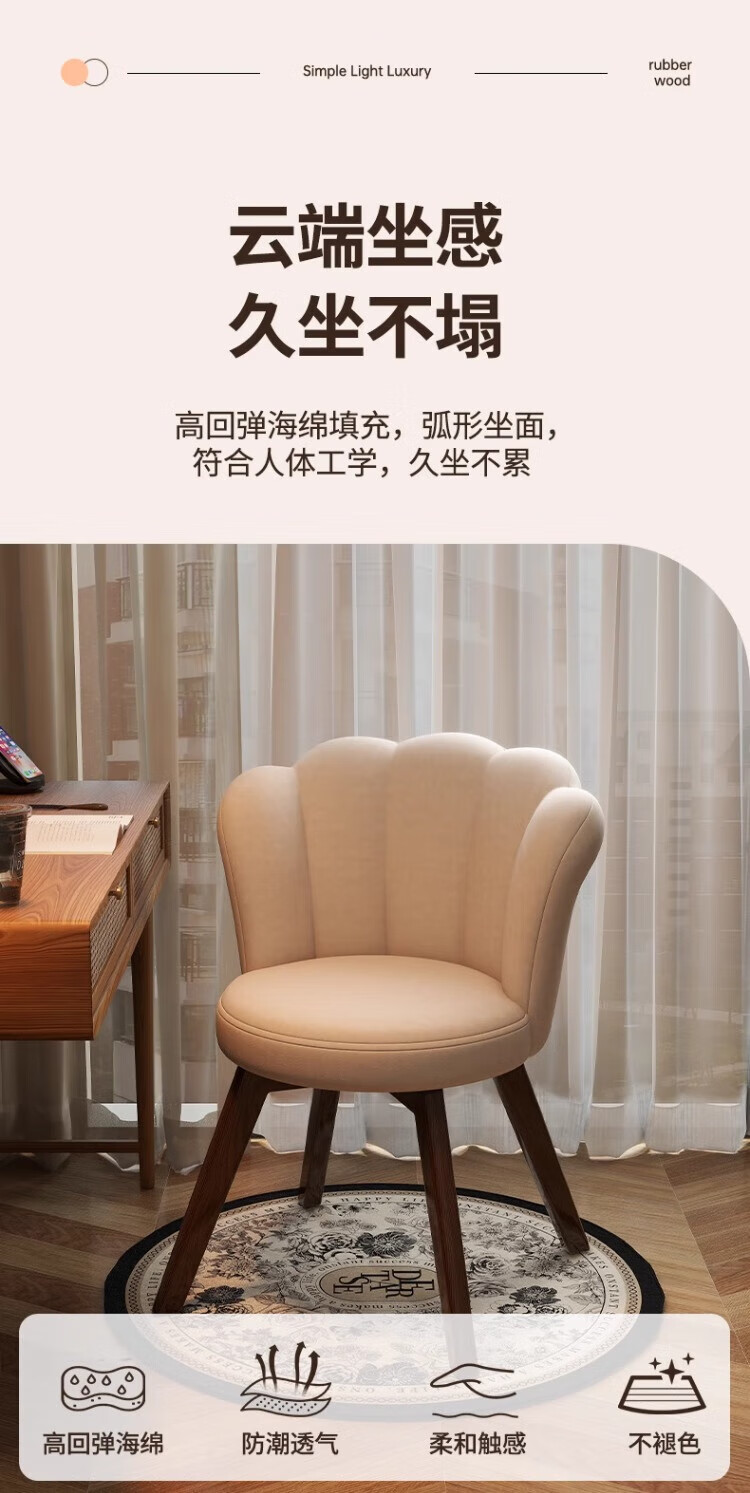 Manshanzhong antique style dressing chair solid wood rotatable makeup chair girls bedroom dressing table back chair retro stool light luxury simple white - latex style - velvet