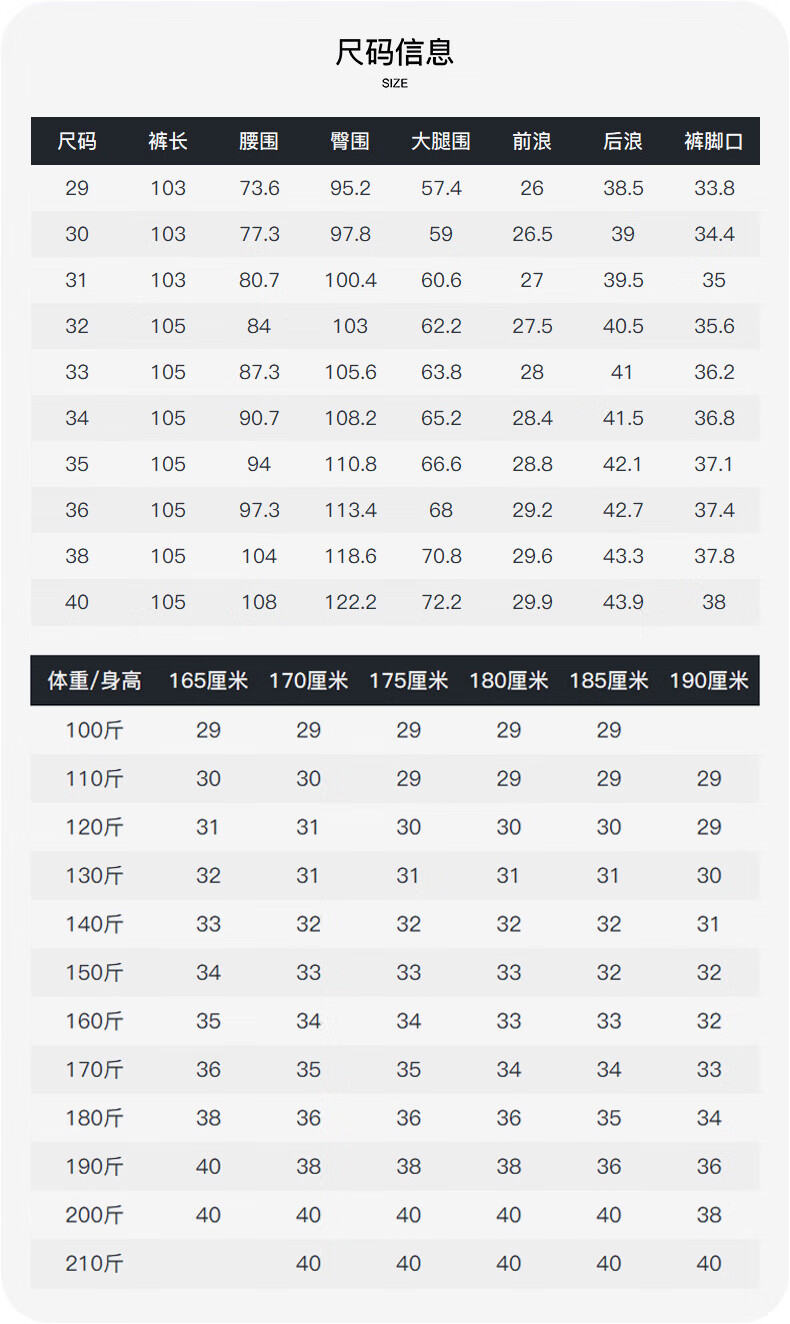 China (cm) 160-165/84-86 165-170 / 88-90 167-172 / 92-96 168-173 / 98-102 170-176 / 106-110