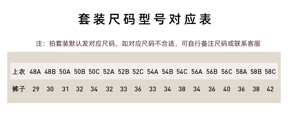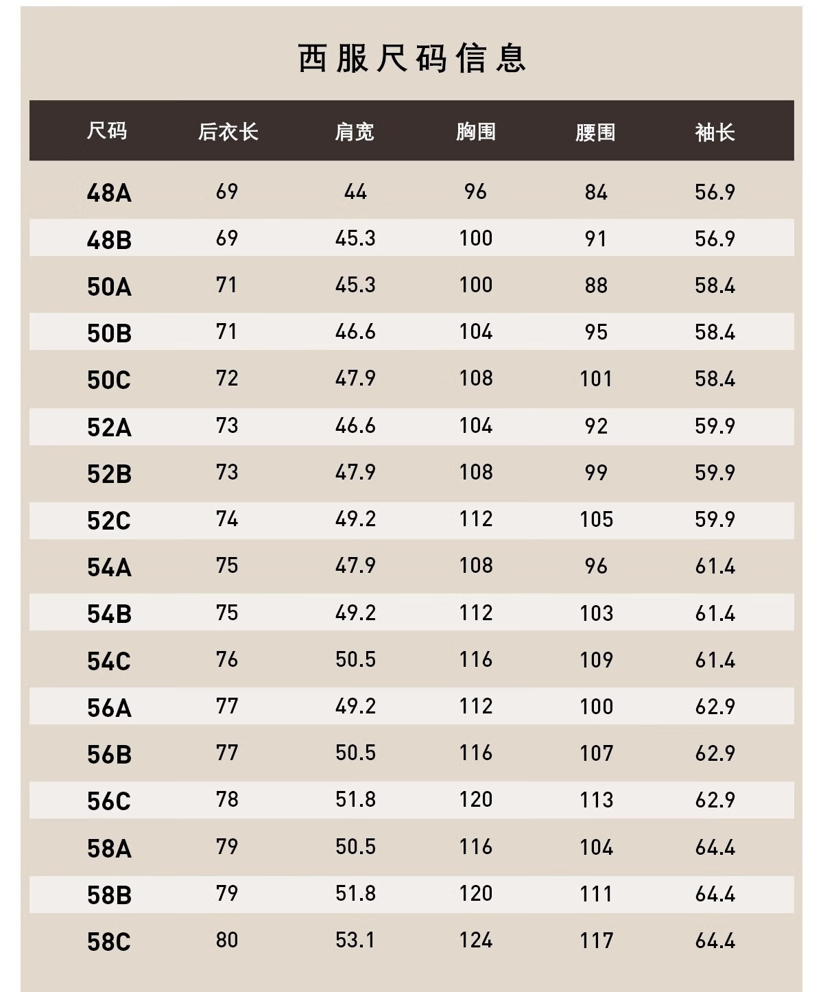 China (cm) 160-165/84-86 165-170 / 88-90 167-172 / 92-96 168-173 / 98-102 170-176 / 106-110