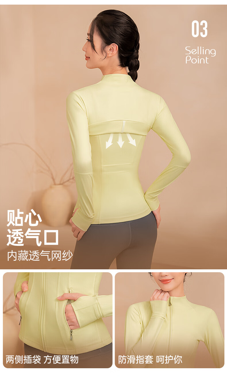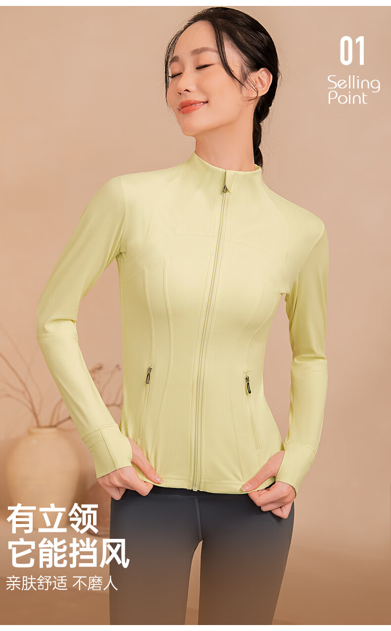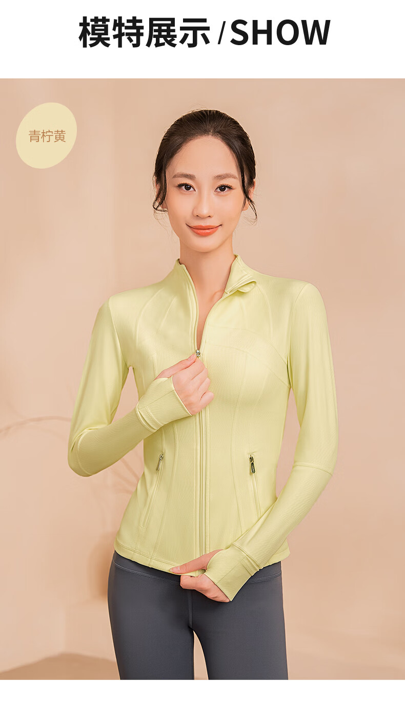 Meesu Yoga Jacket Sports Slim Women's Autumn and Winter Fitness Wear Slim Outdoor Running Stand Collar Windproof Pilates Jacket Lime Yellow M