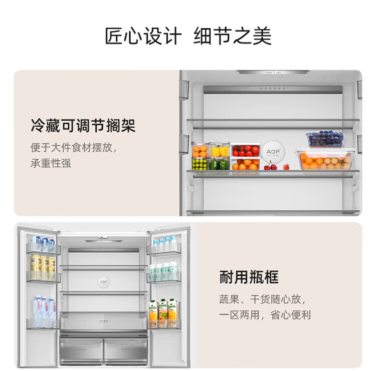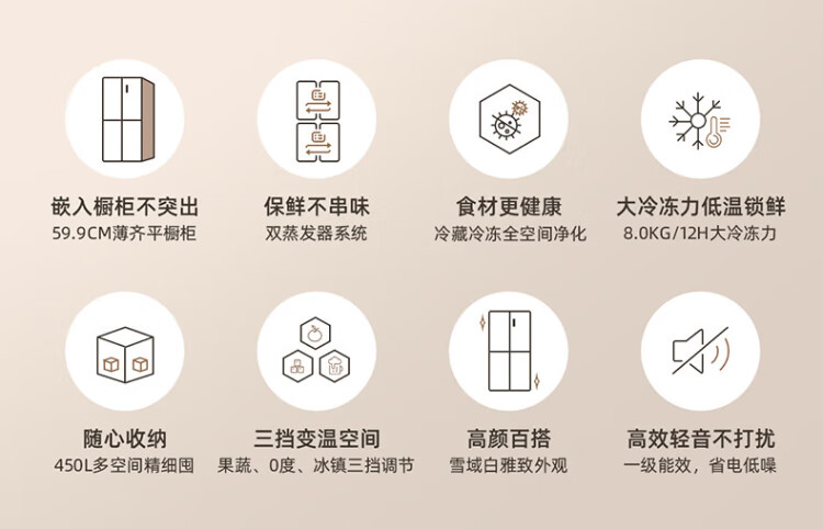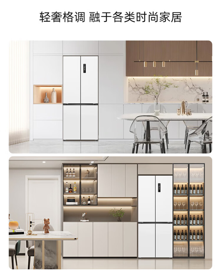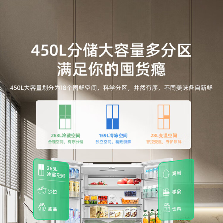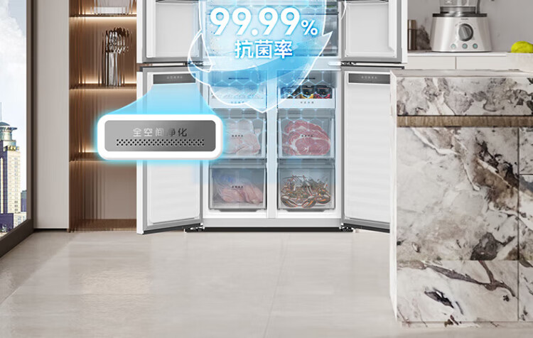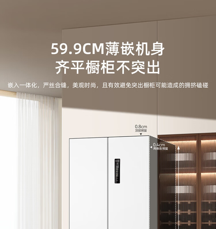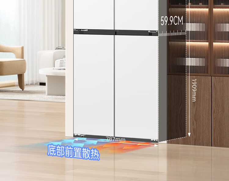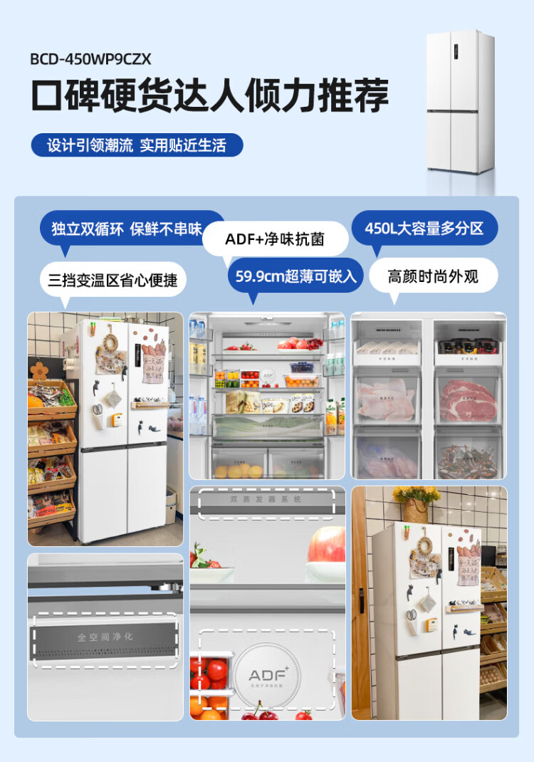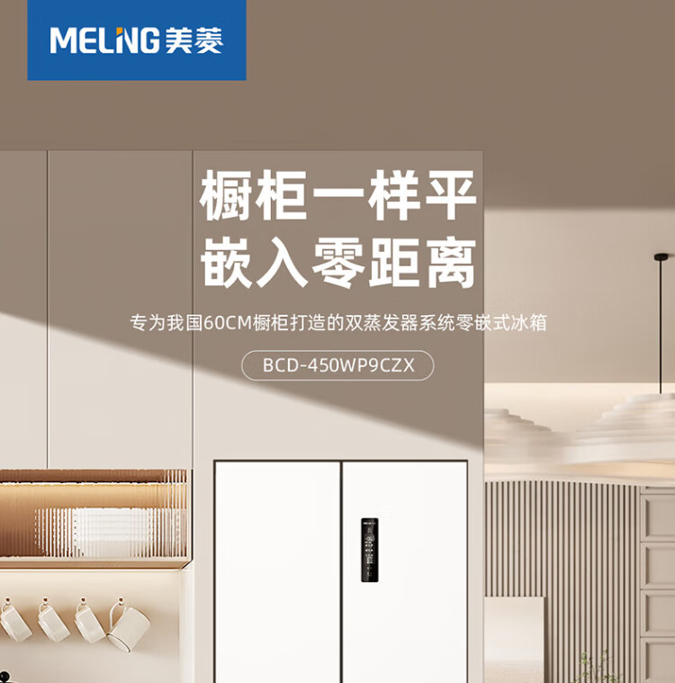 MeiLing worry-free inlay 450 cross four-door double-door home 59.9 ultra-thin flat inlay dual system large freezing power frequency conversion energy-saving first-class energy efficiency air-cooled frost-free refrigerator national subsidy BCD-450WP9CZX-grey worry-free inlay