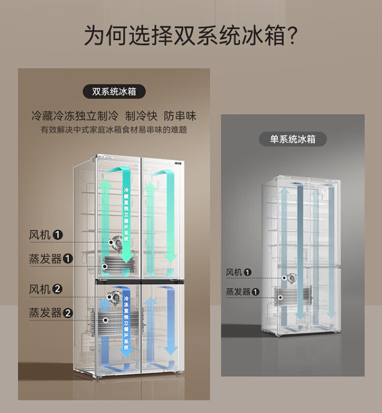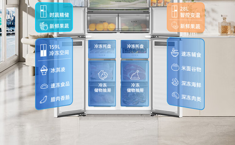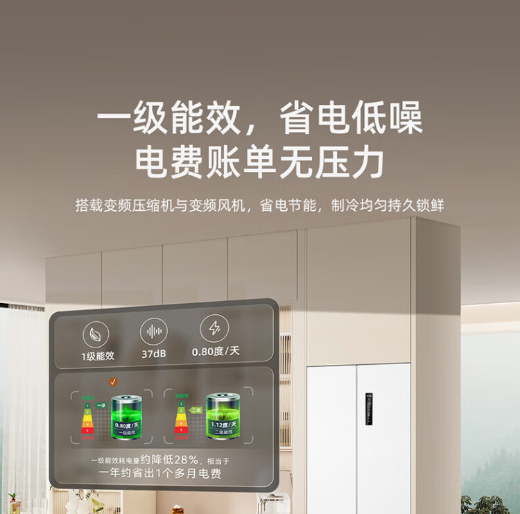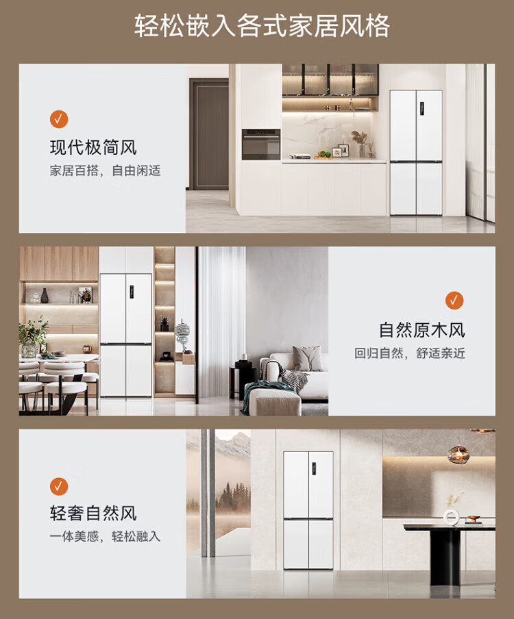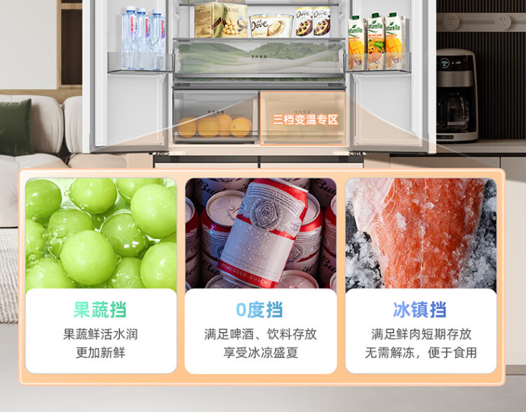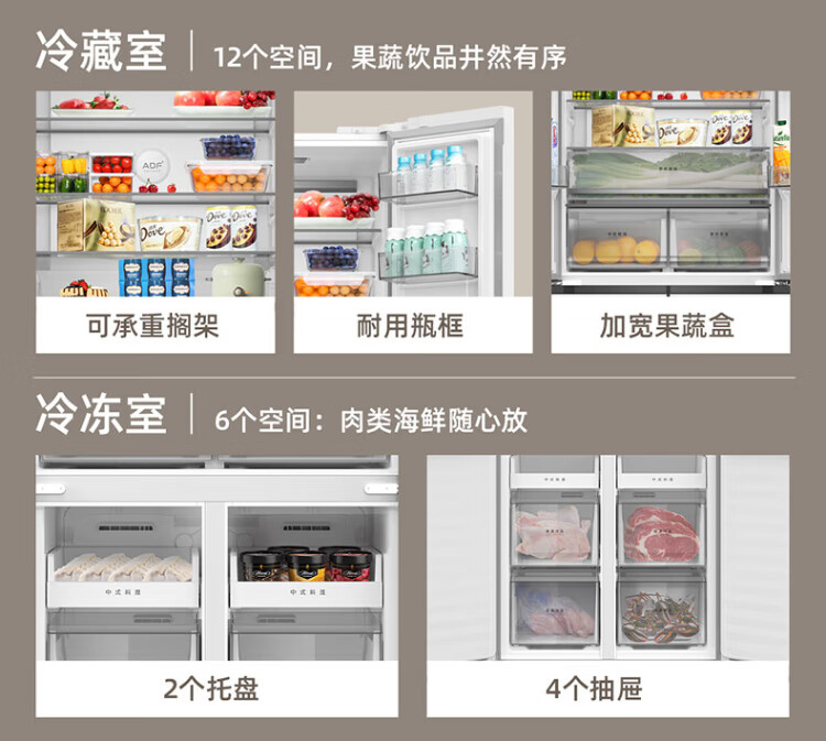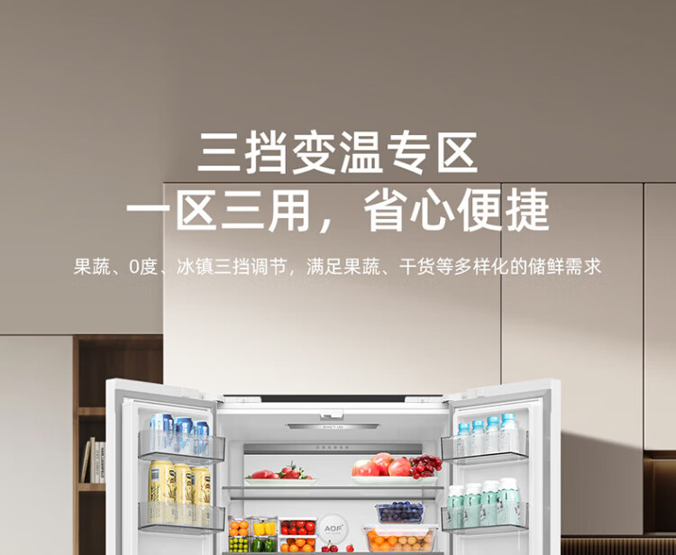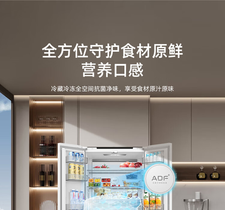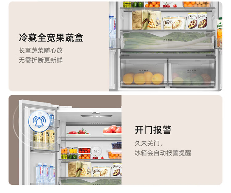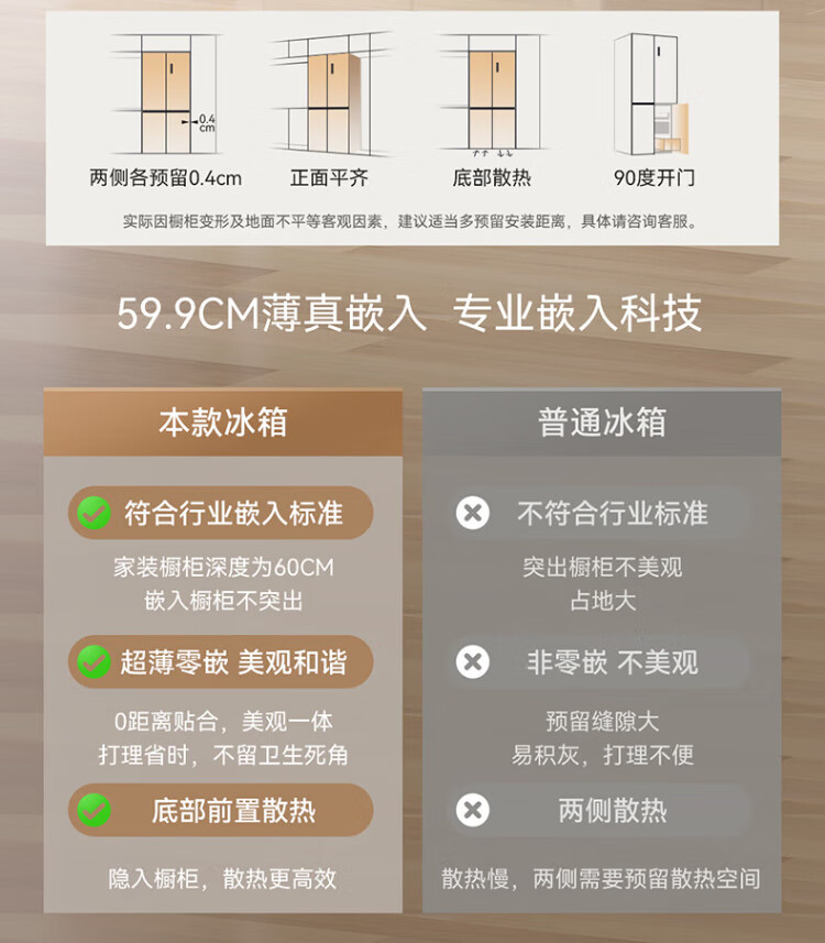 MeiLing worry-free inlay 450 cross four-door double-door home 59.9 ultra-thin flat inlay dual system large freezing power frequency conversion energy-saving first-class energy efficiency air-cooled frost-free refrigerator national subsidy BCD-450WP9CZX-grey worry-free inlay