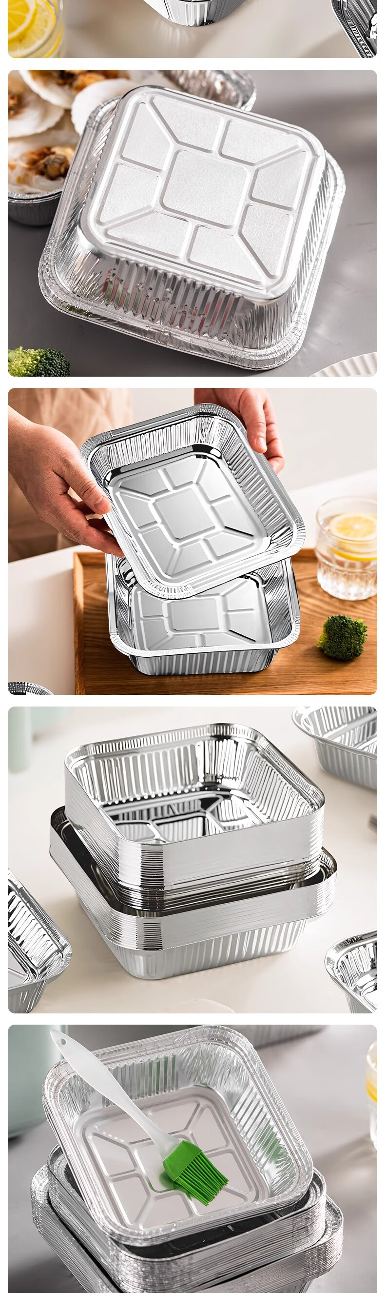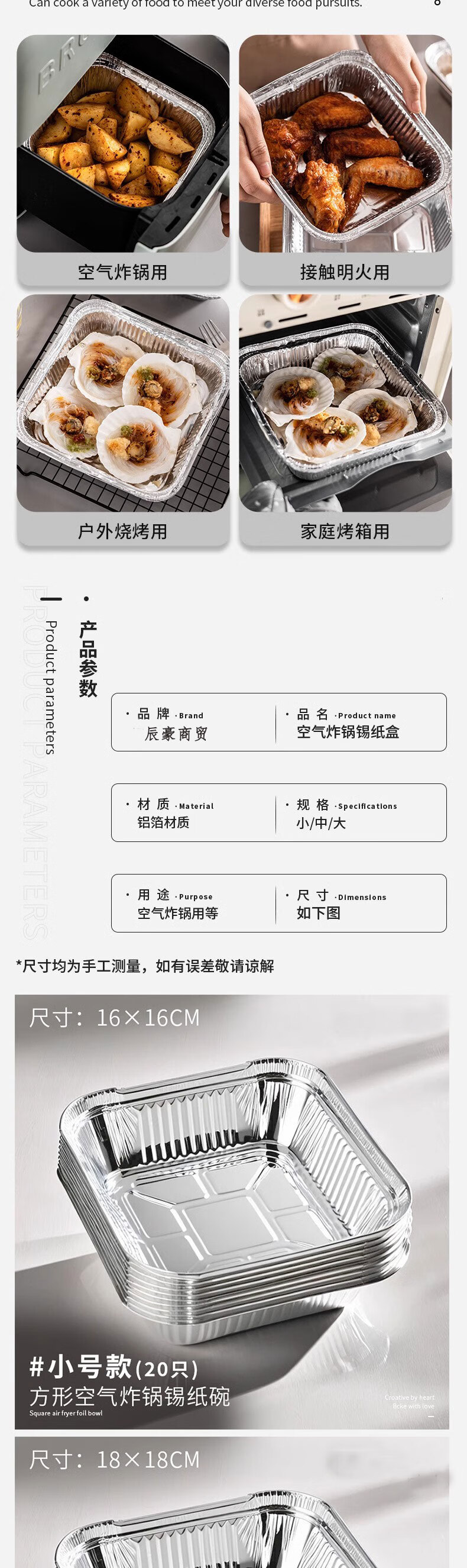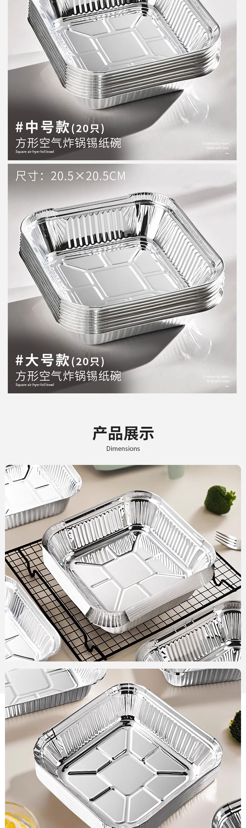 Air fryer special paper square tinfoil tray barbecue box tinfoil box bowl baked food grade thickened high temperature resistant square length/width 20cm 60 pcs