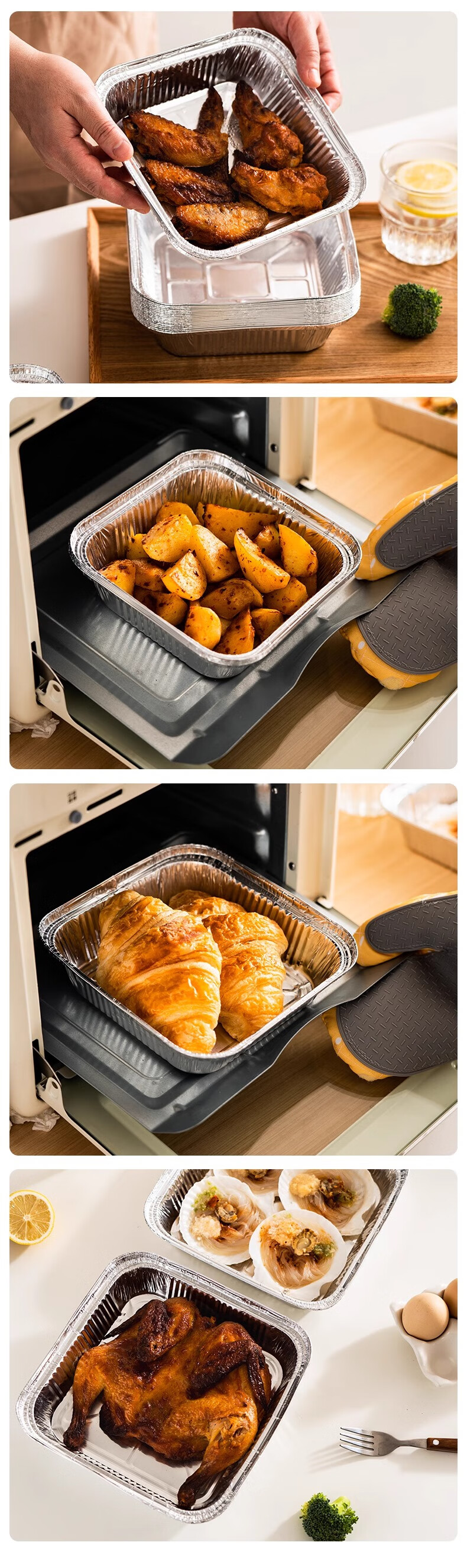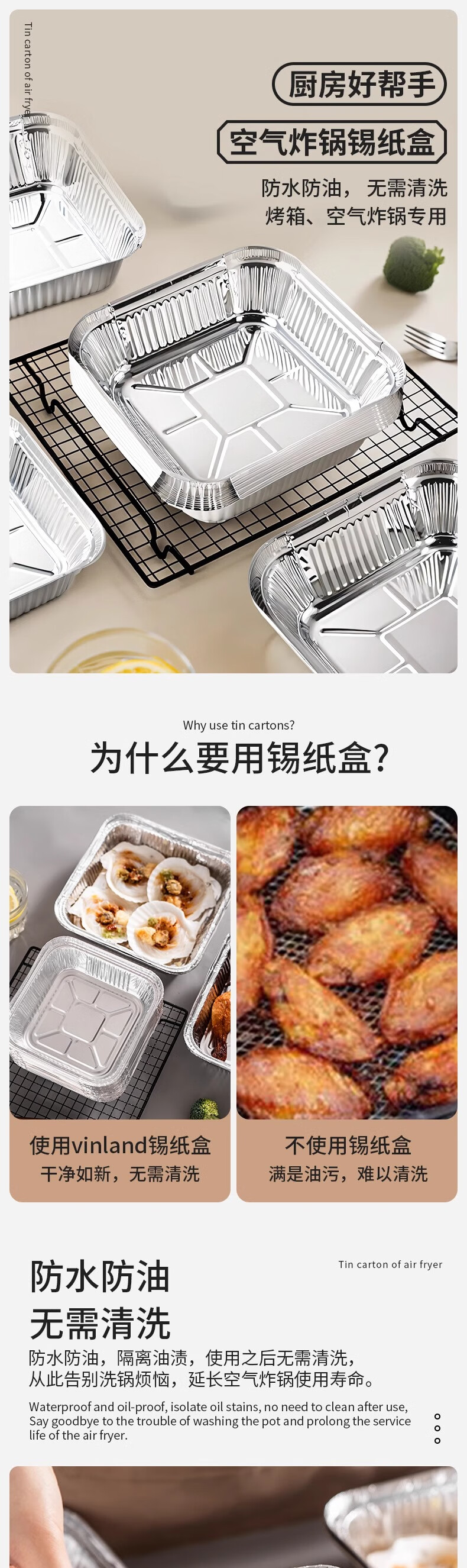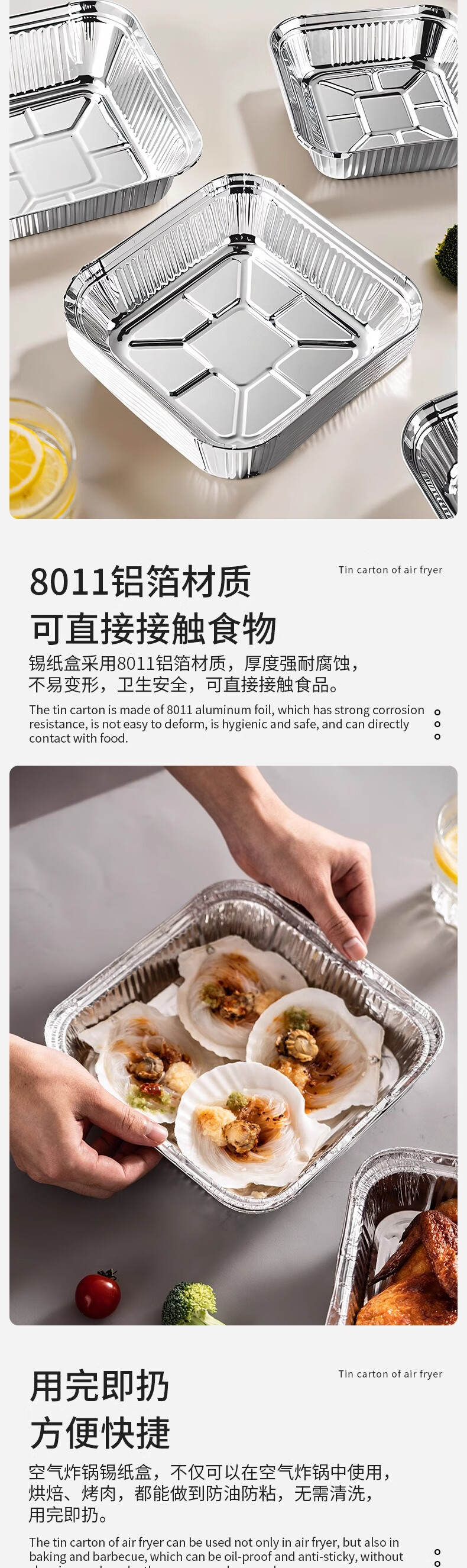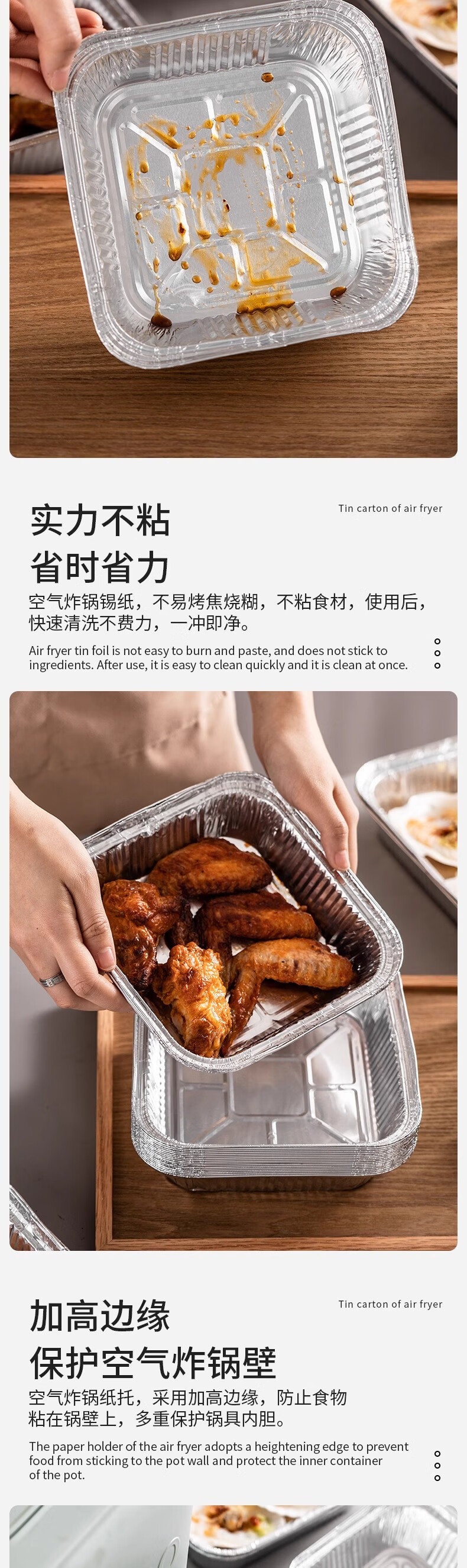 Air fryer special paper square tinfoil tray barbecue box tinfoil box bowl baked food grade thickened high temperature resistant square length/width 20cm 60 pcs