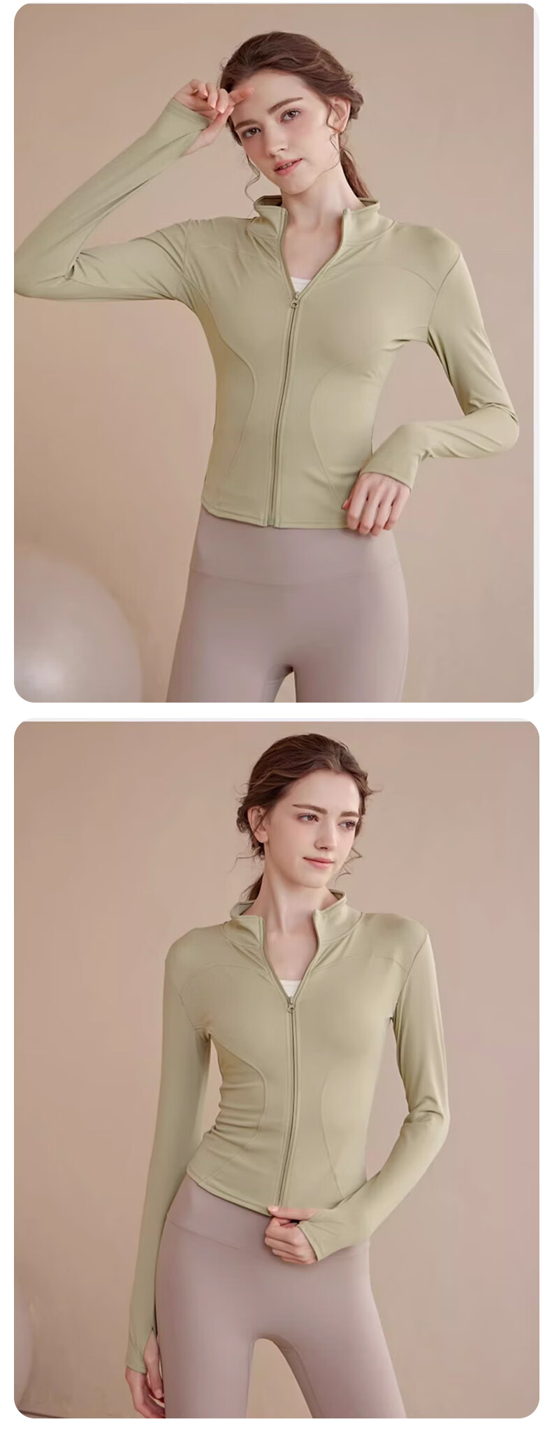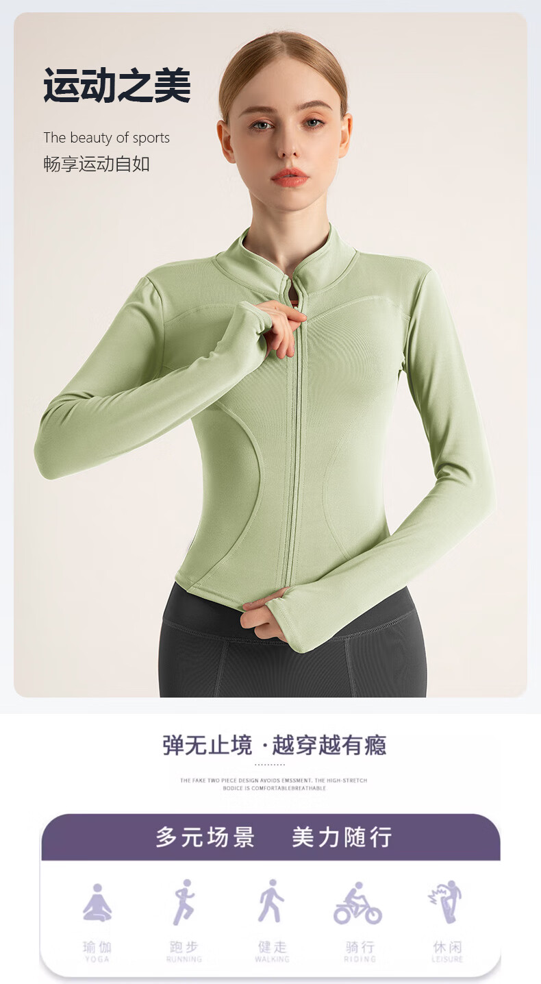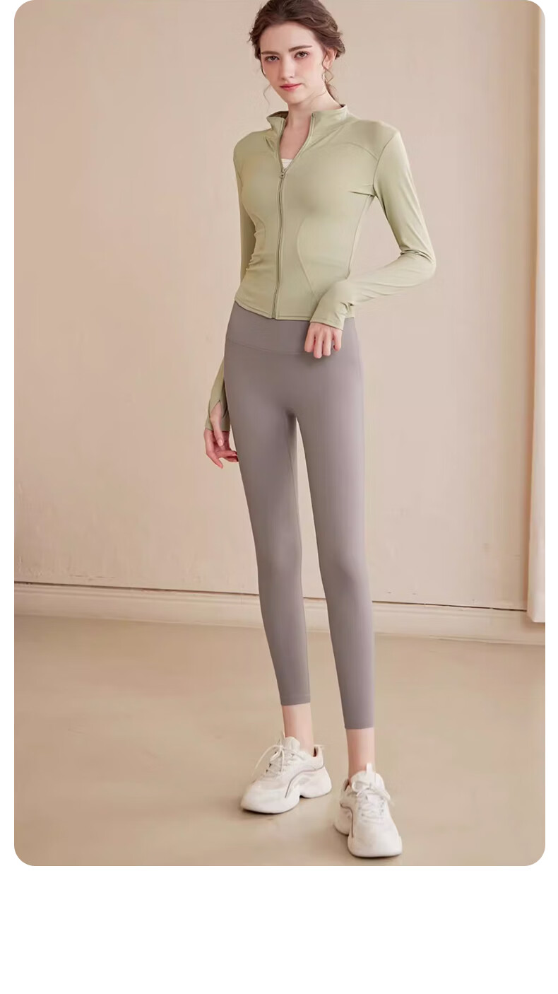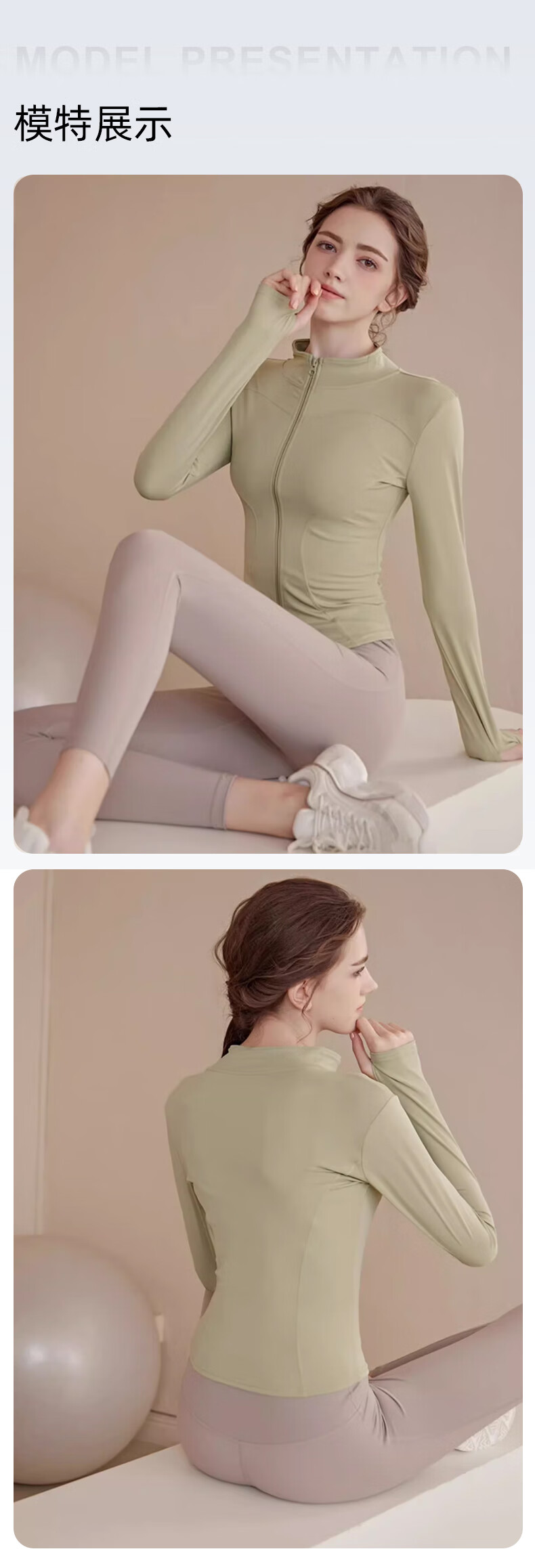 Nanmu Xiong yoga clothing suit women's sports fitness clothing yoga pants running spring and summer long-sleeved tops Pilates training quick-drying clothing cardamom green jacket M size 85-110Jin Jin equals 0.5 kg