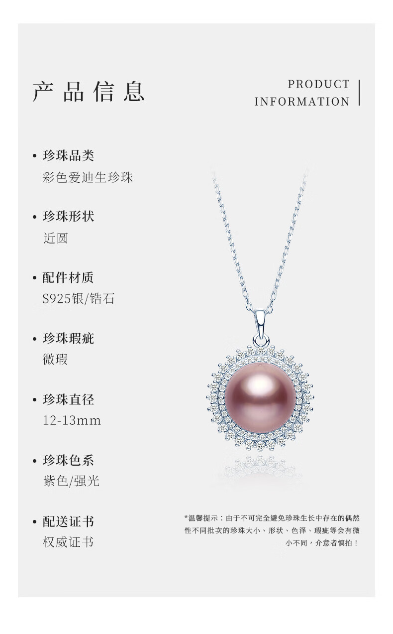 Tahiti Pearl Pendant Women's Necklace Pink Purple Freshwater Pearl Clavicle Chain for Girlfriend Color Edison Pendant 12-13mm