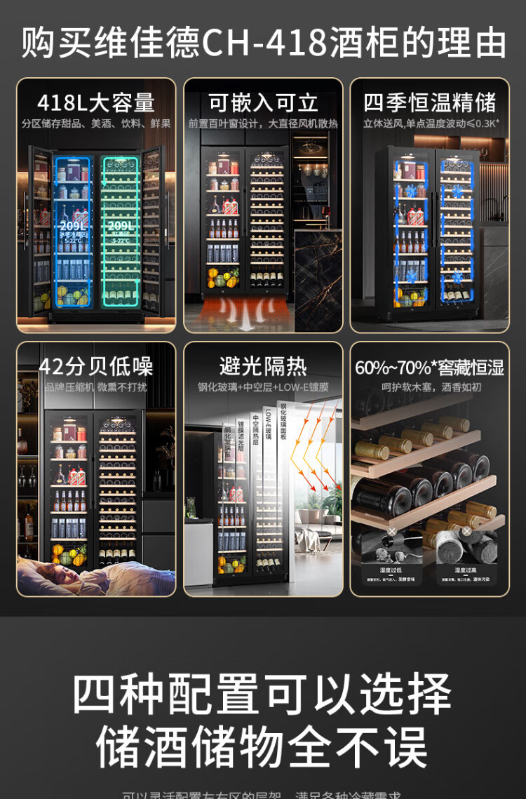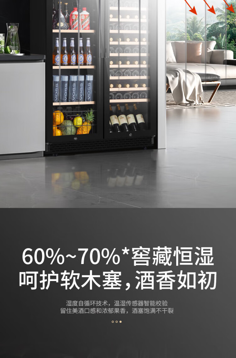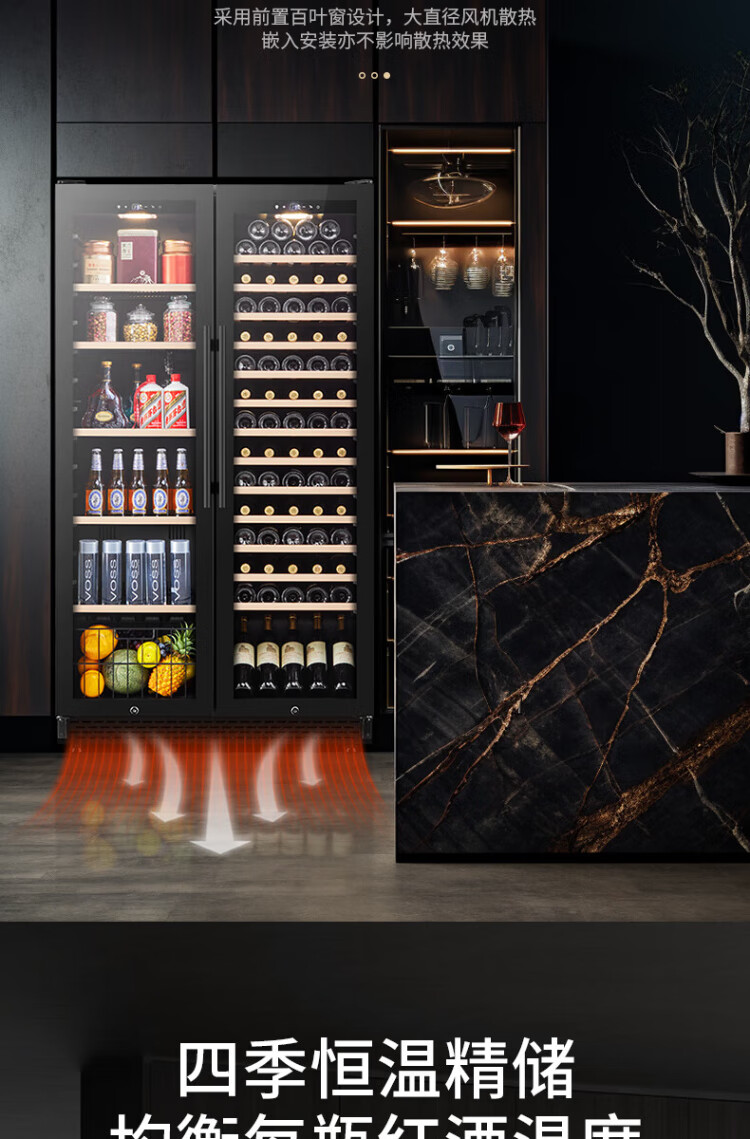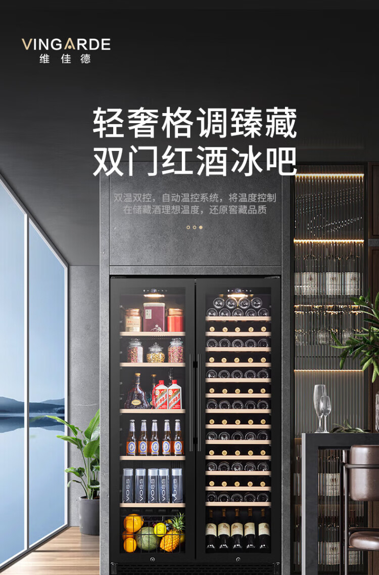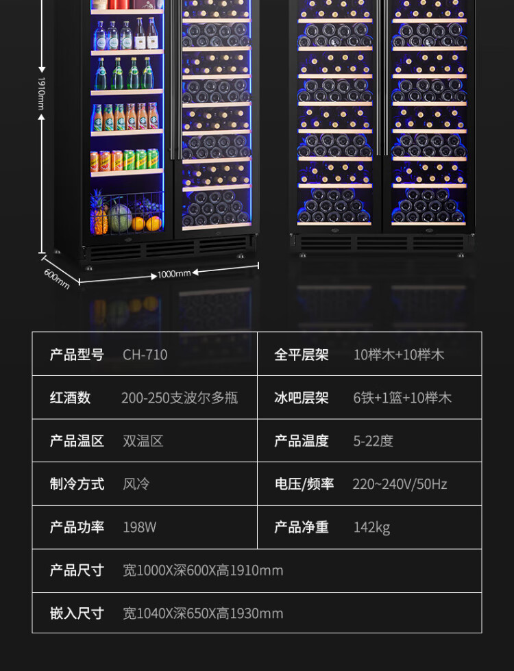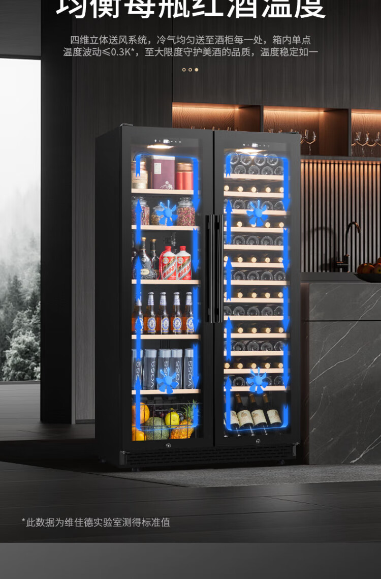VINGARDE red wine cabinet, constant temperature wine cabinet, large capacity, double-door, built-in, air-cooled, frost-free wine cabinet for home living room, tea beverage, white wine, foreign wine, fruit freshness, refrigerated display cabinet, thick CH-710 full-layer cabinet, 1.91 meters high, 710L