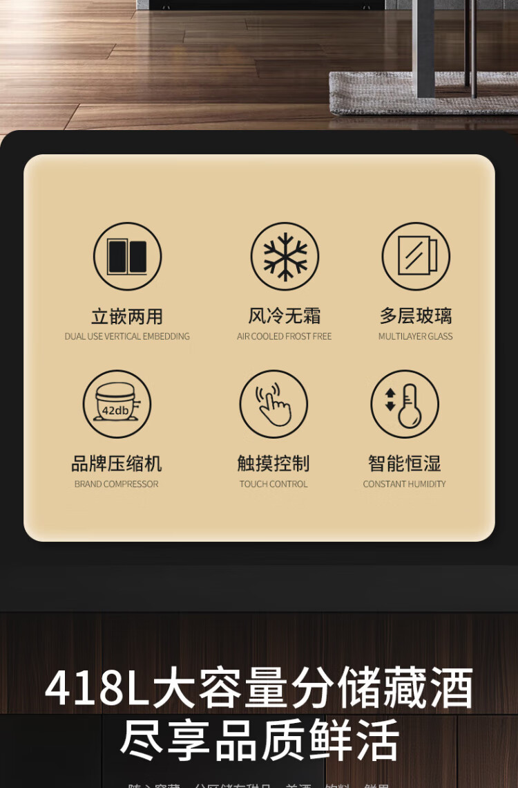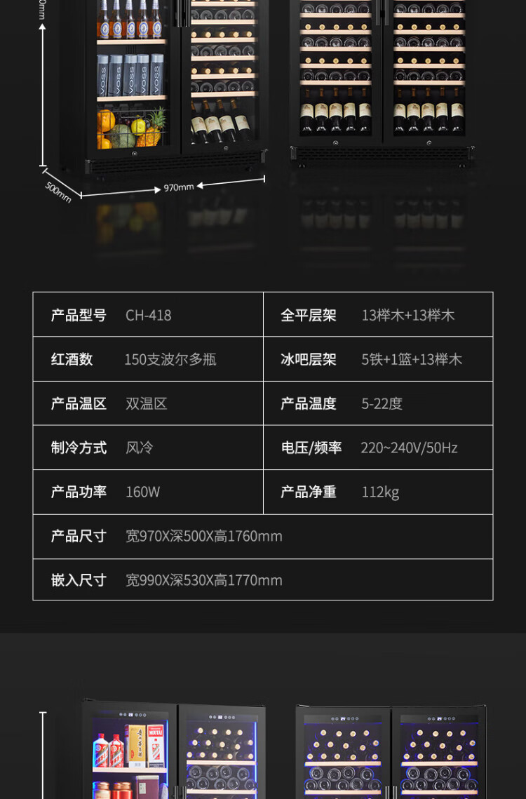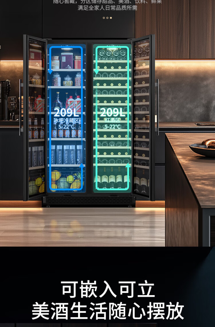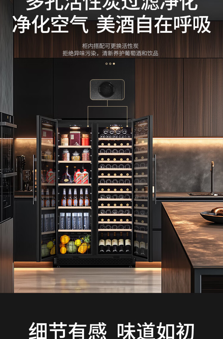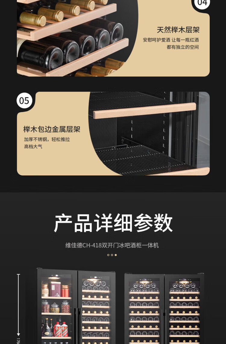 VINGARDE red wine cabinet, constant temperature wine cabinet, large capacity, double-door, built-in, air-cooled, frost-free wine cabinet for home living room, tea beverage, white wine, foreign wine, fruit freshness, refrigerated display cabinet, thick CH-710 full-layer cabinet, 1.91 meters high, 710L