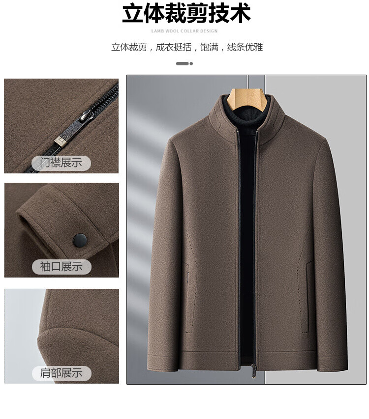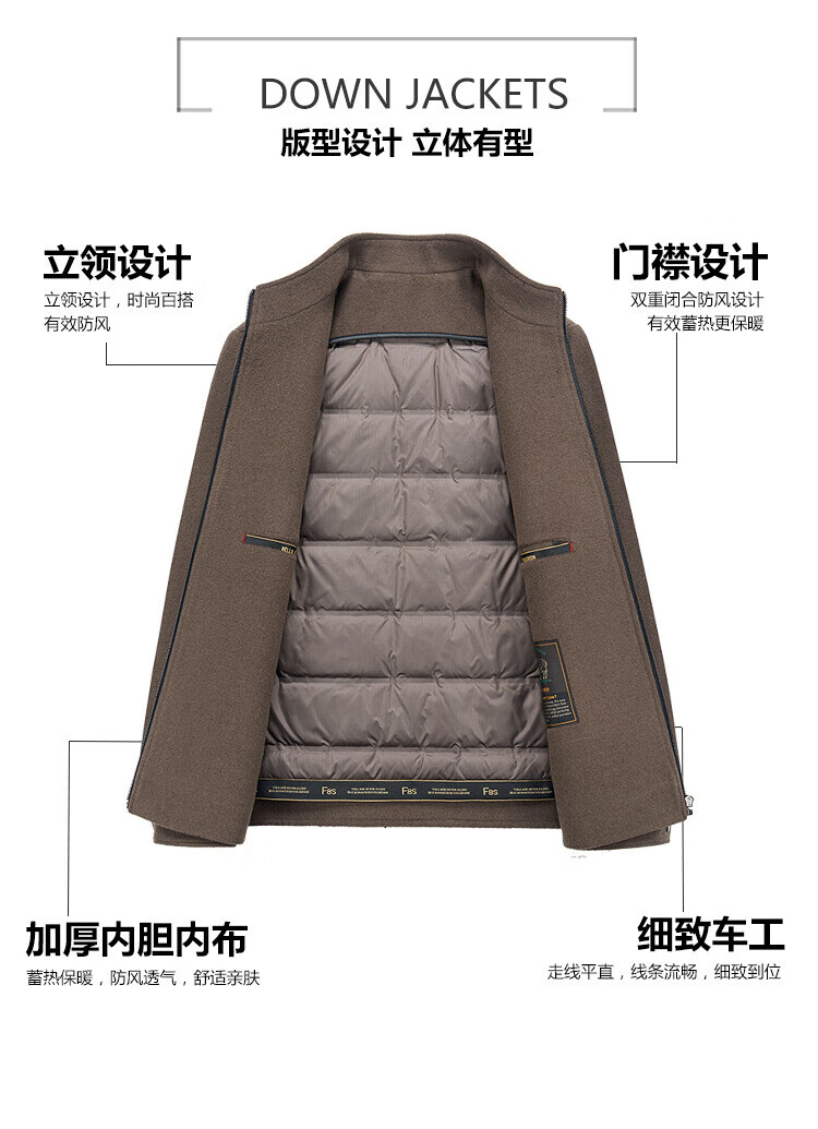 Hengyuanxiang double-sided woolen coat with removable goose down lining men's winter stand-up collar short thickened jacket camel 170