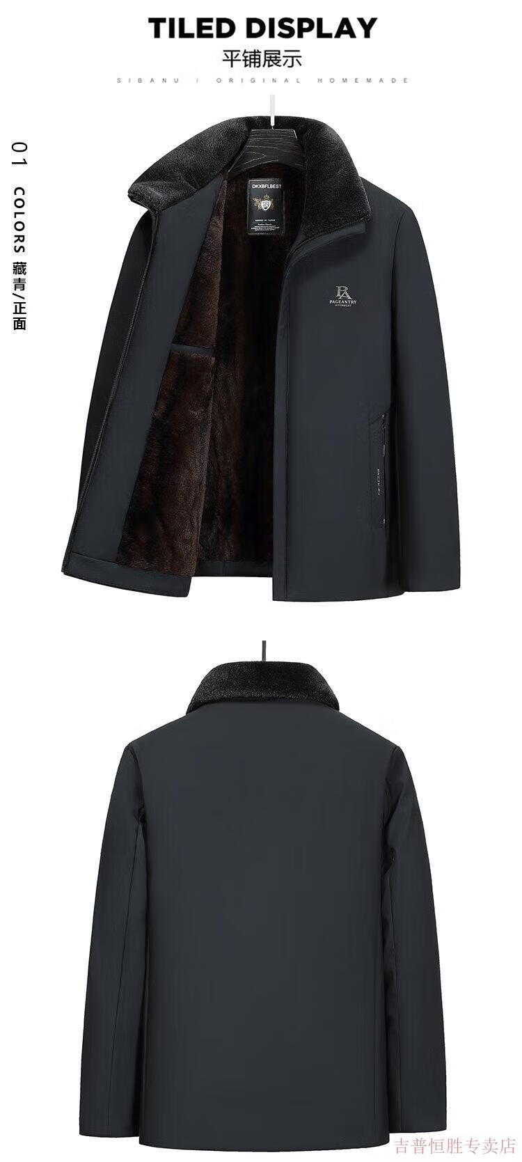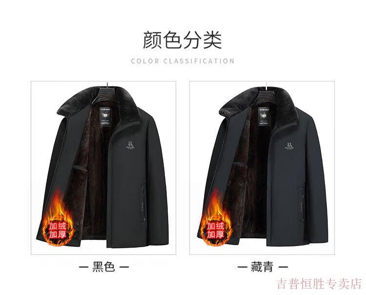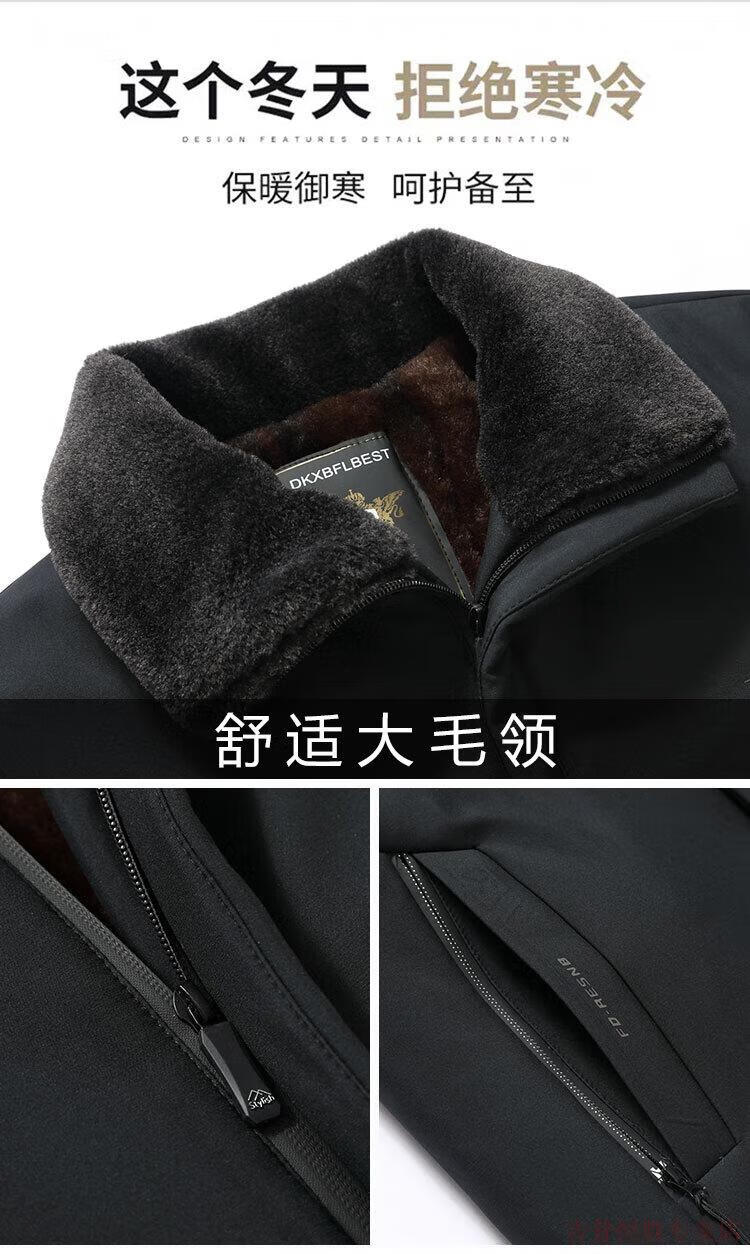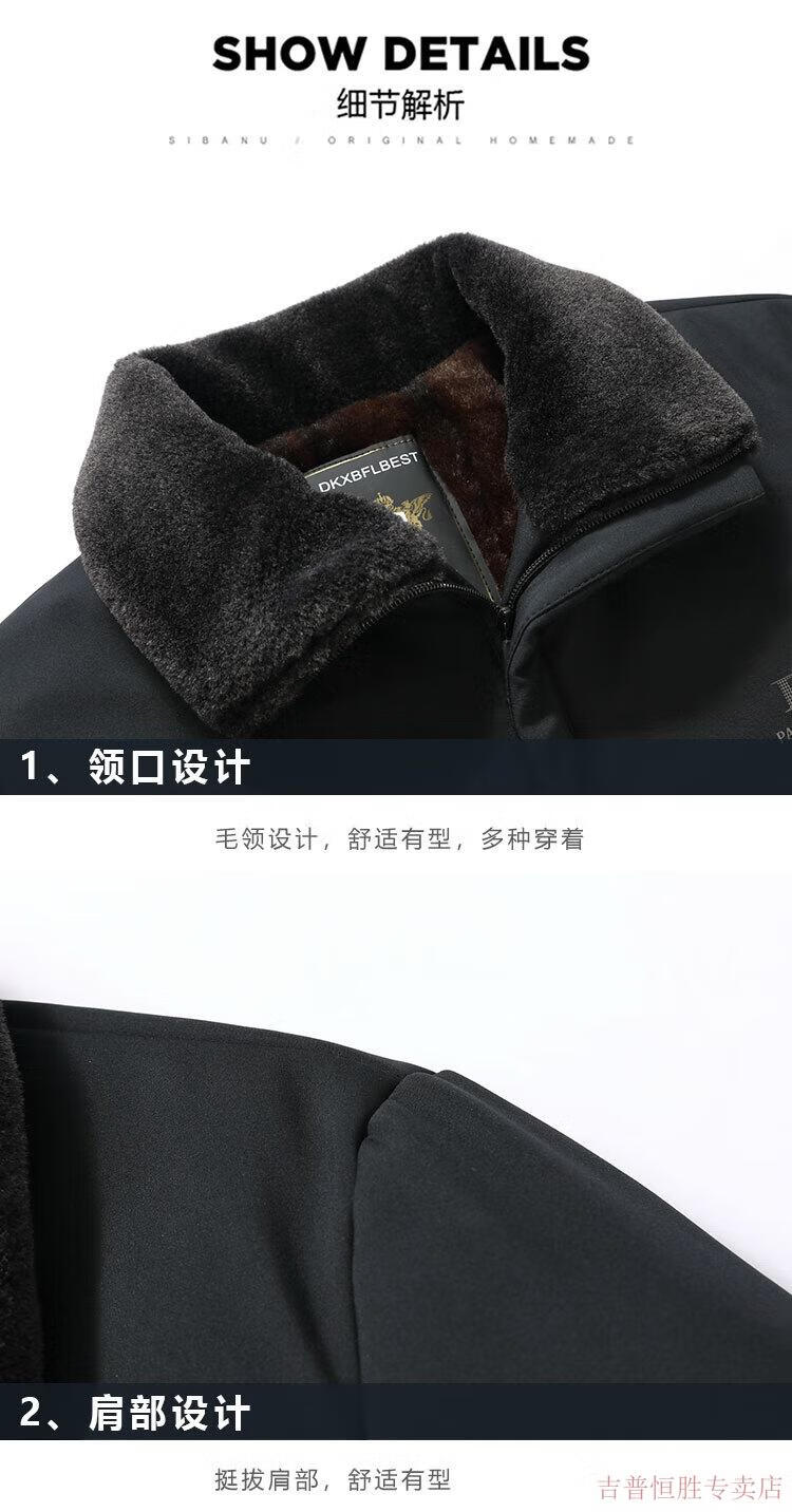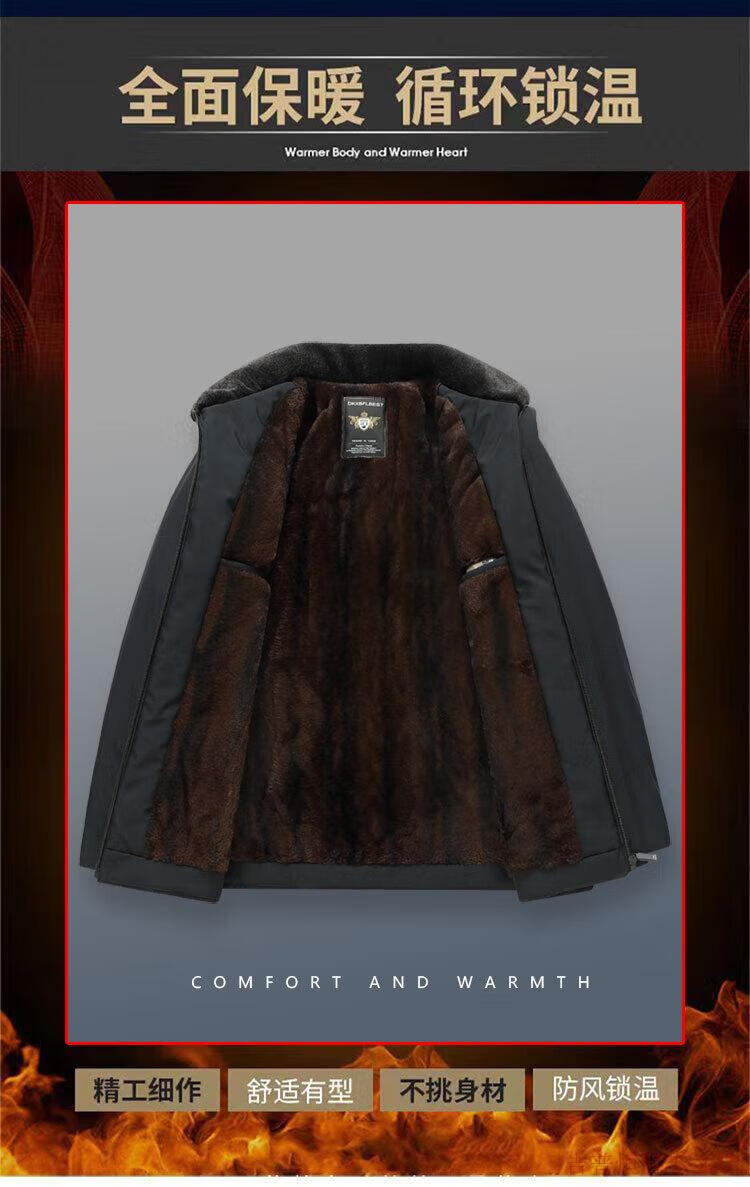 JEEP SPIRIT Dad's Jacket Middle-aged and Elderly Cotton Clothes Men's Autumn and Winter Plus Velvet Thickened Cotton Clothes 2025 New Grandpa Warm Cotton Jacket Navy 185