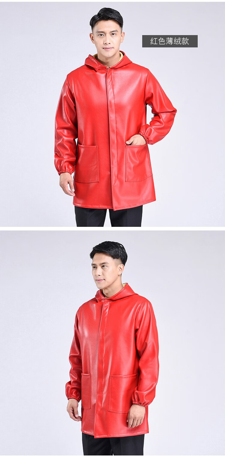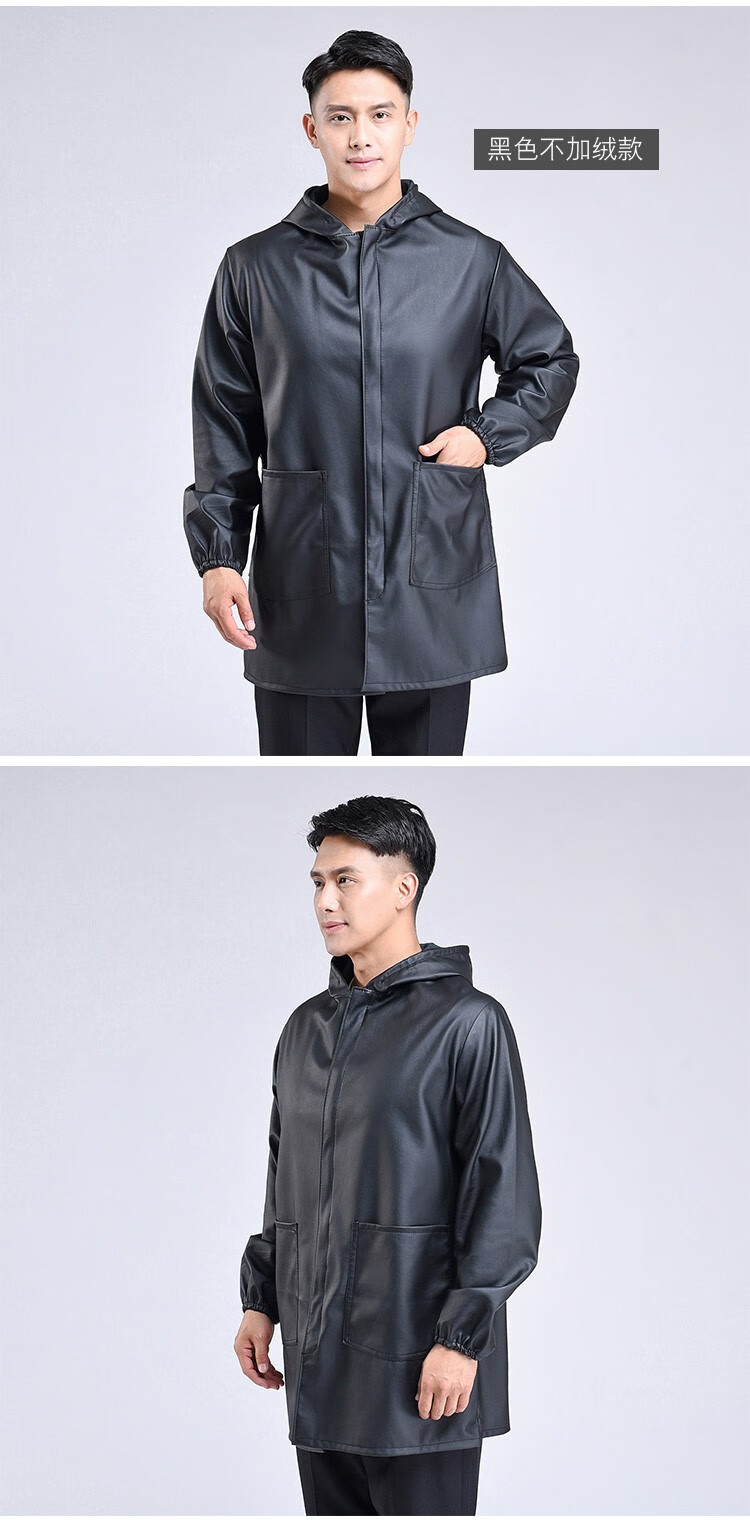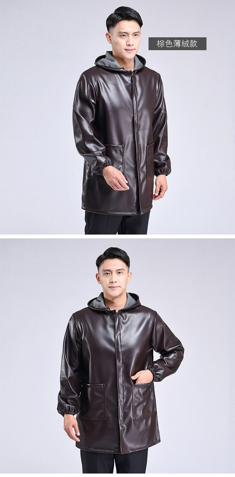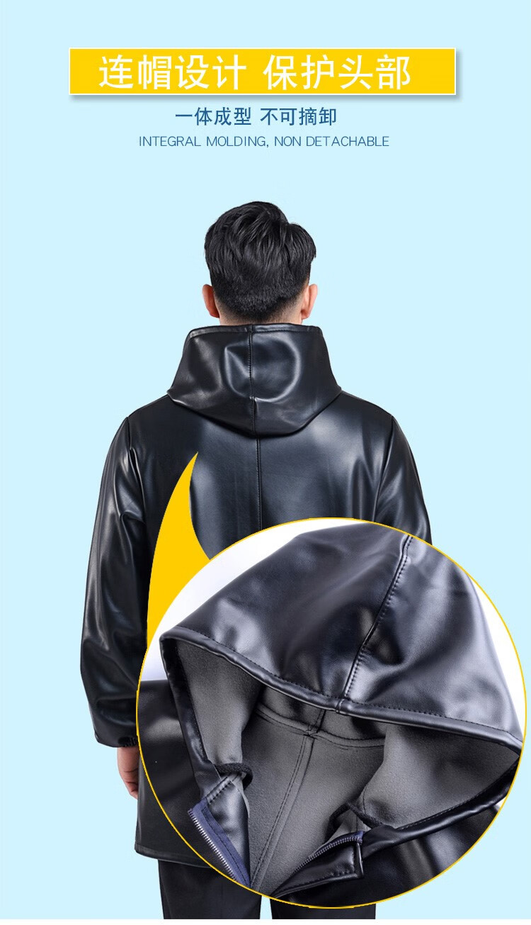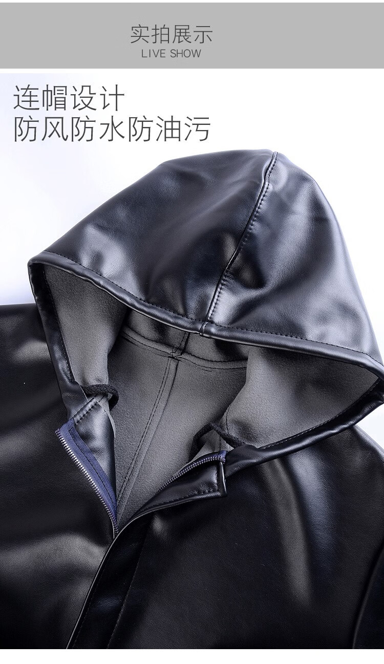 Hooded leather PU coat overalls for slaughtering and breeding pigs, chemical oil-proof, waterproof, windproof and velvet leather coat, black, thin velvet, short 44/190220-270Jin Jin equal to 0.5kg, set with cotton coat