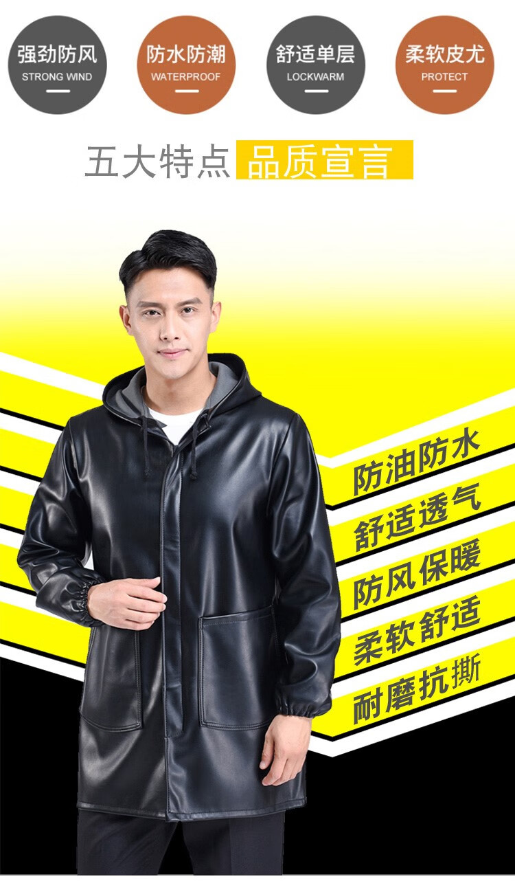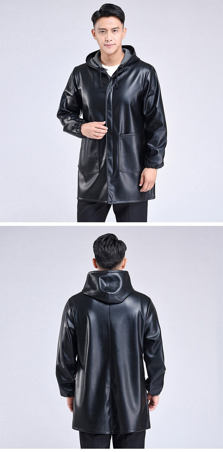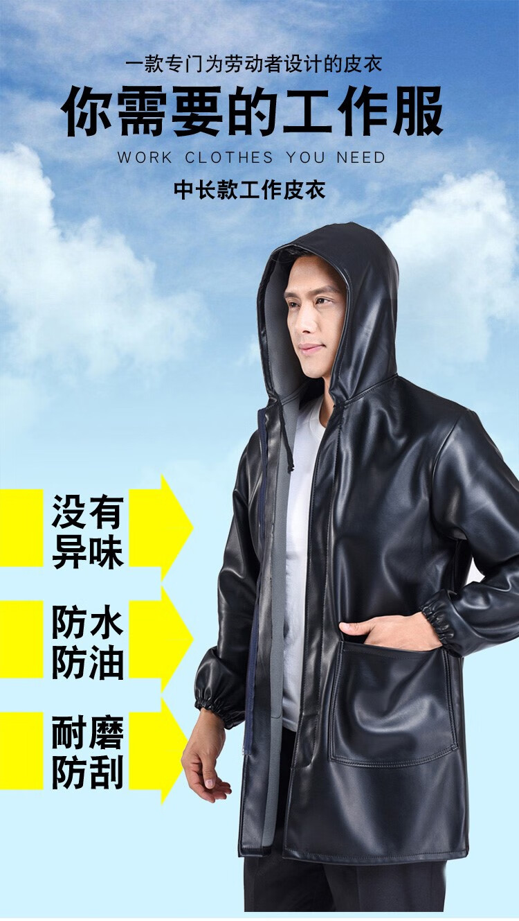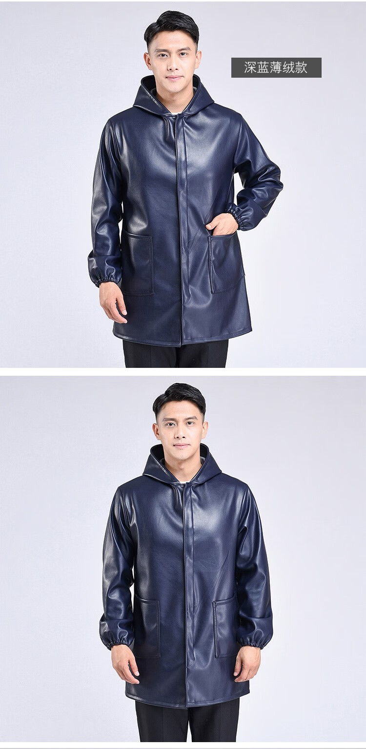 Hooded leather PU coat overalls for slaughtering and breeding pigs, chemical oil-proof, waterproof, windproof and velvet leather coat, black, thin velvet, short 44/190220-270Jin Jin equal to 0.5kg, set with cotton coat
