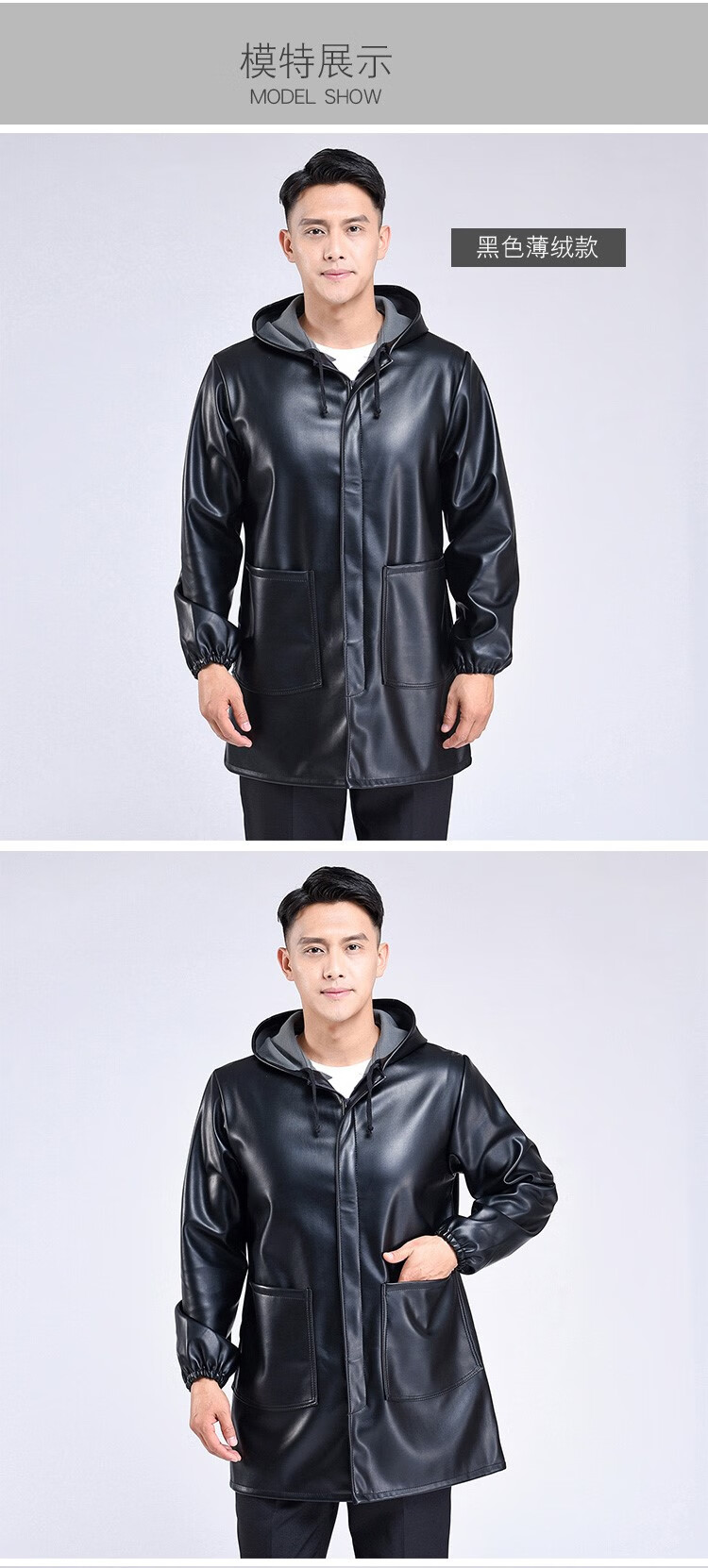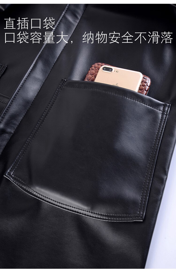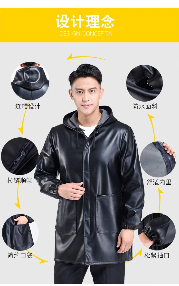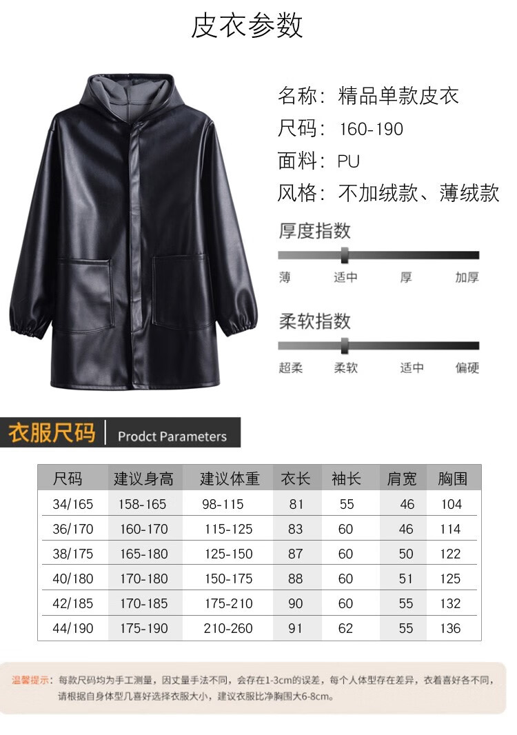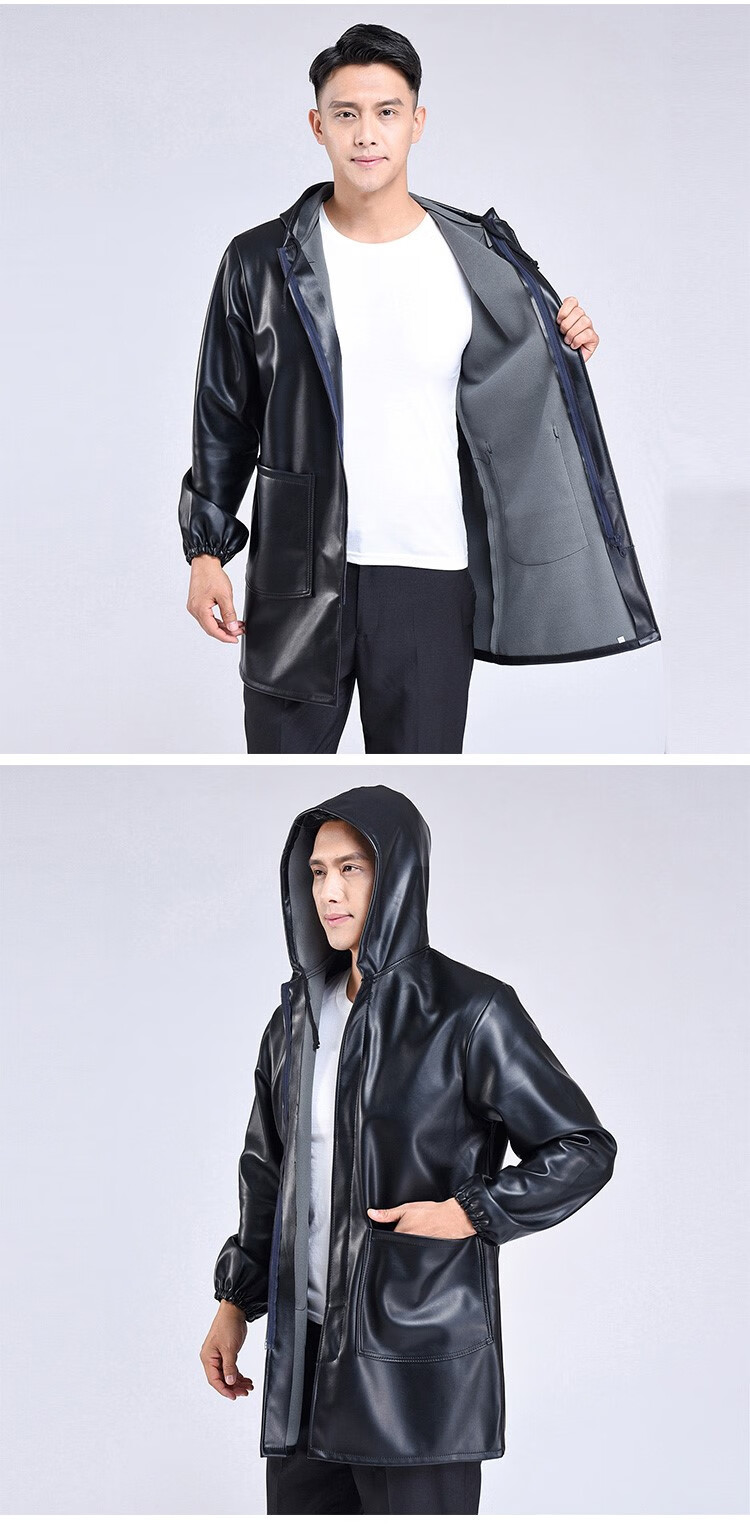 Hooded leather PU coat overalls for slaughtering and breeding pigs, chemical oil-proof, waterproof, windproof and velvet leather coat, black, thin velvet, short 44/190220-270Jin Jin equal to 0.5kg, set with cotton coat