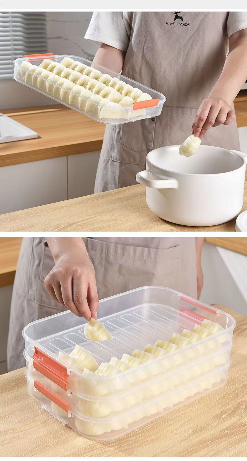 Yunmian frozen dumpling box food grade dumpling box wonton multi-layer dumpling box commercial street stall wonton kitchen quick-frozen box enlarged and thickened Nordic white + handle model discount purchase 3 layers 1 cover