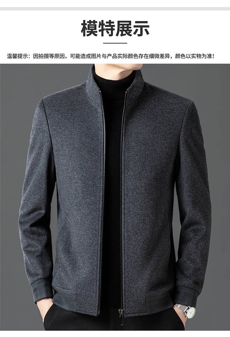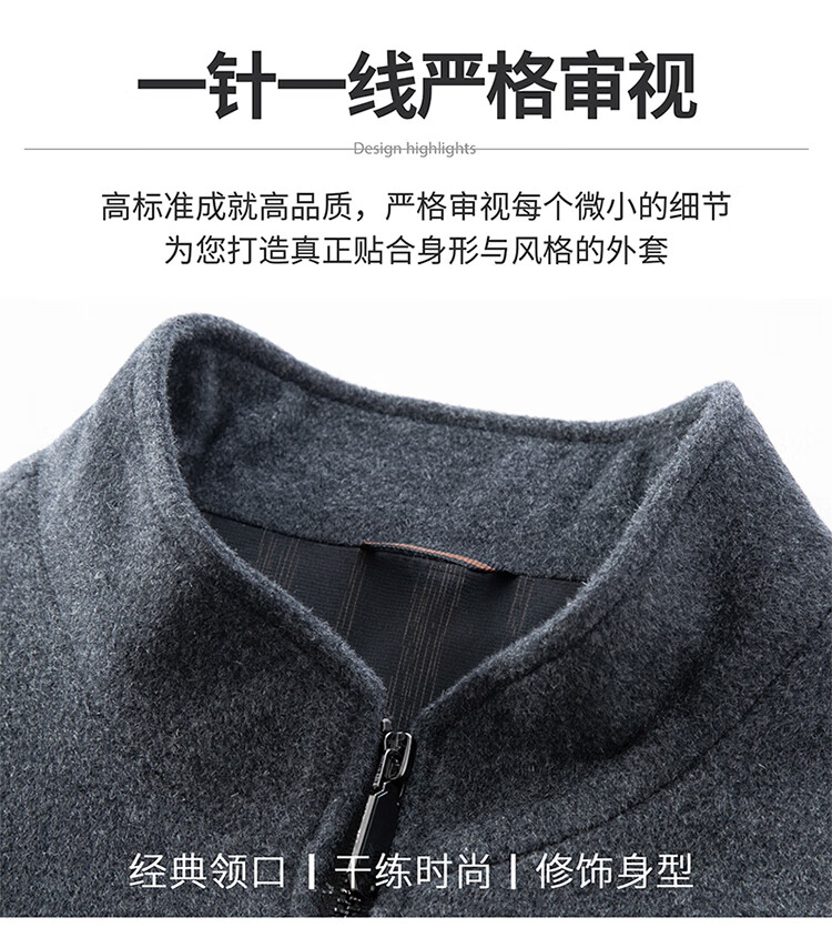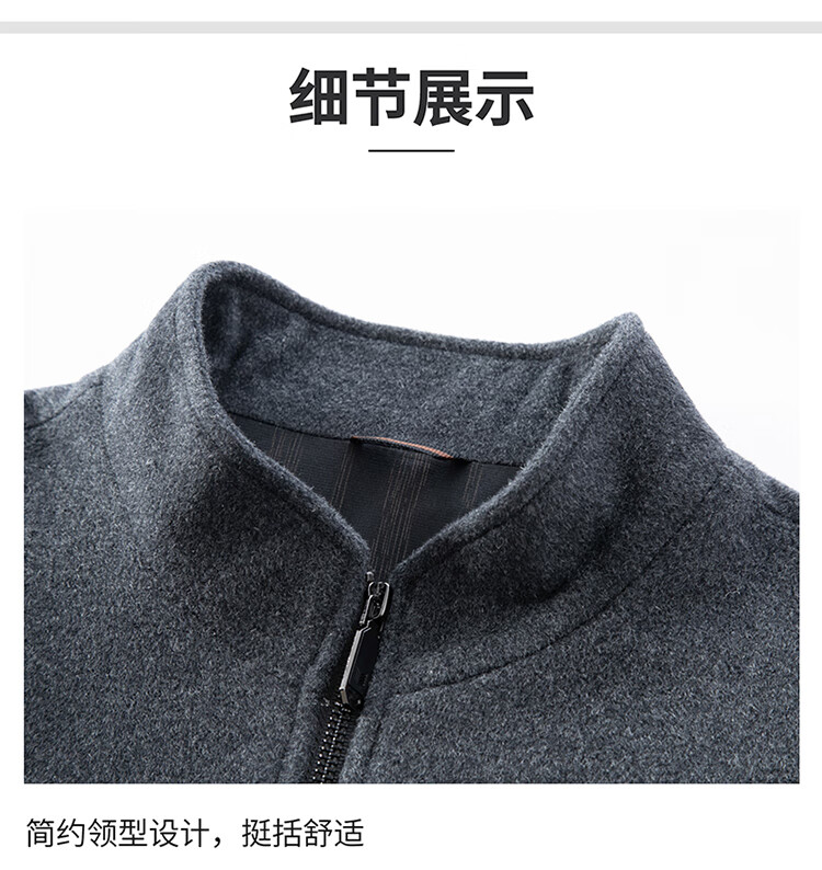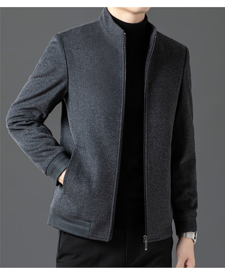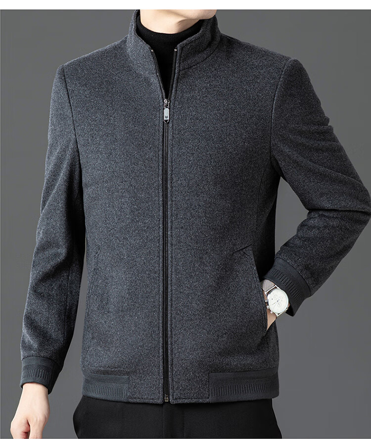 Pierre Cardin high-end woolen jacket men's 2025 autumn and winter new business casual middle-aged stand-collar executive jacket gray high-end quality 3XL 190 165-180Jin Jin equals 0.5 kg